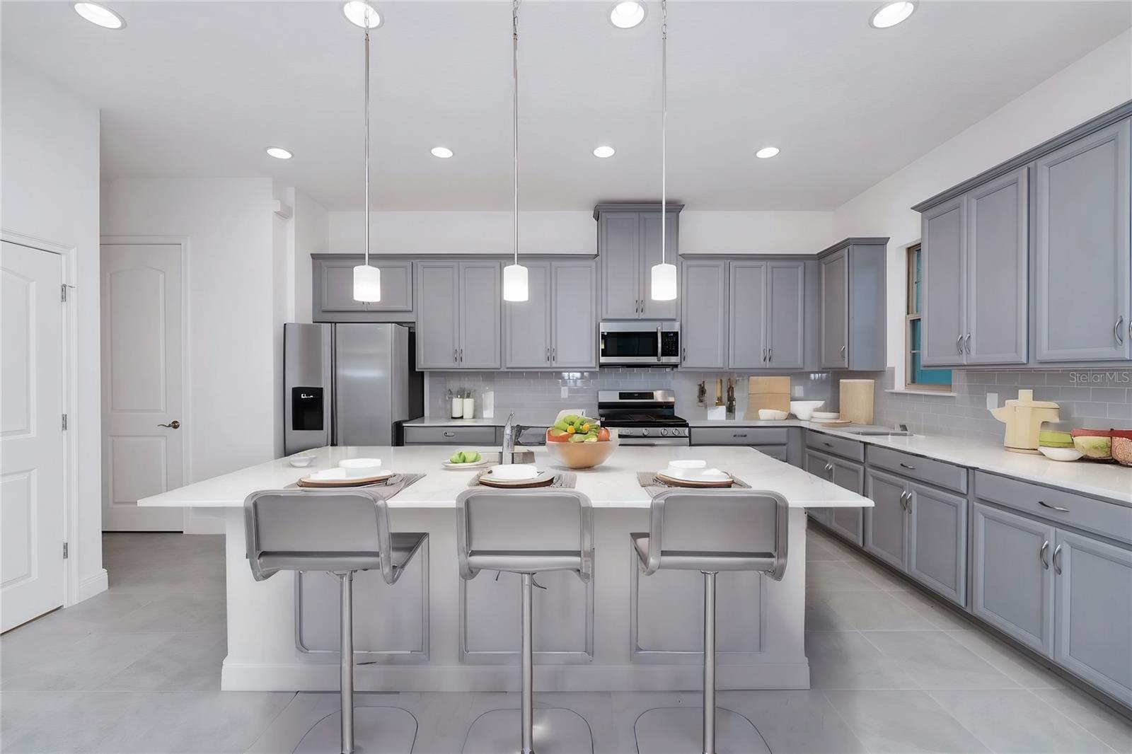Uma ou mais fotos foram virtualmente encenadas. Uma ou mais fotos foram virtualmente encenadas. Bem-vindo a esta deslumbrante casa de construção nova, nunca antes ocupada e pronta para morar. O exterior foi recentemente paisagístico profissionalmente. A atratividade do meio-fio captura a essência da Flórida, apresentando uma entrada de automóveis totalmente pavimentada e uma varanda. Esta casa de 5 quartos e 3 banheiros, concluída em 2023, foi construída pela Jones Home Builders personalizada. Ao passar pela moderna porta da frente, você notará o primeiro quarto e um banheiro completo de tamanho generoso. O layout é perfeito para família ou convidados. O espaçoso hall de entrada guia você perfeitamente até a cozinha, sala de estar e sala de jantar combinadas. Este espaço possui tectos altos e muita iluminação natural, bem como uma vista completa da cozinha personalizada. Todas as áreas de entretenimento do térreo têm um lindo piso de cerâmica atualizado. A cozinha foi projetada sob medida com eletrodomésticos de última geração, lindas bancadas sólidas e luminárias elegantes. É o sonho de qualquer chef, com uma grande ilha perfeita para entretenimento. Depois de apreciar todo o design personalizado e funcionalidade da área do andar de baixo, você pode subir para os quartos adicionais. No andar de cima, você encontrará outros quatro quartos, incluindo o quarto principal e um espaçoso banheiro principal. Este espaço serve como o seu refúgio perfeito em estilo spa. O quarto principal tem dois closets e muitas áreas de armazenamento adicionais. Os outros quartos e banheiro estão convenientemente localizados perto da espaçosa lavanderia, que vem com uma nova lavadora e secadora, além de espaço extra no armário. Depois de explorar a casa e tudo o que ela tem a oferecer, você pode sair pela grande porta de vidro deslizante para o pátio pavimentado. Este espaço é uma tela em branco, pronta para ser transformada no seu próprio oásis ao ar livre. Esta casa oferece-lhe a oportunidade de possuir uma nova casa sem esperar pela construção. Ele está localizado na Reserva em Twin Lakes, uma comunidade de gás com baixas taxas HOA, bela área de piscina comunitária e perto do Lago Nona, dos parques temáticos e do aeroporto. Agende sua exibição hoje mesmo! Clique no link para descobrir se você é elegível para ajuda com adiantamento! https://www.workforce-resource.com/dpr/pmt/MFRMLS/AMANDA_BINNS