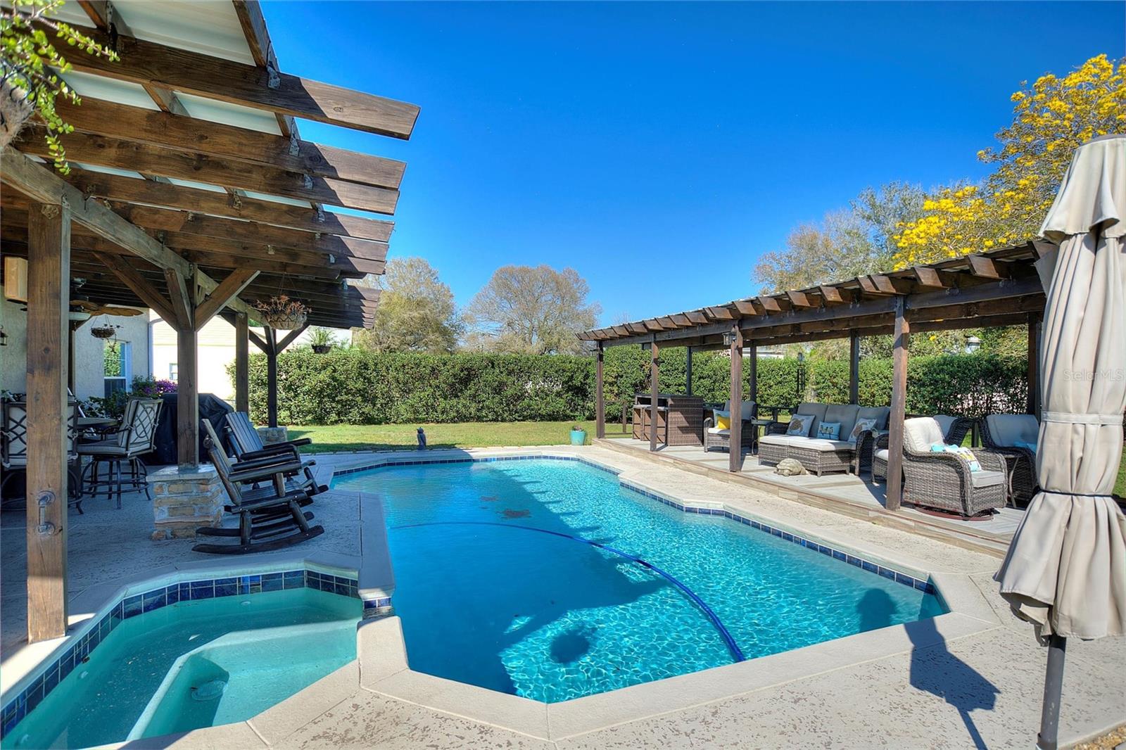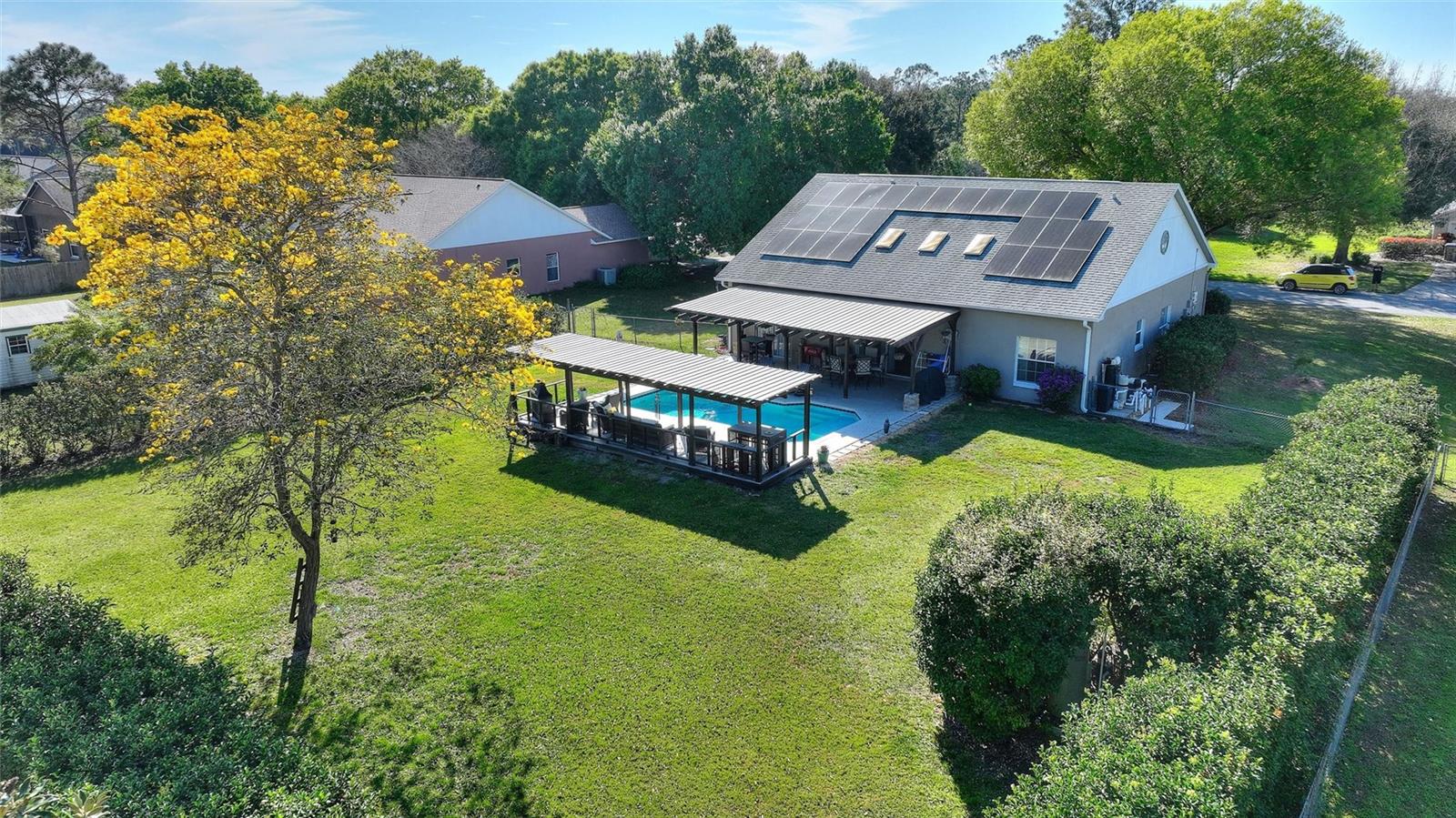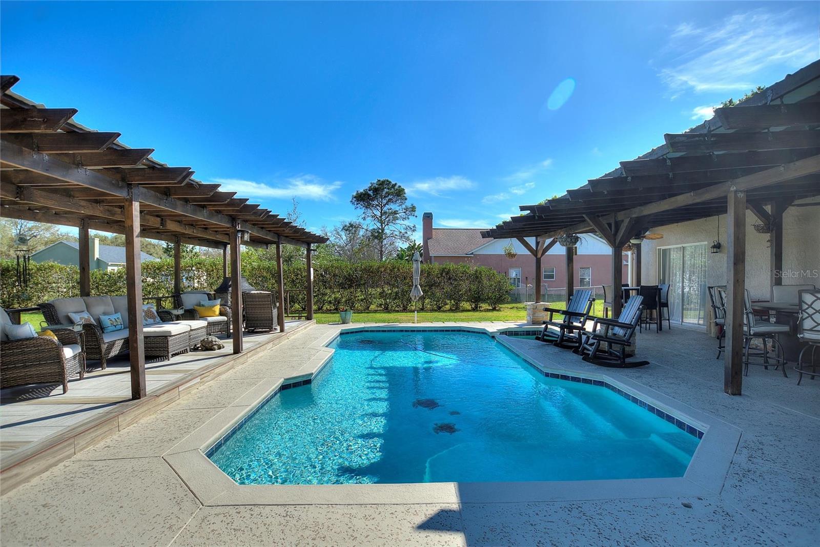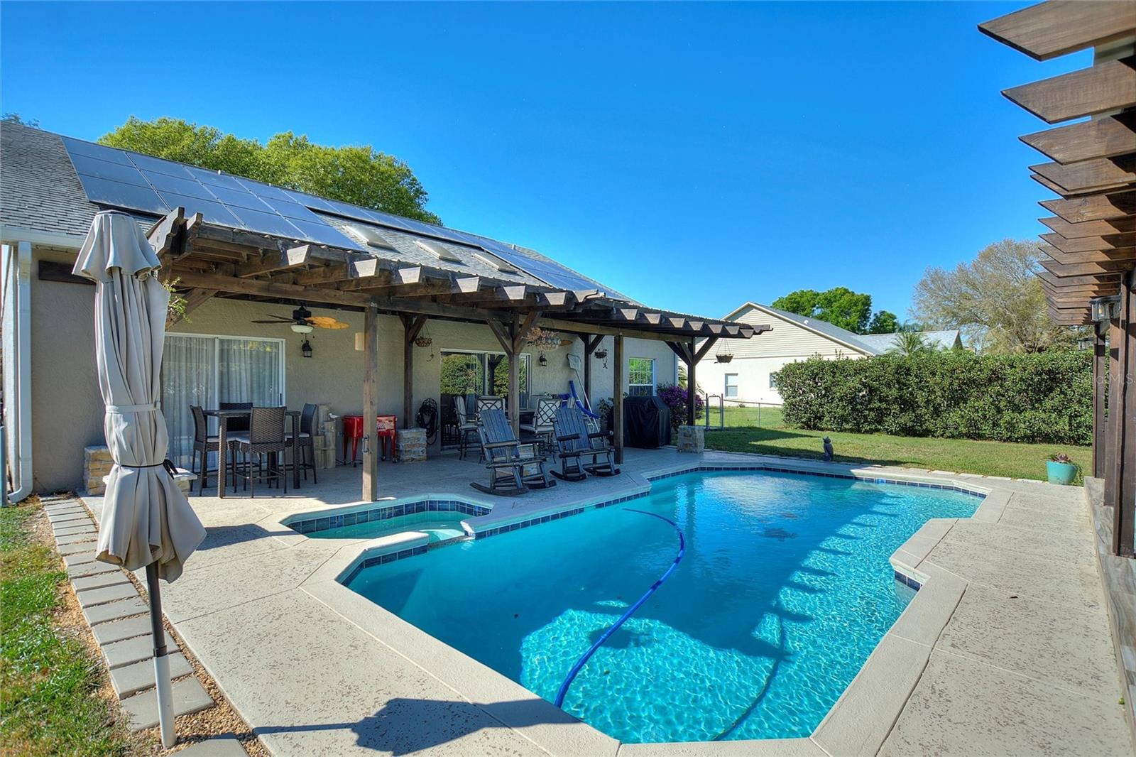 Aninhado nos arredores de St. Cloud, uma impressionante casa de três quartos e dois banheiros acena com seus 1800 pés quadrados de espaço elegante em um lote de meio hectare, livre das restrições de um HOA. No interior, a luz natural inunda a planta baixa e uma cozinha gourmet com bancadas de açougueiro. Do lado de fora, um pátio espaçoso leva a um oásis sereno com uma piscina, banheira de hidromassagem e paisagismo exuberante, oferecendo o cenário perfeito para relaxar e divertir -se sob o vasto céu da Flórida. Além de seu fascínio, a casa também está equipada com painéis solares, garantindo a sustentabilidade e a eficiência energética para o proprietário de imóveis conscientes.