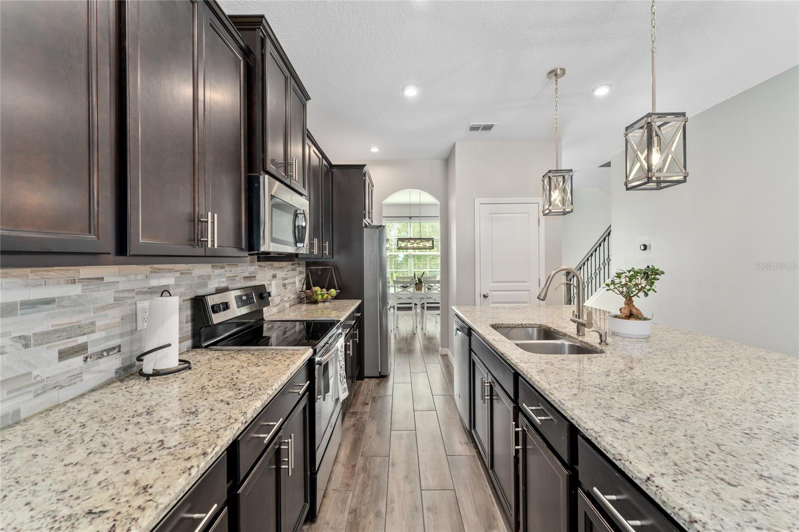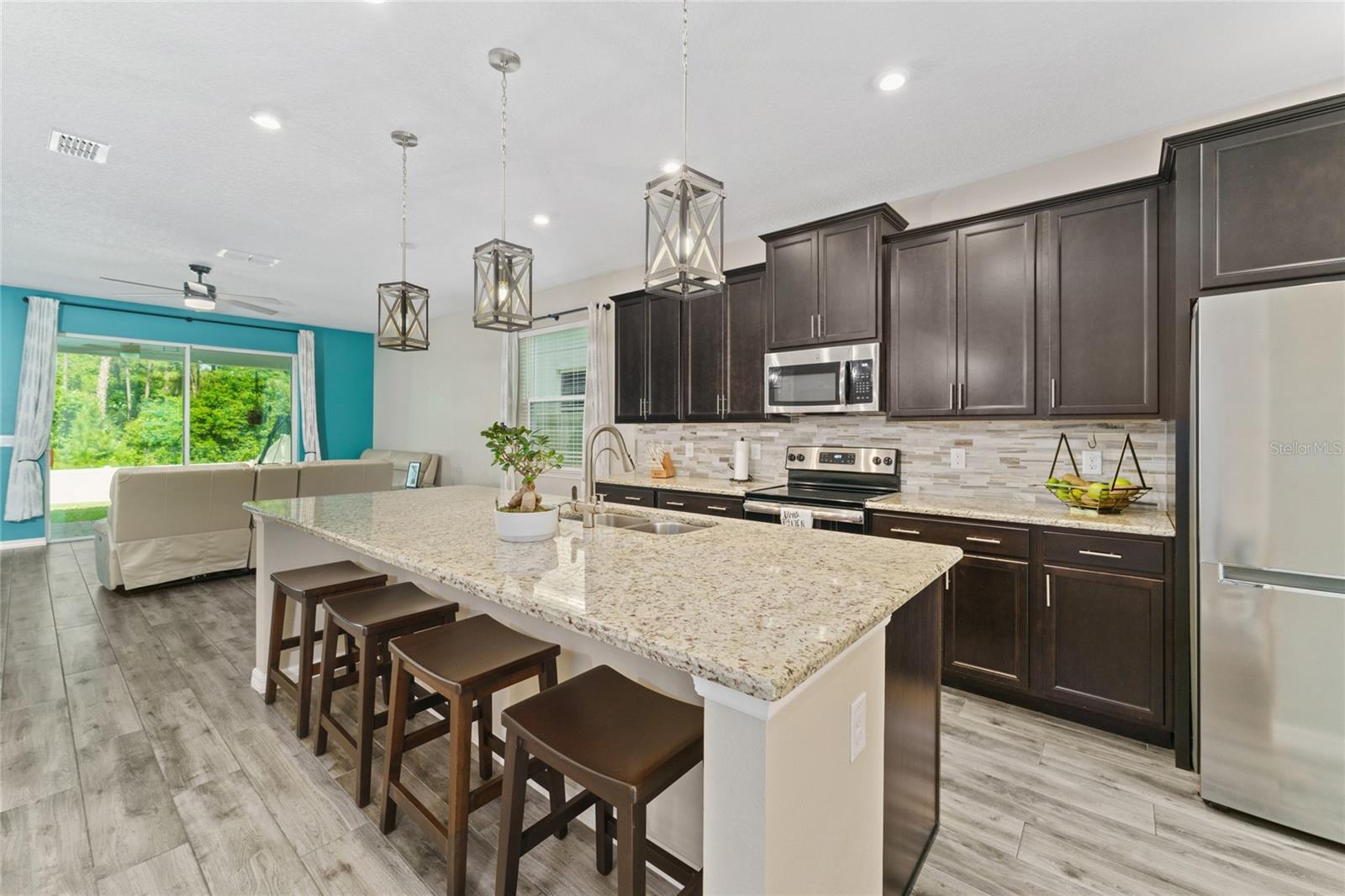 Aninhado na tranquilidade St. Cloud, no centro da Flórida, esta impressionante residência de 4 quartos e 2,5 banheiros é ideal para quem procura um ambiente sereno e pacífico. Fechado por uma cerca de vinil com meia altura na parte traseira, permitindo uma vista para a bela área de conservação. Ao entrar, você é recebido por uma encantadora sala de jantar formal e uma escada que leva ao nível superior. Mudando -se para a área de estar principal, você encontrará uma planta baixa aberta com a cozinha como ponto focal. A cozinha possui uma grande ilha de granito, utensílios de aço inoxidável, um belo backsplash e armários de madeira de 42 polegadas. Com amplo espaço para acomodar uma área de jantar formal, junto com a barra de café da manhã na ilha, esta cozinha é perfeita para sua próxima reunião de família. A área da sala apresenta acesso deslizante à porta de vidro ao pátio coberto, permitindo muita luz para uma atmosfera brilhante e espaçosa. Dentro da suíte master, você admirará a parede de sotaque de madeira pintada e o espaçoso banheiro mestre com um chuveiro com um chuveiro de chuva e pia de vaidade dupla com muito espaço no gabinete. No andar de cima, você encontrará um espaço adicional e os quartos restantes. Cada quarto oferece uma orientação única para o sol da manhã ou da tarde e um amplo espaço no armário. O banheiro final da casa está localizado entre os dois dois quartos e oferece muito espaço para esses trimestres compartilharem o armazenamento. No final do salão, você descobrirá um pequeno recanto perfeito para espaço de mesa ou leitura, com vista para a entrada e apresentando uma luz pingente impressionante. Esta casa notável tem muitos outros recursos a oferecer que você deve ver por si mesmo. Agende sua exibição hoje!