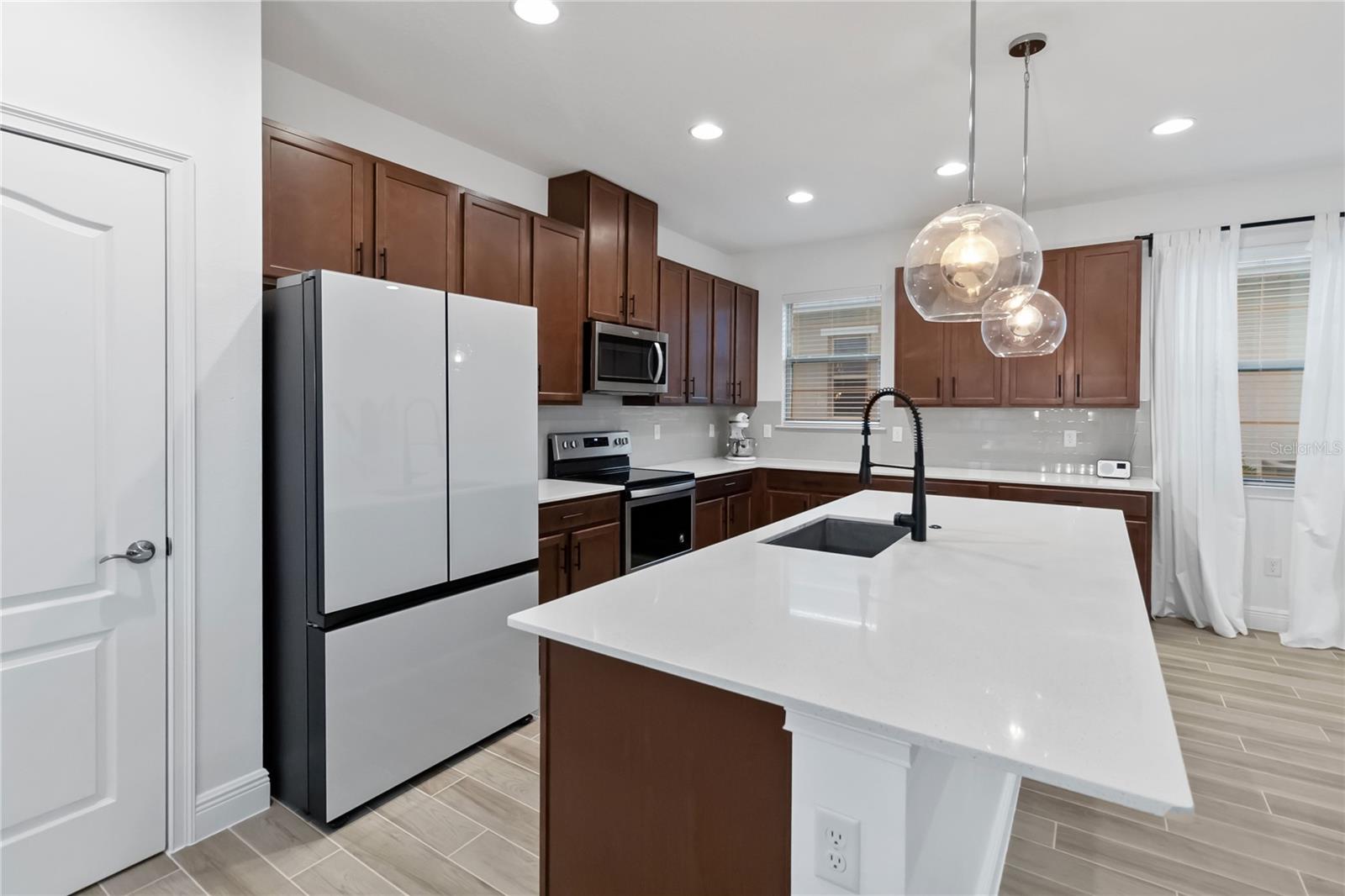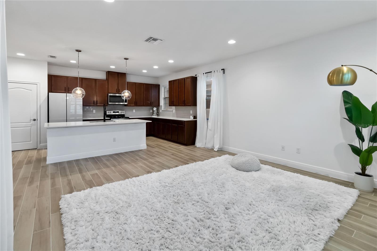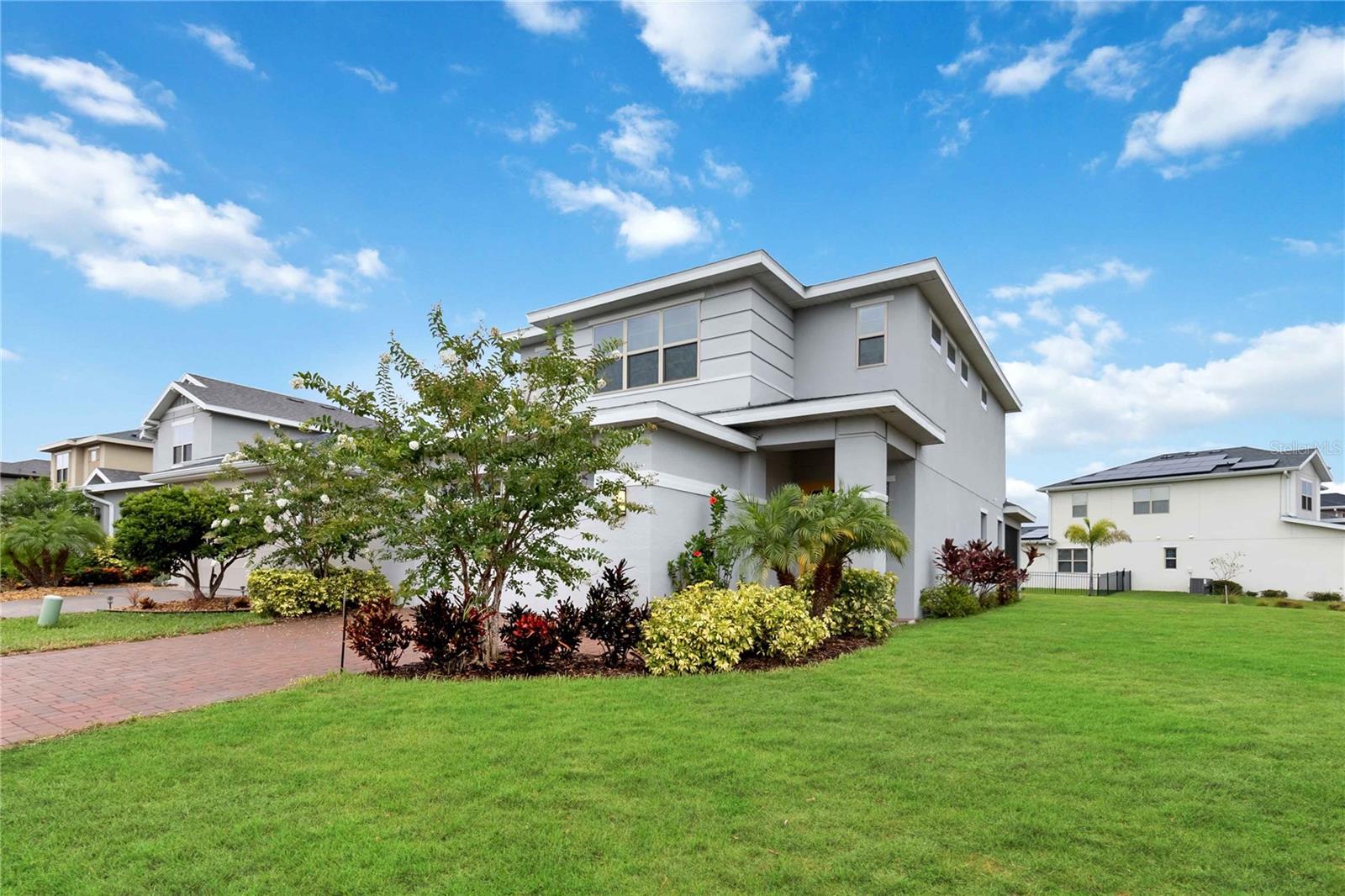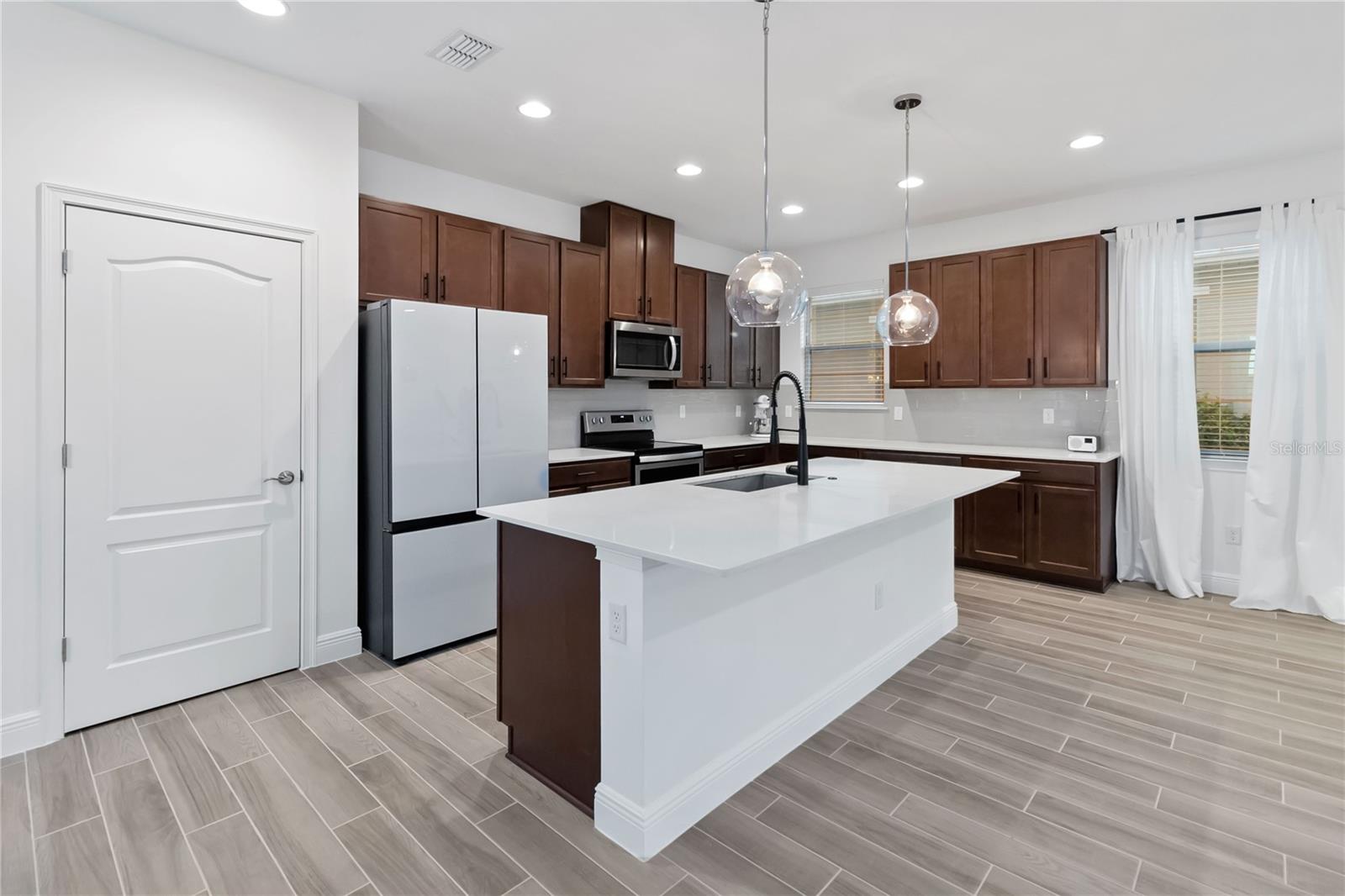 Bem -vindo à sua casa de sonho na prestigiada comunidade de Harmony West! Esta requintada residência de dois andares possui 4 quartos espaçosos, 3 banheiros luxuosos, tetos de 10 pés nos dois andares e uma série de acabamentos interiores modernos que exalam elegância e sofisticação. O primeiro andar possui pisos de ladrilhos recém -instalados, proporcionando uma sensação elegante e contemporânea e um quarto de hóspedes e banheiro completo proporcionam conveniência extra. Um grande armário de escadas oferece amplo espaço para todas as suas necessidades de armazenamento. Desfrute de cozinhar em uma cozinha gourmet com armários de 42 'e alças pretas elegantes, backsplash de telha, uma geladeira atualizada da Samsung sob medida, bancadas de quartzo que são complementadas por uma torneira preta e iluminando o ambiente moderno. Avise as escadas e experimente conforto e conveniência com um sistema HVAC leve UV e uma grande lavanderia completa com uma pia e armários. O quarto primário possui um grande closet e uma porta de celeiro que leva ao banheiro principal que mostra o piso de ladrilhos novos, um chuveiro de pia duplo semelhante a um spa e uma vaidade de pia dupla com luminárias bonitas e atualizadas. Dois quartos adicionais e um banheiro completo com pisos de ladrilhos atualizados também estão localizados no segundo andar. Situado em um grande estacionamento de canto, sem vizinhos de um lado, esta casa oferece privacidade e tranquilidade. A varanda dos fundos fechada é perfeita para relaxar, e o exterior meticulosamente paisagístico acrescenta um apelo incrível. O enorme quintal é perfeito para hospedar e divertir! Uma banheira de hidromassagem de água salgada está incluída para o seu relaxamento e prazer. Do outro lado da rua, você encontrará um parque de playground e cães, ideal para amigos divertidos e peludos. A Harmony West oferece uma variedade de comodidades, como uma piscina de estilo resort, fitness center e clubhouse com taxas baixas de HOA, garantindo uma vida comunitária confortável e vibrante. Além disso, fica a uma curta distância de carro do centro de St. Cloud, shopping centers, restaurantes, hospitais, bancos e Melbourne Beach. Não perca sua oportunidade de possuir um pedaço do paraíso!