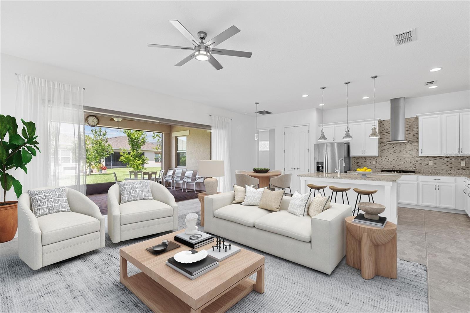 Uma ou mais fotos foram praticamente encenadas. Melhoria de preços! Por que construir quando você pode se mover direto! Este impressionante modelo Captiva está localizado na desejável comunidade de mais de 55 anos de lagos gêmeos, com pavimentação/passarela e paisagismo exuberante para recebê -lo em casa. Ao entrar, seus olhos são atraídos para os tetos altos, 8 'portas, entrada ampla e belo piso de azulejos que carregam pelas principais áreas de estar. Logo após o hall de entrada estão seus quartos secundários, banheiro completo, e você apreciará o fluxo sem costura para um conceito de piso aberto com tratamentos de janelas personalizadas. Aproveite sua experiência de culinária com utensílios de aço inoxidável, fogão a gás natural, forno embutido e microondas, lindos backsplash de vidro e capuz de ventilação personalizada. As bancadas são granitas com muitos armários, e a ilha confortavelmente os assentos 3. Esse design popular para conectar a cozinha, jantar e espaçosa sala de estar é perfeita para o estilo de vida e o entretenimento de hoje. Além da cozinha está o seu quarto principal com pisos laminados e teto de bandeja. Um banheiro privativo oferece vaidade de estilo adulto com bancada em granito, luxuoso chuveiro grande com várias cabeças de chuveiro, armário de água e armário de armazenamento. O espaçoso closet flui para sua lavanderia, que é facilmente acessível aos quartos secundários. Se você gosta do ar livre, passe por portas deslizantes de 3 painéis para relaxar na Lanai de grandes dimensões que é pré-enlutada para uma cozinha ao ar livre. O quintal é parcialmente cercado por privacidade. Twin Lakes é fechado 24 horas e não apenas oferece um estilo de vida à beira-mar para pesca, caiaque e barco, mas também apresenta comodidades no estilo do resort. A comunidade oferece várias piscinas, fitness center de ponta, tênis/pickleball, quadras de bocha e basquete, parques de cães e trilhas para caminhada. Um recém -construído 20.000 SF Clubhouse possui uma cozinha, uma sala de reuniões espaçosa com bilhar e mesas de cartas. A melhor parte é que existem muitas atividades e eventos sociais planejados ao longo do mês! Convenientemente localizado perto de variedade de compras, restaurantes, Aeroporto Internacional de Orlando, Cidade Médica de Lake Nona e lagos/praias.