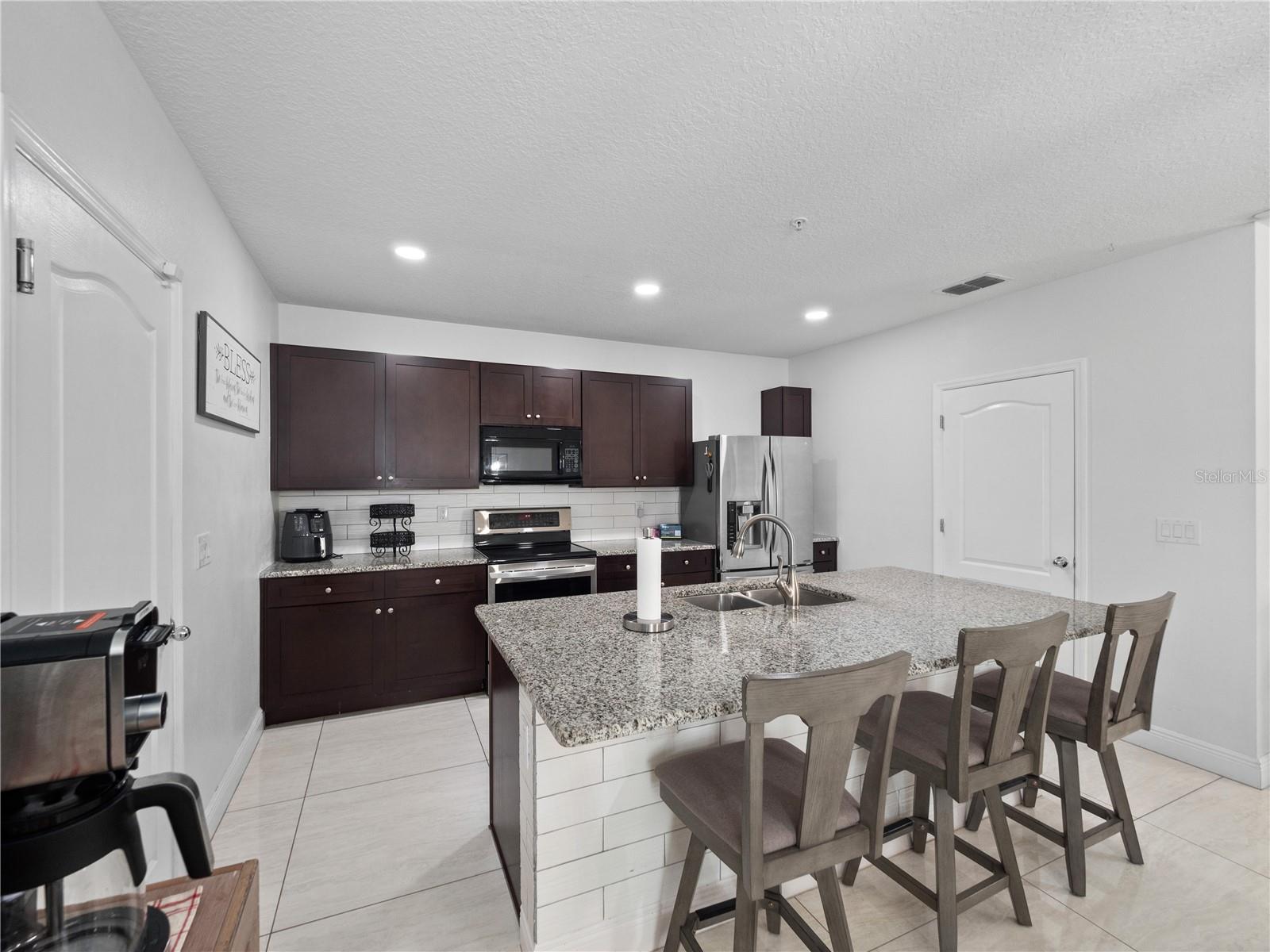 Melhor que novo, não há necessidade de esperar por novas construções. Incrível 4 quartos 3 banheiro completo com quase 2000 pés quadrados. Casa de canto com zero manutenção externa necessária. Planta de piso brilhante e aberto com telhas de cerâmica em todo o primeiro andar com um quarto e banheiro completo, perfeito para uma missão ou escritório em casa. Linda cozinha com grande despensa e ilha de granito com vista para a sala de jantar e estar, perfeita para entretenimento e reuniões de família. Saia pelas portas deslizantes e aproveite seu café da manhã no pátio coberto com pavimentadoras de tijolos e cerca de vinil para maior privacidade. Home tem 1 garagem para carros com uma longa viagem que pode caber de 2 a 4 veículos. No segundo andar, você tem seu quarto principal com closet e banheiro espaçoso, juntamente com 2 quartos e banheiro completo. Ótima localização com parque de cães do outro lado da rua e a uma curta distância da piscina comunitária, parque e clube. Fácil acesso a compras, restaurantes, 417 e Aeroporto Internacional de Orlando e todas as principais estradas.