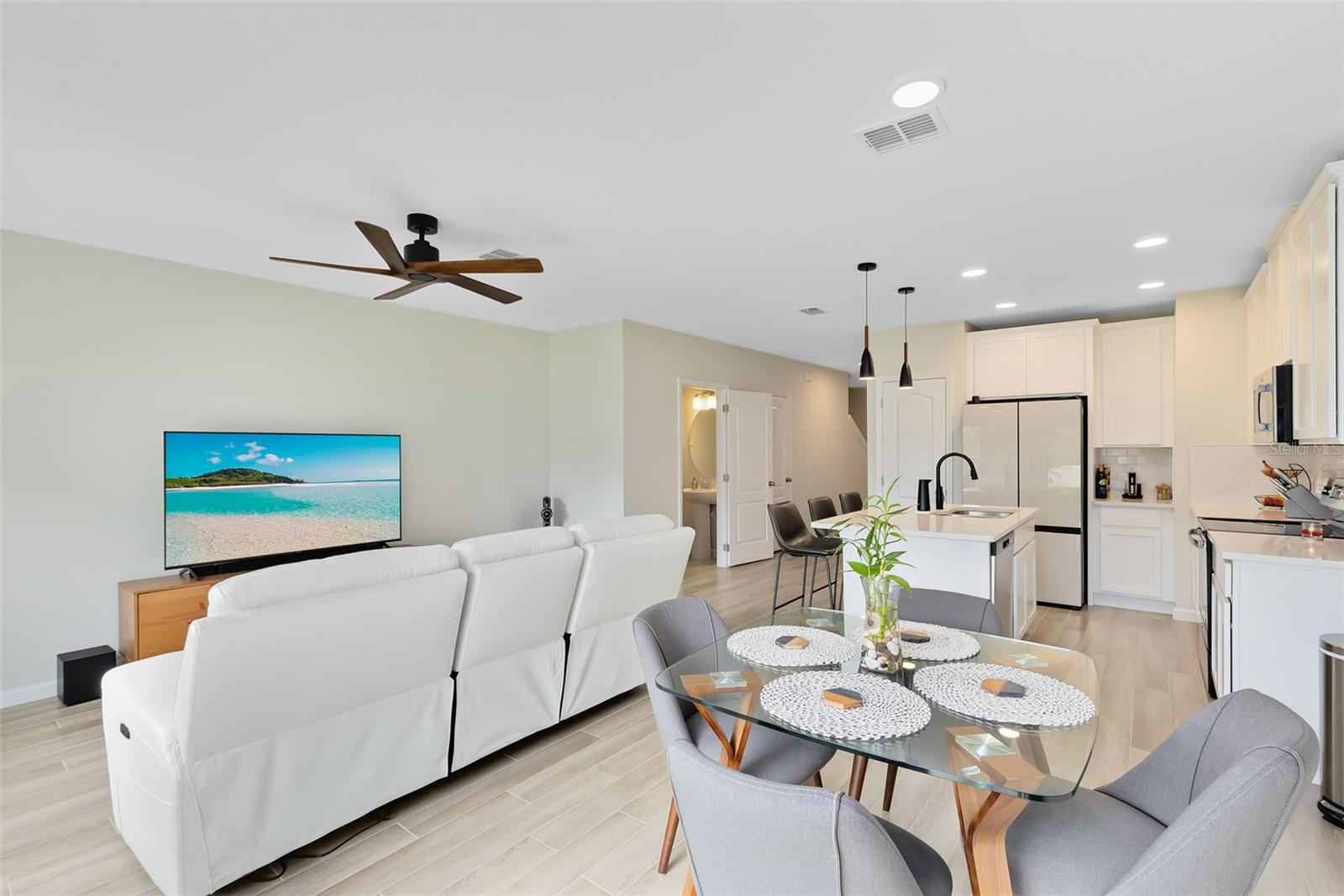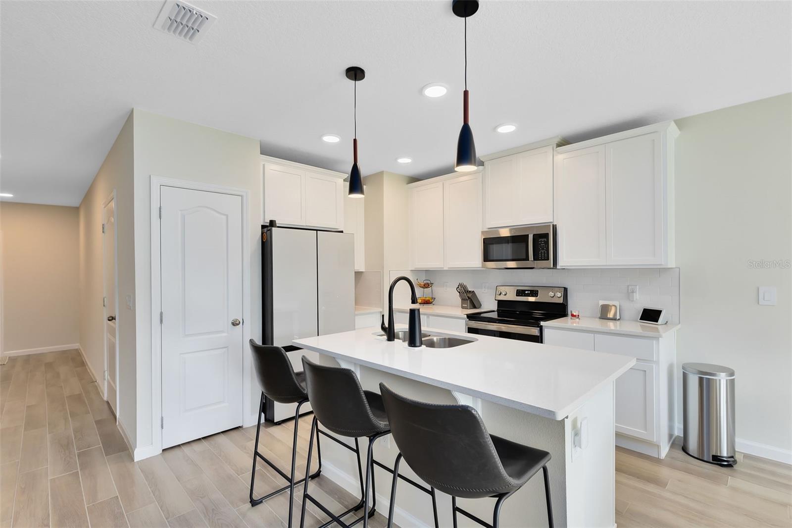 Stunning & Modern Townhome possui 3 quartos espaçosos e 2,5 banheiros luxuosos, tornando-o perfeito para relaxamento e entretenimento. Aproveite a conveniência de uma garagem para 1 carro equipada com carregador de carro elétrico, piso elegante do Race Deck e ampla garagem pavimentada para 2 carros. Entre para descobrir uma cozinha elegante com bancadas de quartzo, uma ilha grande, armários brancos de 42 polegadas, micro-ondas de aço inoxidável GE, lava-louças e fogão. Grande retiro no quarto principal com amplo closet, banheiro luxuoso com pias duplas. A casa foi projetada para uma vida moderna com interruptores inteligentes, luzes pendentes e ventiladores de teto para conforto e eficiência. As persianas blackout premium e as certificações de eficiência energética garantem privacidade e economia de custos. Termostatos inteligentes mantêm sua casa com a temperatura perfeita durante todo o ano. 100% certificado Energy Star 3.1, incluindo isolamento de teto R-38, barreira de telhado radiante e janelas de painel duplo Low-E.