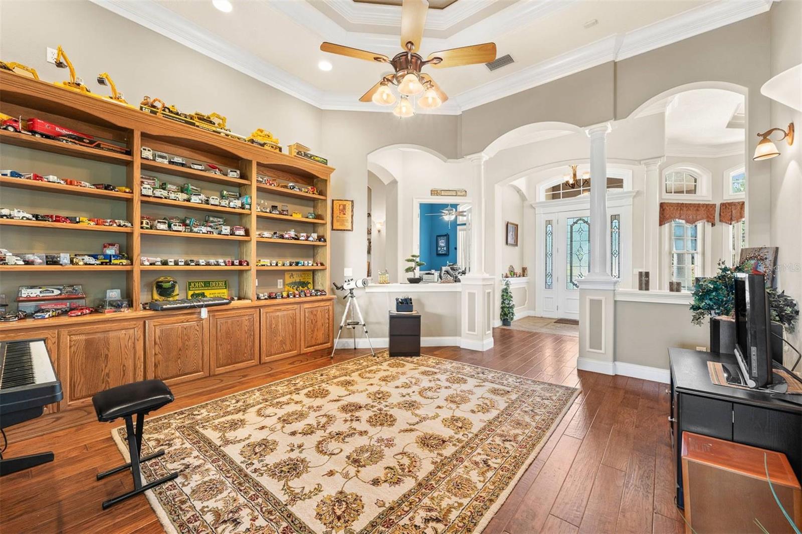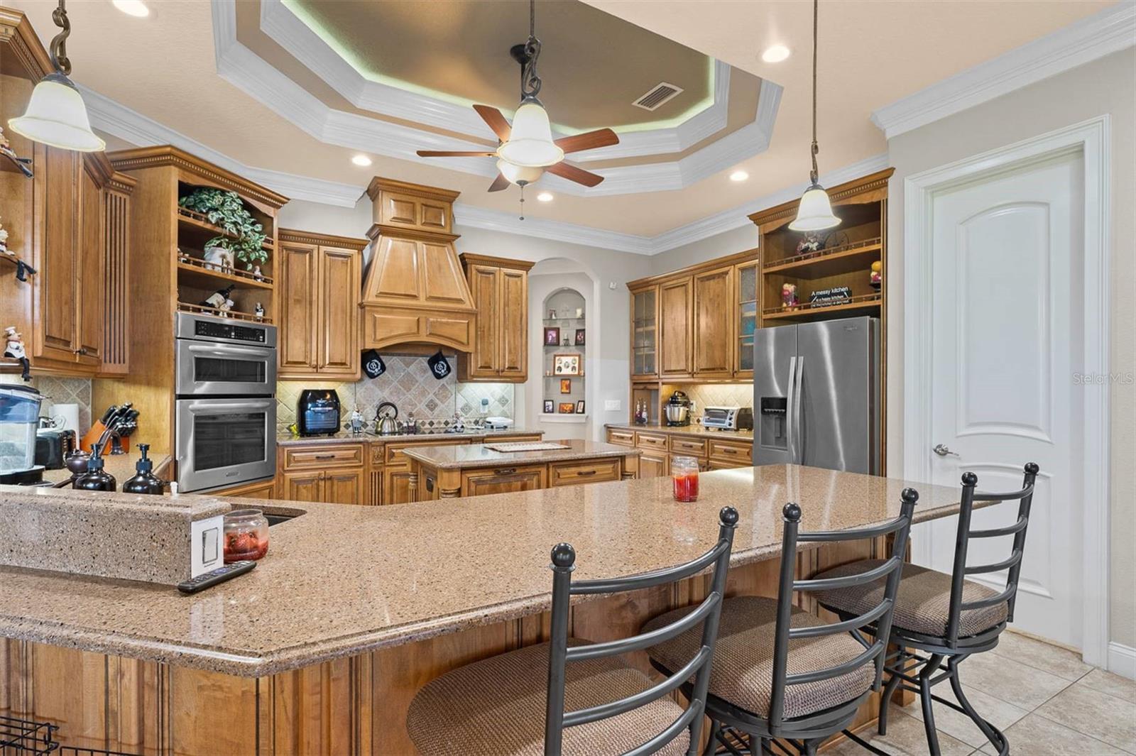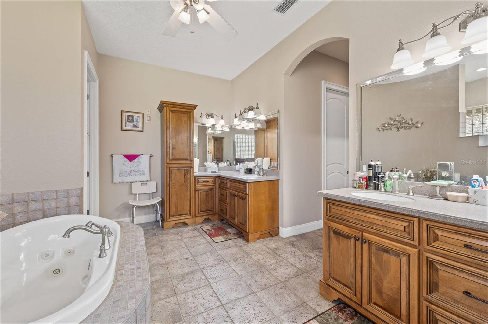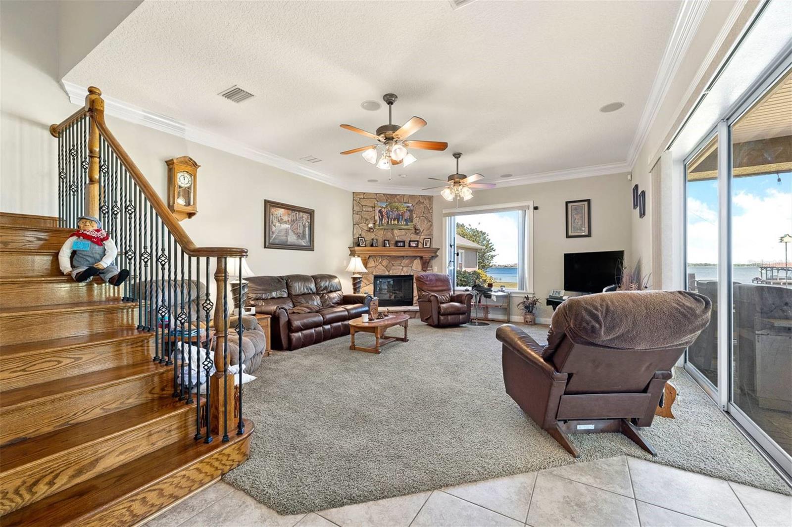 Espaçoso casa personalizada de propriedade do construtor. Too many upgrades to list all, home has double crown molding in ceilings, all tray ceilings have recessed lighting, all upgraded flute trim around sliders, built in dressers in master walk in closets, all house appliances are set up for gas or electric, gas fireplace with remote, Cabinets are all maple, Silestone countertops, upgraded 8 ft solid interior doors, surround sound system in family room and upstairs family room, a 2º ar condicionado separado para o quarto principal e outro 3º ar condicionado separado para o andar de cima, House tem barreira de irradiar em um sótão r-30, o Central Vac por toda a casa, um novo telhado em 2021 com 40 anos de telhas arquitetônicas em casa e garagem separada. Todas as janelas são baixas janelas com revestimento de vinil isoladas, pavimentadoras de tijolos no pátio e calçadas dianteiras e traseiras. A casa e a garagem isolada têm serviço de 400 amplificadores. A garagem destacada possui 3 ar condicionado de 1/2 tonelada, o Central VAC e o lado do RV da garagem isolada é configurada com serviço de 50 amp e dumping de esgoto. Todos os pisos de garagem têm tinta e selador comerciais. A entrada frontal é cercada com cerca de ferro forjado, colunas de pedra e portão elétrico. Sistema de irrigação bombas do lago. 150 pés de doca com área de barco coberta com elevador elétrico. A doca está equipada com água e elétrica. Tipo de armário do quarto: Closet (quarto primário).