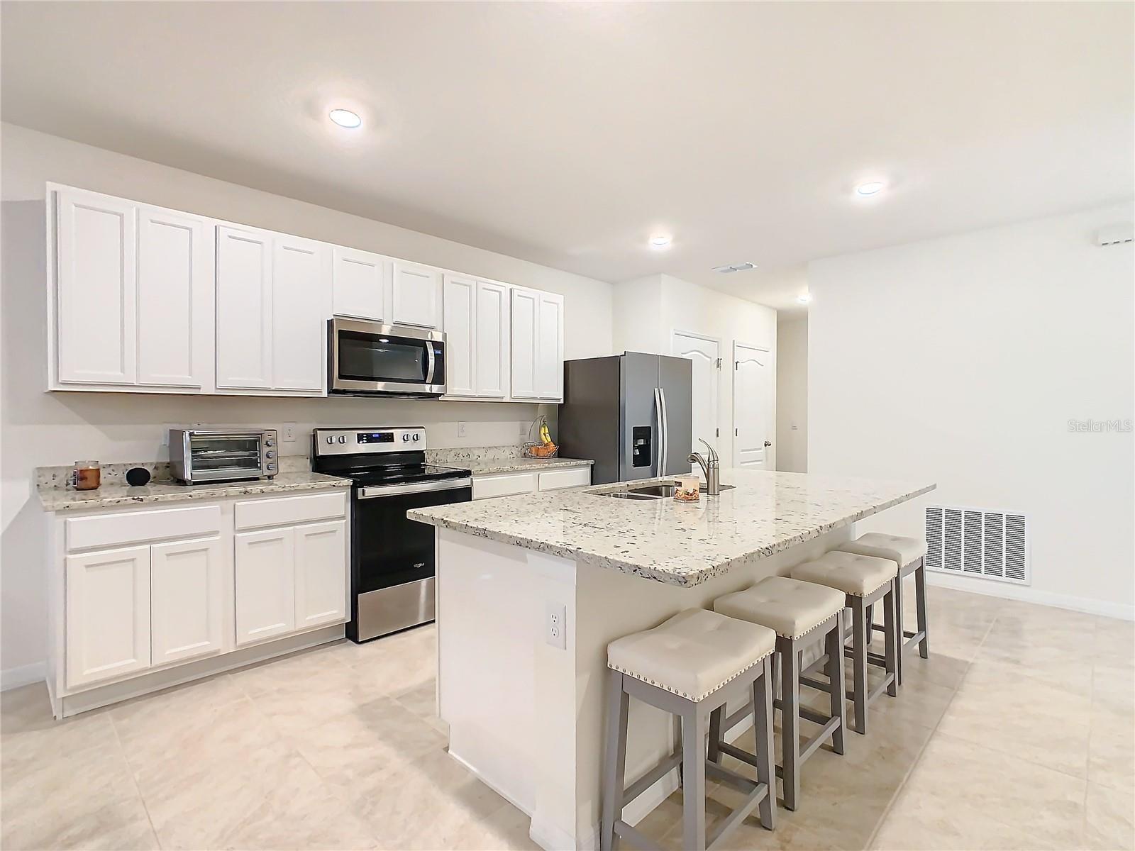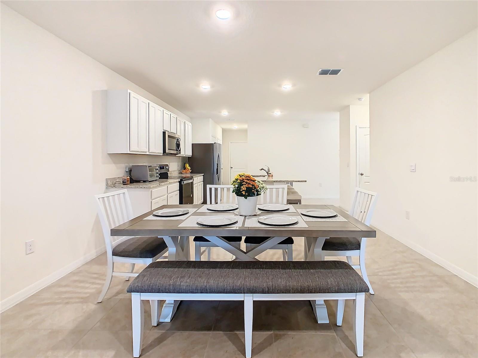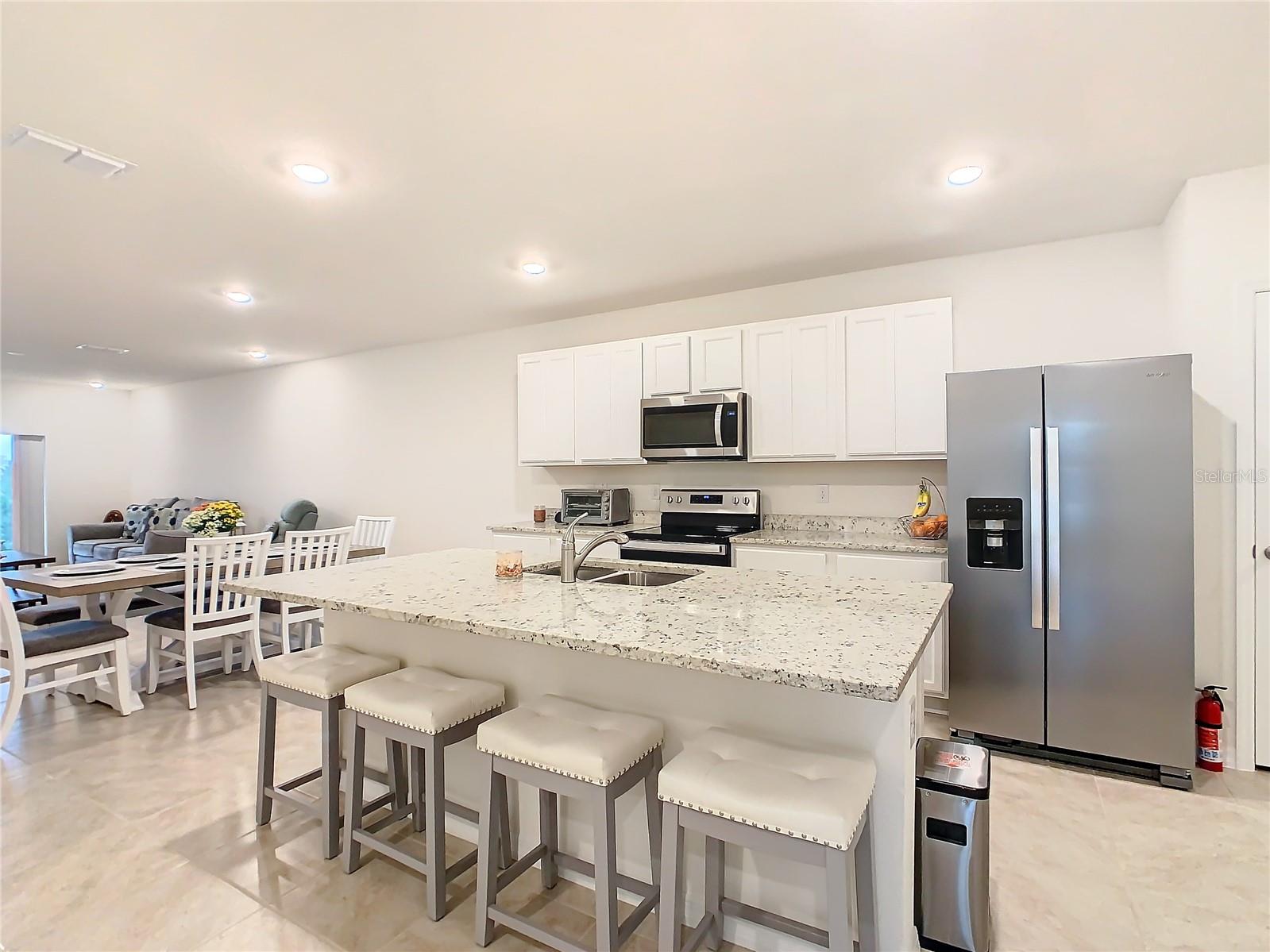 Descubra o fascínio de viver na nova e próxima área de Lake Nona nesta comunidade nova. Entrando neste adorável duplex de 2 quartos de 2 banheiros, você encontrará tudo em condição imaculada. Lindas ladrilhos de cerâmica grandes em todo o espaço e escritório/ den, que o cumprimentam quando você entra pela porta da frente. Em seguida, entre na cozinha muito aberta e espaçosa, que oferece uma grande ilha para entreter ou ter toda a sala necessária para o entusiasta do chef, lindas bancadas em granito, utensílios de aço inoxidável e armários finos, perfeitos para reuniões de família! Opções duplas para comer na ilha ou com muito espaço para uma mesa de jantar para a família. Levando à sala de estar, você encontrará iluminação embutida em todo o espaço de parede para a grande TV e espaço para o conjunto de estar completo. Mudando -se para o mestre, você encontrará um tapete de pelúcia para uma cama king size e móveis cheios, e as mesas de cabeceiras incluídas. Armários grandes e dela para todas as suas roupas e acessórios. Pias duplas no banheiro mestre com bancadas em granito, um armário de água privado e um chuveiro de stand-up. Dentro de utilitários com uma lavadora e secadora quase novas para você, sem preocupações, quando se move junto com um abridor de porta de garagem extremamente tranquilo, oferecendo fácil acesso quando você chegar em casa. Aproveite seu café nas manhãs tranquilas da varanda traseira, com vista para a vista serena da água, sem problemas dos insetos e criaturas da Flórida. Este duplex tem tudo, você não precisará fazer nada, basta entrar e começar a apreciar o estilo de vida do lago Nona !!!
