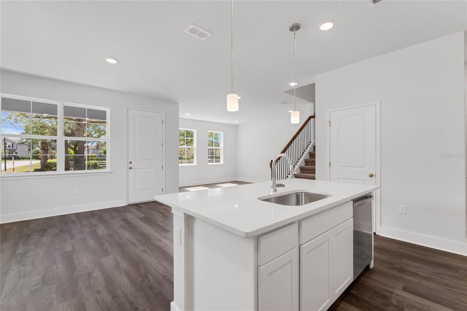 Mudança rápida! Harmony Isle, localizada na comunidade Harmony, rica em comodidades. Experimente uma vida de baixa manutenção em uma comunidade planejada com uma variedade de comodidades, incluindo docas comunitárias para barcos, golfe, parques para cães, horta comunitária, trilhas amplas e áreas de recreação. Esteja você passando o dia em Buck Lake, dando um mergulho na piscina ou caminhando na trilha natural, você pode desfrutar de um estilo de vida de resort durante todo o ano, repleto de uma infinidade de opções de entretenimento e relaxamento. O Ellery, uma luxuosa residência urbana de esquina com 4 quartos e 2,5 banheiros que se estende por 1.960 pés quadrados, oferece uma pitoresca vista parcial do lago a partir da sala de jantar. Ao entrar pela varanda coberta, você é saudado por uma integração perfeita entre sala de jantar, cozinha e sala grande. A cozinha possui bancadas de quartzo branco Frost, um backsplash elegante e armários superiores brancos de 42 polegadas, completos com uma ilha de cozinha deslumbrante. A escada possui balaústres de metal sofisticados, guiando você até a suíte do proprietário com banheiro adjacente e closet espaçoso, lavanderia grande com tanque e 3 quartos de hóspedes acolhedores. O banheiro do proprietário e o banheiro de hóspedes no andar de cima incluem armários brancos e bancadas de Silestone. Este sobrado apresenta carpete na suíte do proprietário e nos quartos de hóspedes, com elegante e luxuoso piso de pranchas de vinil (LVP) em todo o primeiro andar e azulejos 17x17 nas áreas úmidas. Localizada a apenas 15 minutos ao sul da próspera área de Lake Nona, Harmony Isle oferece uma combinação perfeita de beleza natural e acessibilidade às escolas, lojas, restaurantes, atrações, praias e aeroportos Harmony. Bem-vindo à Ilha Harmony! AVISO LEGAL: Fotos e/ou desenhos de casas podem mostrar paisagismo atualizado, elevações e recursos opcionais que podem não representar as casas com preços mais baixos na comunidade. Preços, incentivos e promoções estão sujeitos a alterações a qualquer momento. As promoções não podem ser combinadas com nenhuma outra oferta. Peça ao Representante de Vendas e Marketing detalhes sobre promoções.