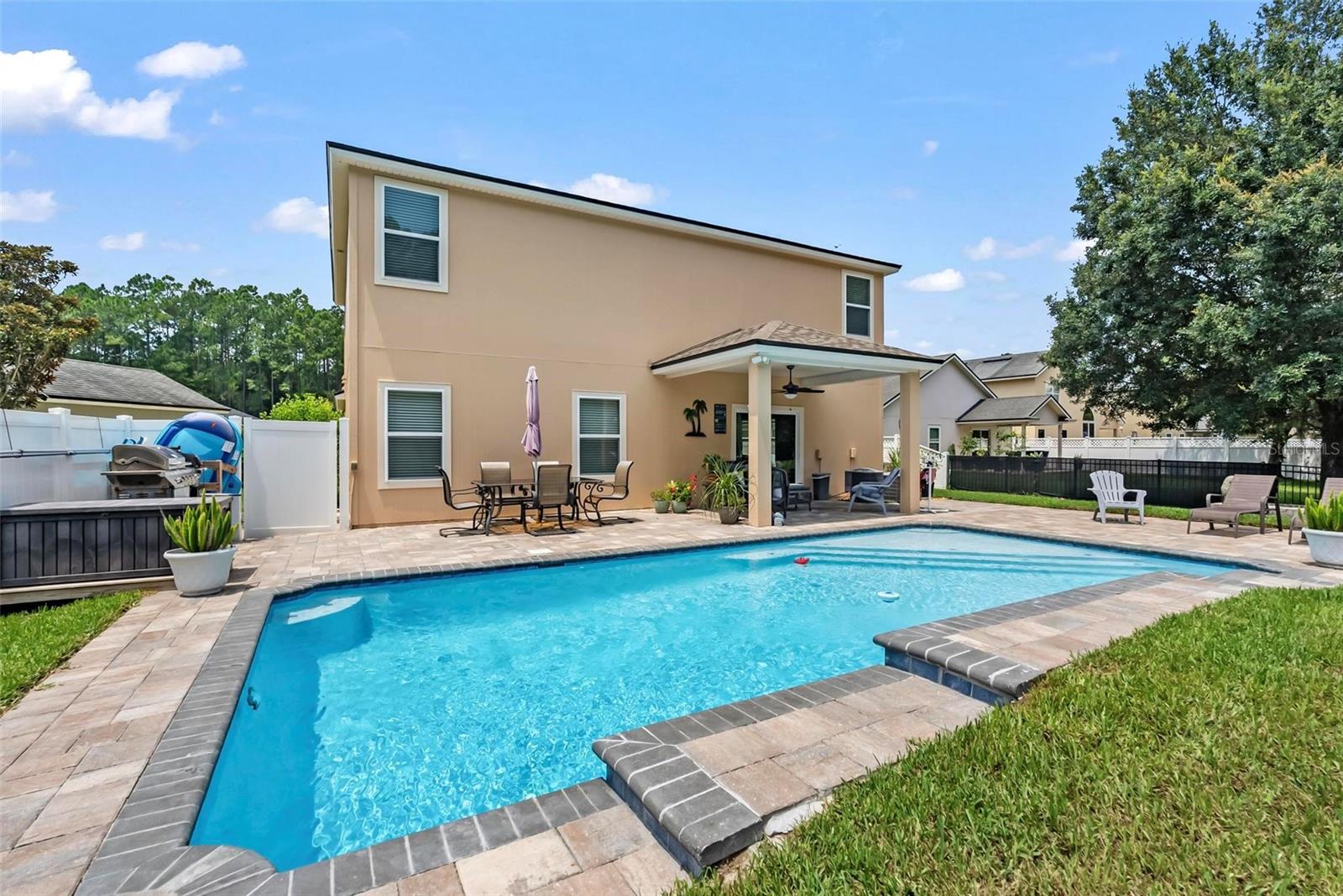 A serenidade é encontrada neste tranquilo beco sem saída quando você pode sair para sua varanda coberta até o deck da piscina, observar os pássaros selvagens do outro lado da água e fazer com que os cervos subam até sua cerca em busca de um lanche. Esta casa recém-pintada de 2.952 pés quadrados tem 4 quartos, 3,5 banheiros, escritório/sala de jantar, recanto, sala de família, suíte principal no andar de baixo e grande sala de bônus para entretenimento. A cozinha dispõe de armários de 42'' com sancas, frigorífico Samsung, gama Samsung com forno de convecção, micro-ondas GE, máquina de lavar loiça Bosch e ilha de cozinha com arrumação. A garagem para 2 carros dispõe de generosas prateleiras de arrumação. O telhado é novo em 2024 e o HCAV foi atualizado com luzes ultravioleta. O carpete novo foi instalado em 2024. Os detectores de fumaça foram todos substituídos e religados em agosto de 2024. As casas com piscina nem sempre estão disponíveis, então não perca esta! Convenientemente localizado perto de Jacksonville e St Augustine para todo o seu acesso de trabalho, recreação e compras.