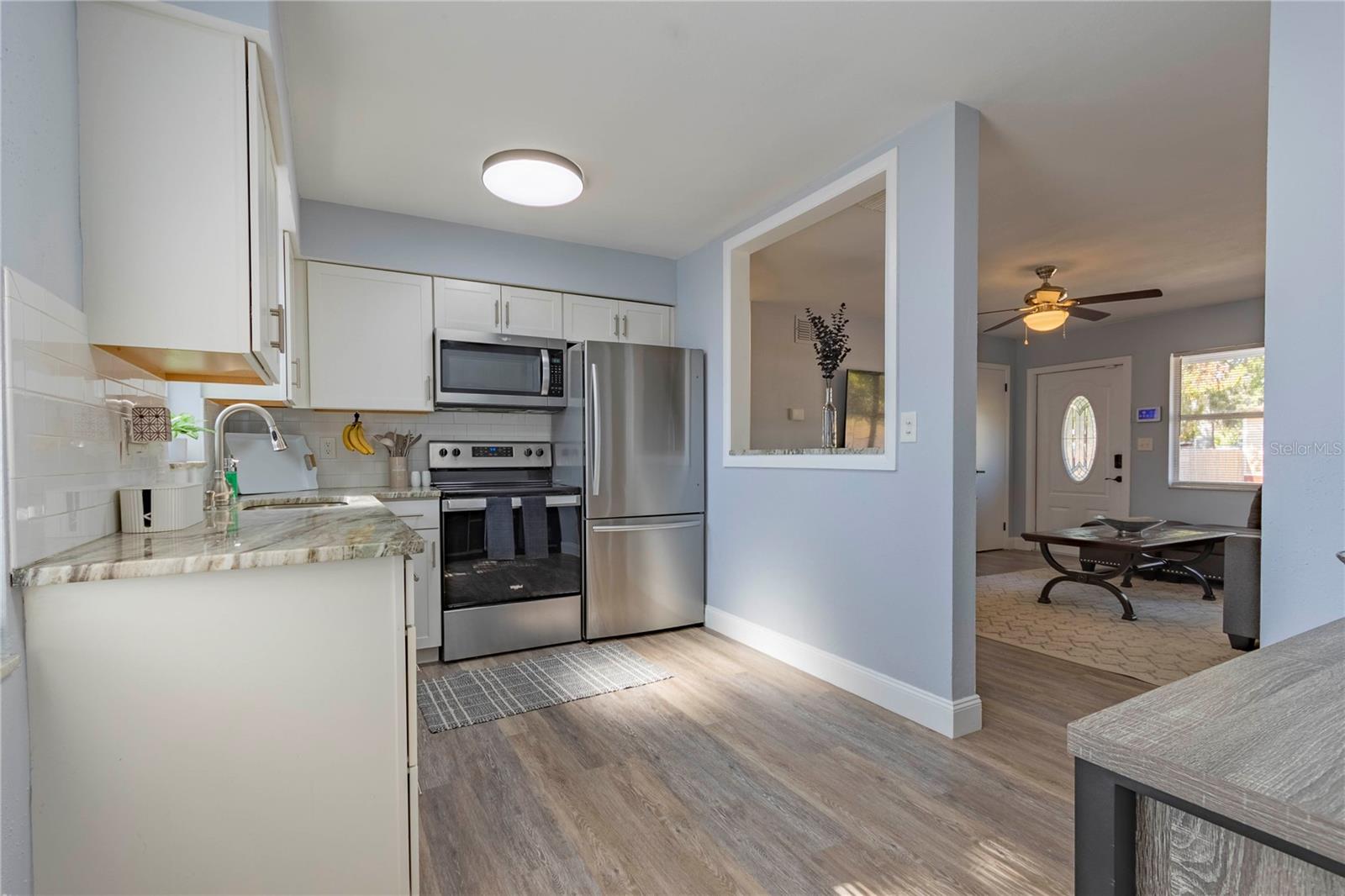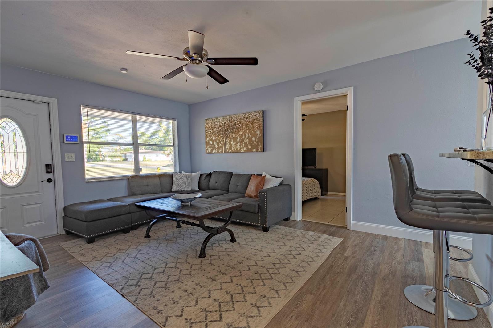 Bem -vindo a esta convidativa 3 camas, 1,5 banheira, situada em um lote de canto principal! A casa foi atualizada em 2021 e possui uma cozinha completa com utensílios de aço inoxidável, bancadas em granito e uma janela aberta para a sala de estar. Além das reformas em 2021, as licenças foram puxadas para um novo telhado e um painel de serviço elétrico de 125 A com medidor: dando a qualquer novo proprietário tranquilo. Todos os principais aparelhos, como a geladeira e a lavadora/secadora, transmitem. Aproveite a privacidade de um quintal cercado, perfeito para relaxar ou divertir. A casa fica em um local ideal, a poucos passos do campo de golfe Pinellas Trail e Twin Brooks, com a praia e o centro de uma curta viagem de distância. Venha aproveitar o estilo de vida da Flórida.