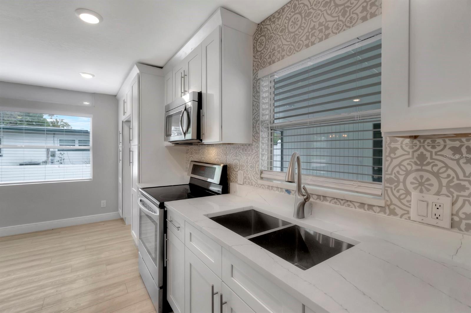 NÃO EM UMA ZONA DE INUNDAÇÃO. ALTO E SECO. Bem-vindo a esta casa renovada, elegante e contemporânea, onde a elegância moderna encontra o design funcional. Ao entrar, a ampla cozinha certamente chamará sua atenção. Nenhum detalhe foi poupado nesta renovação, desde a dramática e enorme ilha de cozinha até os eletrodomésticos de aço inoxidável atualizados, as tendências das bancadas de quartzo e os novos acessórios. Esta verdadeira obra-prima flui perfeitamente para a ampla área de estar e jantar, criando um espaço perfeito para entretenimento. A suíte do proprietário é um retiro privado, separado dos demais quartos, com acesso direto ao quintal e um banheiro totalmente reformado, feito por artesãos de azulejos locais. No corredor da cozinha, você encontrará um banheiro de hóspedes lindamente reformado, com azulejos e penteadeira novos. Mais abaixo, os quartos adicionais oferecem amplo espaço, todos com piso atualizado. Esta linda casa está repleta de recursos desejáveis, incluindo uma varanda protegida com armazenamento extra, uma fogueira privativa no quintal e um quintal cercado em um terreno de tamanho generoso. É o epítome do luxo e do requinte, perfeito para quem gosta de hospedagem com a comodidade de uma garagem ampla para amplo estacionamento. Idealmente localizada, esta propriedade oferece fácil acesso às melhores atividades recreativas de São Petersburgo. Quer seja uma viagem rápida a St. Pete ou Clearwater Beach, ou um dia de pesca no St. Pete Pier, esta casa oferece a combinação perfeita de estilo, conforto e localização privilegiada. Mergulhe nesta propriedade deslumbrante e aproveite todos os benefícios da vida em São Petersburgo.