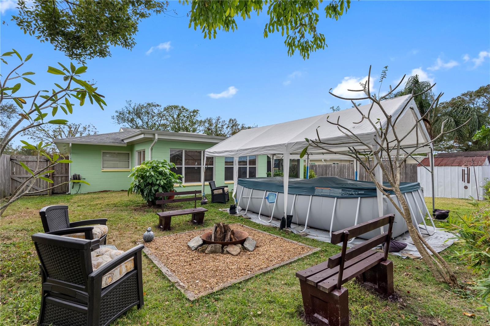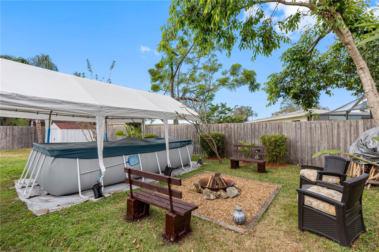Alto e seco - SEM zona de inundação. Esta propriedade se saiu muito bem durante as temporadas de furacões recentes e passadas! Bem-vindo ao santuário dos seus sonhos, um refúgio resiliente construído em blocos. Situada em um bairro sereno e familiar em St. Pete, esta encantadora casa de 2 quartos e 2 banheiros é um farol de segurança e conforto, oferecendo a máxima tranquilidade. Imagine viver num paraíso alto e seco, livre das preocupações das zonas de inundação, onde esta casa resistiu graciosamente às mais violentas tempestades. Ao entrar, você é recebido por um espaço luminoso e convidativo, banhado por luz natural que dança pela sala. A construção durável do bloco promete longevidade, enquanto as atualizações modernas, Roof 2018, HVAC 2018, Aquecedor de Água Quente a Gás 2018 e um bônus de uma piscina acima do solo com cobertura. O coração da casa, a cozinha, é uma delícia culinária, perfeita tanto para jantares íntimos como para encontros animados. Bancadas de granito, armários amplos e uma grande janela panorâmica acima da pia tornam cada preparação de refeição uma ocasião alegre. Lá fora, o amplo terreno é o seu oásis pessoal. Cercado por uma cerca de privacidade, o quintal é perfeito para reuniões familiares, entretenimento ou simplesmente relaxar. Aproveite o pátio fechado, aconchegue-se junto à fogueira ou dê um mergulho refrescante na piscina acima do solo. A entrada ampliada acomoda até quatro carros e um galpão de armazenamento oferece amplo espaço para todas as suas ferramentas e brinquedos. Somando-se ao charme único da casa, pavões selvagens vagam pelas ruas tranquilas, infundindo no bairro uma sensação de admiração e serenidade. Você está a poucos minutos das ofertas vibrantes de Tyrone, com sua variedade de opções de compras, restaurantes e entretenimento, e a uma curta distância de carro do movimentado centro de St. Pete e das praias ensolaradas. Esta adorável casa também está convenientemente localizada perto do centro recreativo, perfeita para atividades divertidas com amigos e familiares. Abrace o estilo de vida com que sempre sonhou nesta casa encantadora, onde cada dia parece um retiro tranquilo.