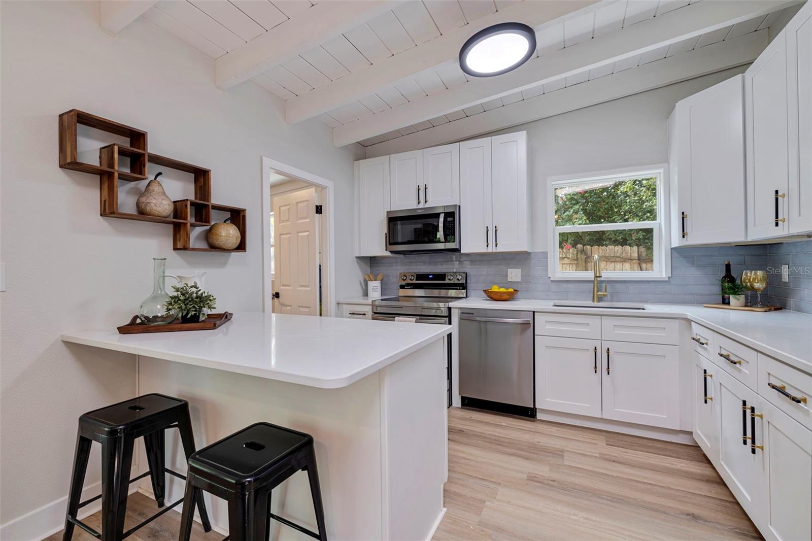 ** O vendedor está oferecendo uma garantia de 1 ano ** Bem -vindo ao prestigiado bairro de Bahama Shores, uma jóia em uma das áreas mais incríveis de São Petersburgo, conhecida por seu charme incomparável e arredores primitivos. Reconhecida por seus lotes do tamanho de uma propriedade graciosamente adornados com belas árvores e ruas largas e forradas de tijolos, esta comunidade possui a comodidade exclusiva de um parque privado à beira-mar. Esta casa de construção de blocos requintadamente remodelada possui 3 quartos e 2 banheiros completos. Ao entrar, você será recebido por tetos de madeira de feixe expostos com clarabóias e piso de tábuas luxuosas por toda parte. A sala da família, completa com uma lareira de pedra aconchegante, e a espaçosa sala de estar o leva à elegante sala de jantar. A nova cozinha possui armários de agitadores brancos, balcões de quartzo brilhante, utensílios de aço inoxidável e uma barra de café da manhã. O quarto principal oferece um banheiro privativo lindamente atualizado com um chuveiro, enquanto os dois quartos adicionais compartilham um banheiro de salão renovado com uma banheira de imersão. Um espaço flexível/bônus na frente da casa é um escritório em casa ideal. Do lado de fora, as portas deslizantes de vidro duplo aberto a uma enorme área de pátio coberto, levando a um enorme quintal totalmente cercado com amplo espaço para uma piscina. Os recursos adicionais incluem janelas de impacto de furacões recém-instaladas, um sistema HVAC novinho em folha, um novo aquecedor de água e uma grande lavanderia interna. Localizado em uma rua de beco sem saída, a poucos passos da Little Bayou Reserve, um parque comunitário à beira-mar com um píer de pesca, esta casa oferece um local imbatível a apenas 10 minutos do vibrante centro da cidade, onde você encontrará uma infinidade de restaurantes, concertos no parque, o recém-construído Pier, Museus, Bay Parks e mais. As praias de renome mundial da Flórida estão a apenas 15 minutos e são apenas 5 minutos para a I-275 e 30 minutos para o Aeroporto Internacional de Tampa. Ligue hoje para agendar sua turnê privada e descobrir o epítome de luxo que vive em Bahama Shore