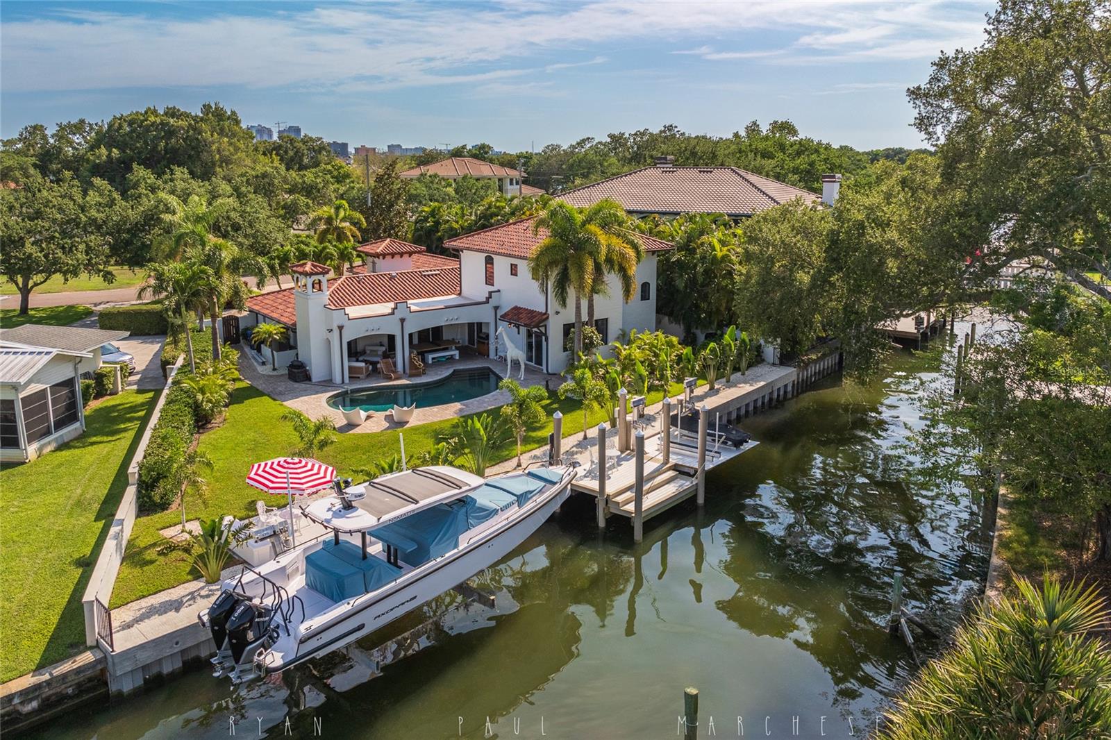 This mediterranean Bay Point Drive oasis on exclusive Snell Island, in the heart of Snell Isle, features an open floor plan, gourmet kitchen and new dock, seawall and two lifts, one 16k pound elevator easily supporting a 40’ vessel plus a 12k pound elevator currently set up for two jet skis, all on a protected canal just seventy-five meters from the stunning open blue waters of Tampa Bay and its countless beaches, Bares e restaurantes. With four bedrooms, three bathrooms and a large open floor plan blending a gourmet kitchen with new Décor appliances and stainless steel butler’s pantry with a large, comfortable living area, this art lover’s dream boasts integrated entertaining spaces with smart home functionality including Lutron remote lighting, all new LED lighting, exquisite chandeliers by lighting artist Ingo Maurer, in ceiling speakers, electronic privacy shades and much more. Do lado de fora, o quintal grande, exuberante, privado e seguro possui uma piscina de água salgada aquecida com o equipamento mais recente e iluminação LED e um pátio coberto de grandes dimensões com lareira, proporcionando descanso dos dias quentes de verão e noites frias de inverno. Para o entusiasta automático, esta casa possui uma garagem de 2,5 carros com três portas de garagem, acomodando amplamente dois veículos, um carrinho de golfe e todos os brinquedos aquáticos necessários para realmente apreciar a magia da vida de São Petersburgo. Não perca a oportunidade de ver a propriedade de acesso direto de água com o preço mais baixo em Snell Isle, onde você está a minutos de caminhar, andar de bicicleta, passear de barco ou carrinho de golfe para todas as comodidades e festivais vibrantes no centro de São Petersburgo tem a oferecer.