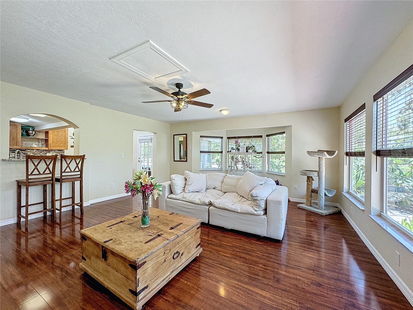 Paraíso dos amantes da natureza! Venha ver os peixes-boi e as lontras brincarem! Esta encantadora e atualizada casa de dois quartos e dois banheiros está situada em um trecho pitoresco de Bear Creek, que leva à Baía de Boca Ciega. Esta casa tranquila fica perto de um escoamento de água doce onde peixes-boi e lontras vêm explorar, oferecendo muita natureza para ver do seu quintal. A casa fica em um terreno em forma de torta com 147 pés de frente para o mar em uma rua sem saída e sem saída. Possui uma grande entrada de automóveis com muito estacionamento e muito espaço de armazenamento para todos os seus equipamentos de praia nos dois galpões de armazenamento. No interior, você encontrará um espaço luminoso atualizado com muitas janelas e tetos abobadados, dando-lhe uma sensação arejada. O piso laminado de madeira de bom gosto percorre as áreas de estar e o quarto com azulejos na cozinha. A cozinha atualizada possui balcões de granito e amplo espaço de armazenamento, com janelas de clerestório que proporcionam luz adicional. Há uma área ensolarada para café da manhã com uma porta de vidro que se abre para o pátio coberto. Imagine desfrutar do café da manhã enquanto observa a vida selvagem local! Na frente da casa há uma sala adicional que pode ser usada como home office. Ambos os quartos têm tectos abobadados. O quarto principal tem um banheiro privativo espaçoso, recentemente atualizado com azulejos modernos, uma penteadeira nova e acessórios. O banheiro do corredor também foi atualizado e convenientemente localizado próximo a um armário de lavanderia entre os dois quartos. Do lado de fora, você encontrará um quintal extravagante e arejado, com muito espaço verde ao longo da orla. Você pode pescar no paredão, onde sempre há tainha e robalo. O paisagismo inclui árvores frutíferas como manga, abacate, laranja, banana e amora, e o quintal é totalmente cercado por segurança. Para sua tranquilidade, o telhado foi substituído em 2021 e o AC foi substituído em 2022. Não perca esta casa única localizada no fabuloso bairro de South Pasadena, a poucos minutos de Treasure Island e das praias de St. ! O Gulfport Arts District e a Gulfport Beach também ficam a uma curta viagem, com a vibrante vida noturna e eventos culturais do centro de São Petersburgo nas proximidades!