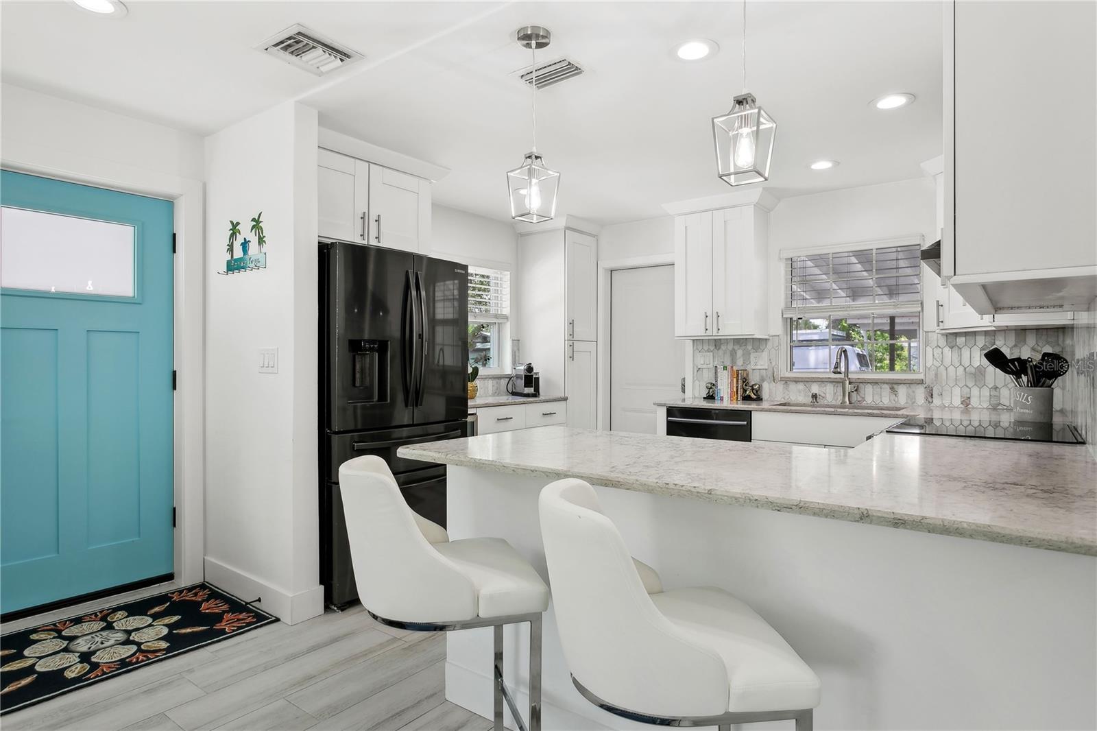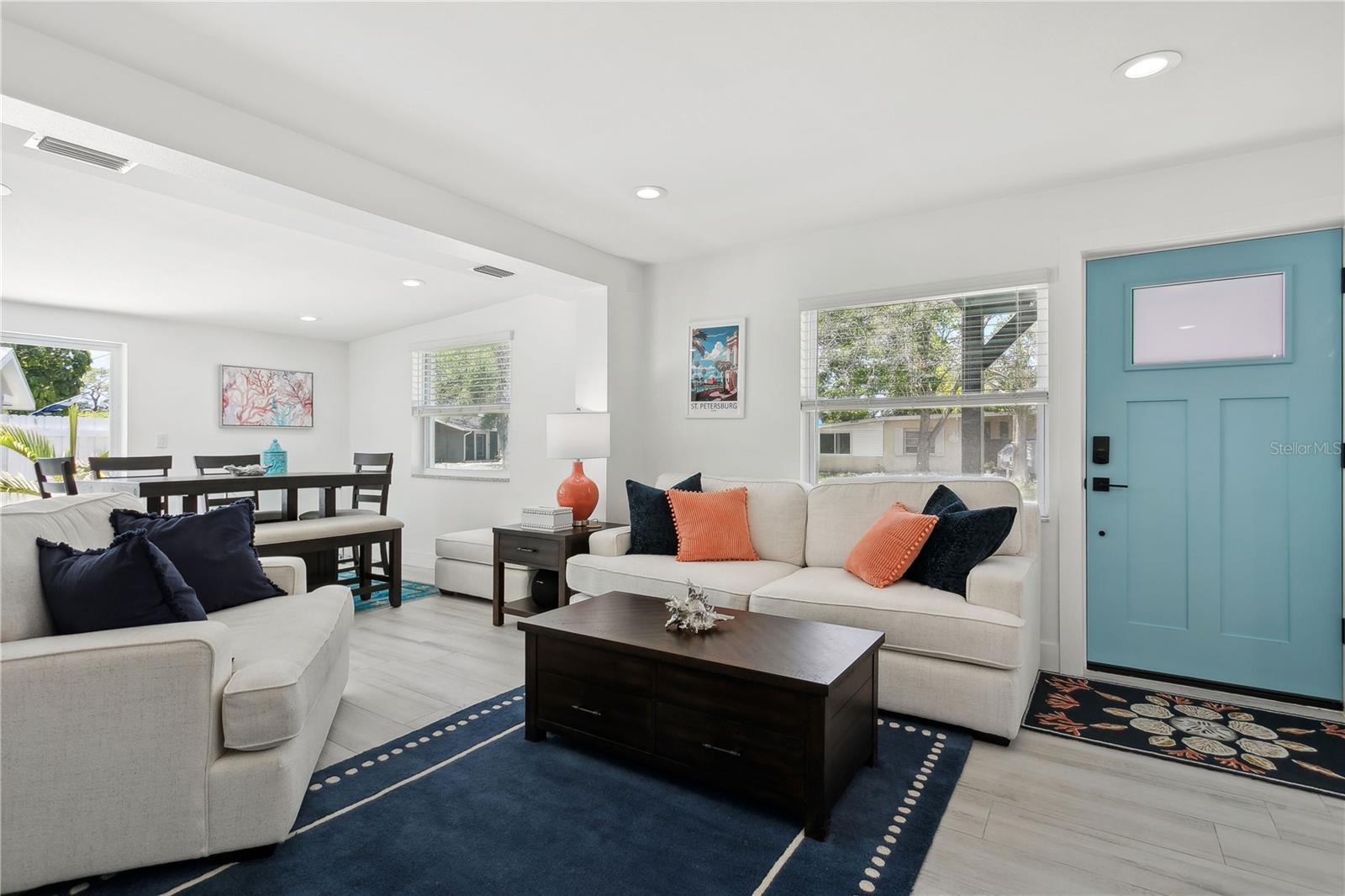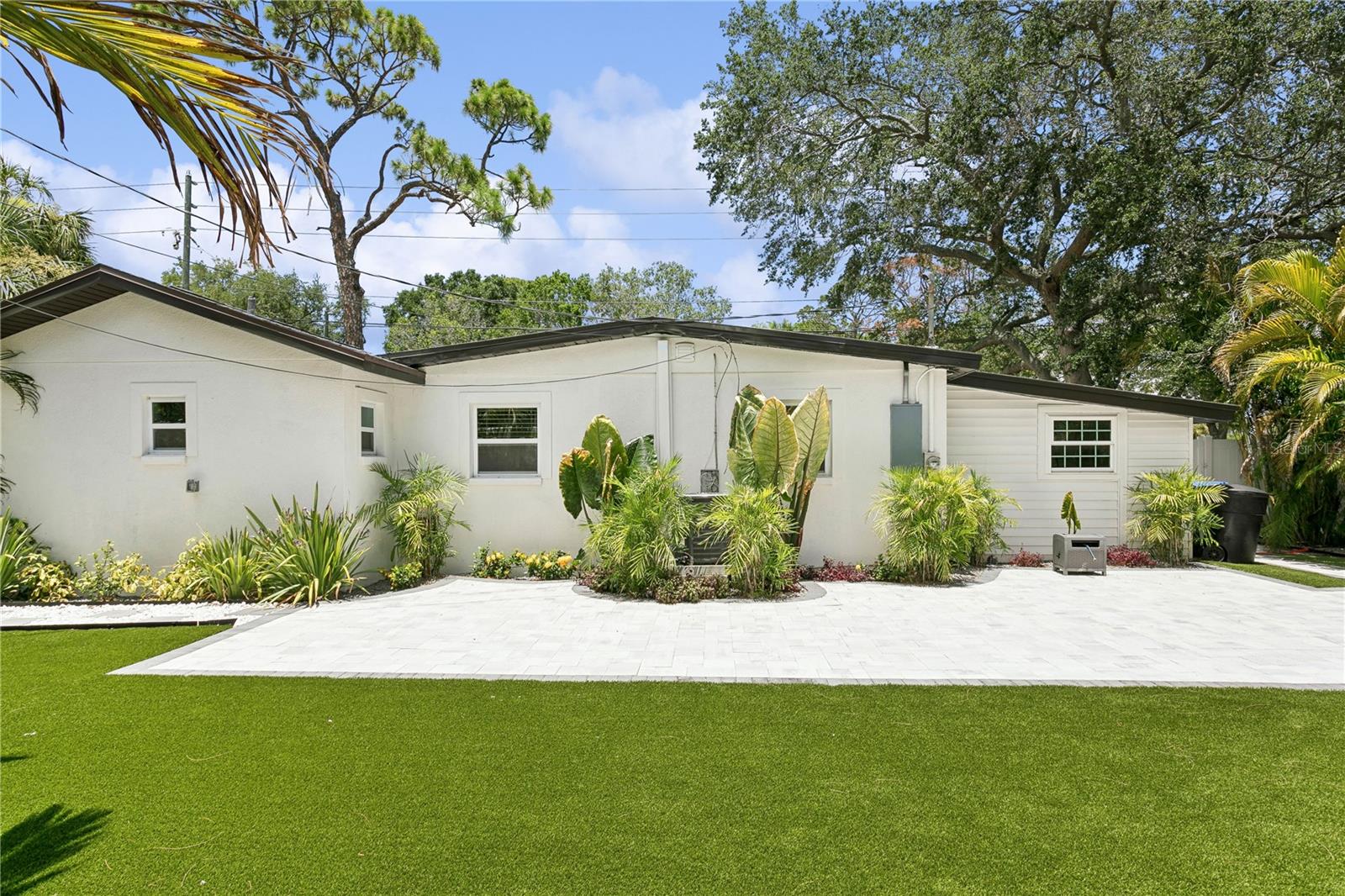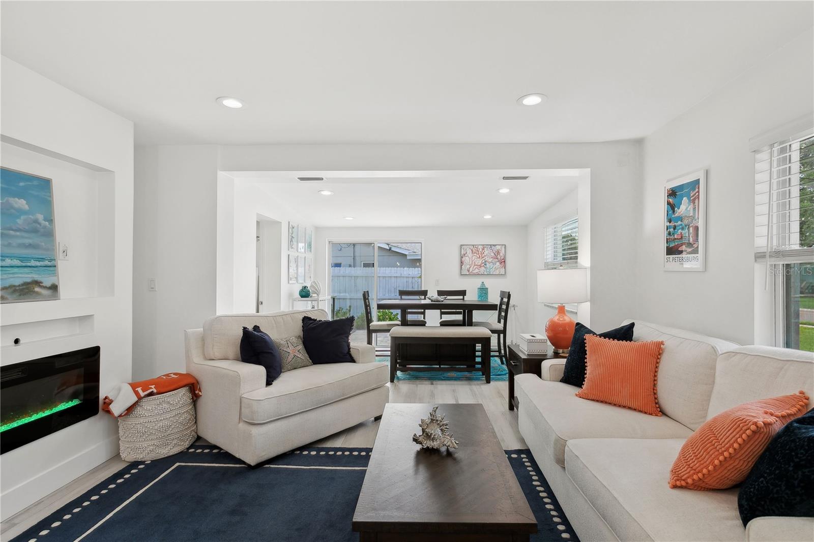 Este Shore Acres Showstopper é uma casa de família única e atualizada, cheia de design da Flórida, com um toque moderno - literalmente traz uma escova de dentes porque esta casa está se movendo pronta! A planta baixa aberta, com piso de aparência de madeira de azulejos consistentes, oferece linhas de visão da sala de jantar durante toda a sala de estar e cozinha. Falando na cozinha- uau ... tanto contra-espaço com uma península de altura de altura para assentos adicionais, utensílios de aço inoxidável escuro, belas backsplash e uma área de café/bar com geladeira. A sala de estar e a sala de jantar estão cheias de luz natural, passando pelas janelas de vinil atualizadas e novos controles deslizantes, e uma lareira elétrica com a TV em torno da TV e a iluminação embutida completa o espaço. A suíte primária possui três armários (um um verdadeiro armário) e um banheiro privativo com pias duplas. Os dois quartos de hóspedes não estão carentes no espaço do armário e compartilham um banheiro de hóspedes de inspiração costeira com banheira/chuveiro. Through the carport, you can access your AIR CONDITIONED utility room (an extra hundred square feet not counted in the 1267sf), with a washer and dryer that convey to the buyer, a new water heater, and ample storage for toys, boxes, equipment, etc. Current owner invested over $80,000 into the professional grading and lush landscaping of the front and back yards, including a fantastic paver circle driveway, a paver back and side patio perfect for Divertido, fogueira de pedra e um quintal lindamente esperto para aquela vida útil de baixa manutenção. A apenas uma quadra do New Shore Acres Rec Center (com piscina, centro juvenil, playground e muito mais) e apenas 5 km até o novo Speer YMCA de última geração. Quer ir para o centro de St. Pete? Um rápido passeio de carrinho de golfe de 4 milhas pode ter você lá em minutos, aproveitando a agitação de um dos distritos de restaurantes, artes e entretenimento mais quentes. St. Pete está convenientemente localizado perto de praias mundialmente famosas, vários aeroportos, quatro equipes esportivas profissionais e muita diversão a se divertir perto ou na Baía de Tampa e no Golfo do México.