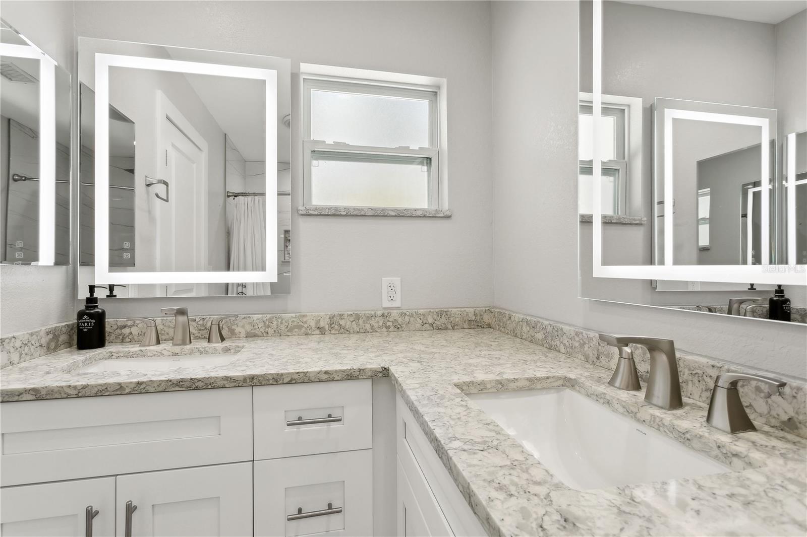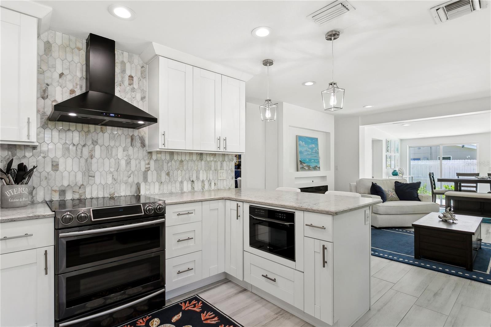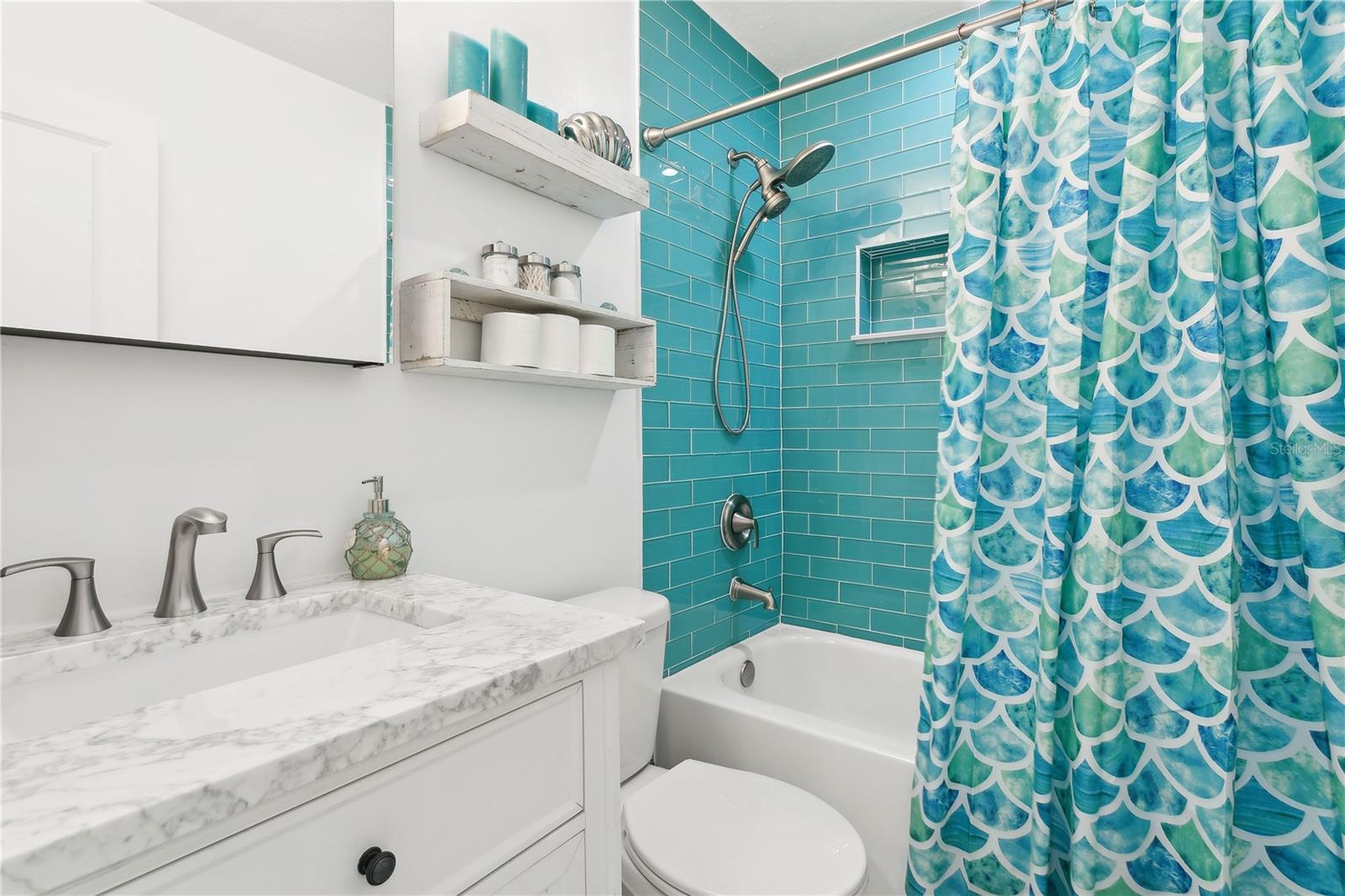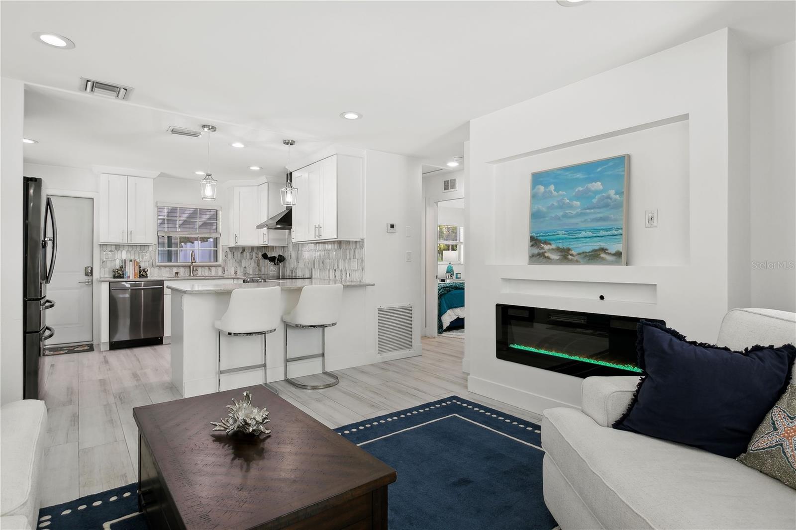 Este Shore Acres Showstopper é uma casa de família única e atualizada, cheia de design da Flórida, com um toque moderno - literalmente traz uma escova de dentes porque esta casa está se movendo pronta! A planta baixa aberta, com piso de aparência de madeira de azulejos consistentes, oferece linhas de visão da sala de jantar durante toda a sala de estar e cozinha. Falando na cozinha- uau ... tanto contra-espaço com uma península de altura de altura para assentos adicionais, utensílios de aço inoxidável escuro, belas backsplash e uma área de café/bar com geladeira. A sala de estar e a sala de jantar estão cheias de luz natural, passando pelas janelas de vinil atualizadas e novos controles deslizantes, e uma lareira elétrica com a TV em torno da TV e a iluminação embutida completa o espaço. A suíte primária possui três armários (um um verdadeiro armário) e um banheiro privativo com pias duplas. Os dois quartos de hóspedes não estão carentes no espaço do armário e compartilham um banheiro de hóspedes de inspiração costeira com banheira/chuveiro. Through the carport, you can access your AIR CONDITIONED utility room (an extra hundred square feet not counted in the 1267sf), with a washer and dryer that convey to the buyer, a new water heater, and ample storage for toys, boxes, equipment, etc. Current owner invested over $80,000 into the professional grading and lush landscaping of the front and back yards, including a fantastic paver circle driveway, a paver back and side patio perfect for Divertido, fogueira de pedra e um quintal lindamente esperto para aquela vida útil de baixa manutenção. A apenas uma quadra do New Shore Acres Rec Center (com piscina, centro juvenil, playground e muito mais) e apenas 5 km até o novo Speer YMCA de última geração. Quer ir para o centro de St. Pete? Um rápido passeio de carrinho de golfe de 4 milhas pode ter você lá em minutos, aproveitando a agitação de um dos distritos de restaurantes, artes e entretenimento mais quentes. St. Pete está convenientemente localizado perto de praias mundialmente famosas, vários aeroportos, quatro equipes esportivas profissionais e muita diversão a se divertir perto ou na Baía de Tampa e no Golfo do México.