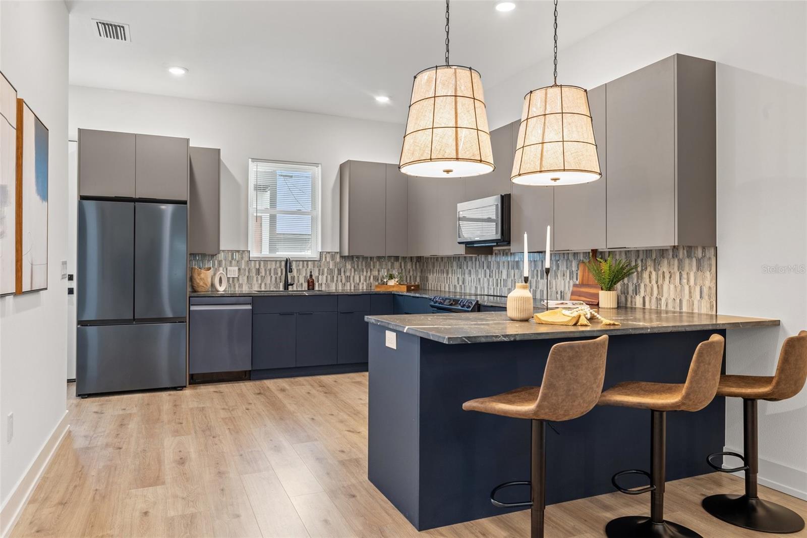 O vendedor de US $ 20.000 para a concessão do comprador para quem fecha em 31/12/2024, mais US $ 0 para qualquer comprador afetado pela tempestade ao usar vendedores preferidos pelo credor. Aproveite esta rara oportunidade de possuir uma nova casa de construção de blocos sólidos, sem taxas de HOA, uma casa de hóspedes isolada, tetos altos, uma garagem privada de grandes dimensões e opções de produção de renda, tudo em um local privilegiado. Esta residência luxuosa apresenta portas e janelas de impacto com classificação de furacões, acabamentos elegantes e a segurança da garantia de um construtor em uma zona não de inundação, garantindo conforto e economia. Esta também é a última unidade de canto que oferece mais privacidade - então aja rapidamente! Localizado no vibrante Grand Central District de São Petersburgo, FL, este sólido bloqueio de bloqueio de dois níveis simboliza a vida moderna. A casa principal inclui dois quartos privados e dois banheiros e meio, equilibrando a privacidade e a funcionalidade. O primeiro nível mostra a cozinha de um chef de estilo europeu contemporâneo com aparelhos de Samsung sob medida Samsung, bancadas de quartzo e amplo armazenamento. A iluminação ambiente e os equipamentos elegantes fluem perfeitamente para as áreas de jantar e de estar, perfeitas para entretenimento. A luz natural enche o espaço aberto, que possui uma barra de café da manhã para refeições casuais. A casa também é pré-conectada e pronta para as necessidades de tecnologia de hoje. No andar de cima, o quarto principal inclui um closet totalmente acabado, uma parede elegante de características e um impressionante banheiro privativo do chão ao teto com detalhes em forma de spa. Um segundo quarto espaçoso com banheiro privativo e uma lavanderia em tamanho real com amplo armazenamento completa o andar de cima. Entre no pátio Xeriscape de baixa manutenção, cercado por uma nova cerca e parede de vinil, criando um retiro sereno perfeito para churrascos e reuniões. A garagem destacada de um carro grande oferece estacionamento seguro, uma saída de 220V para carregamento de EV e um piso epóxi durável. Acesso ao beco e estacionamento extra para a rua, chegando e vindo facilmente. O destaque da propriedade é a unidade de habitação acessória acima da garagem, oferecendo os luxos de um quarto de hotel moderno de 5 estrelas. Ideal para o fluxo de caixa produtor de renda ou uso como casa de hóspedes, escritório em casa, espaço para exercícios ou retiro privado. A poucos passos da sua porta da frente, explore a mistura eclética de bistrôs, bares, restaurantes e cafeterias da Grand Central District da Grand District. Desfrute de atrações próximas como Rays Games, St. Pete Beach e Downtown St. Pete. Alto e seco, não é necessário seguro contra inundações.