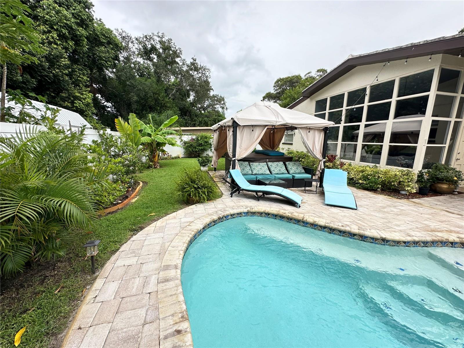 Bem -vindo à sua nova casa na comunidade Pasadena Golf Club Estates! Esta residência impressionante exala charme e convida o relaxamento a partir do momento em que você chega. Com tetos abobadados e uma extensa planta baixa e aberta, a luz natural enche todos os cantos desta bela casa. Recentemente atualizado com pisos de ladrilhos, oferece três quartos espaçosos, além de um quarto de bônus perfeito para um escritório ou quarto adicional, juntamente com três banheiros totalmente atualizados, cada um suíte. A cozinha é uma delícia de chef, com armários de carvalho renovados, bancadas em granito, amplo espaço de trabalho e uma compacta conveniente separada. Da janela da cozinha, desfrute de vistas serenas da área da piscina. As salas de estar e de jantar são generosamente dimensionadas com pisos de ladrilhos, e a sala oferece janelas magníficas com vista para o quintal cercado. Aqui, você encontrará uma piscina de água salgada aquecida e um spa separado aninhado sob um mirante, criando um oásis privado. Esta casa foi projetada para conforto e conveniência com uma grande lavanderia, armários walk-in (incluindo armários espaçosos de cedro) e dois sistemas HVAC mais recentes. A segurança é garantida com um sistema dedicado e o sistema de irrigação é alimentado por um profundo bem equipado com uma bomba manual. O telhado de ladrilhos complementa a estética da casa, enquanto o meticulosamente o pátio paisagístico e o oásis tropical no quintal cercado fornecem o retiro perfeito. Localizado na 6529 Renaldo Way para o sul, esta casa oferece proximidade às melhores praias da Flórida, o Tampa Bay Rays Stadium, o centro de St. Pete, I275, Aeroporto Internacional de Tampa, excelentes escolas, restaurantes e locais de culto. Não perca a oportunidade de tornar a sua residência requintada a sua - shedule sua exibição hoje!