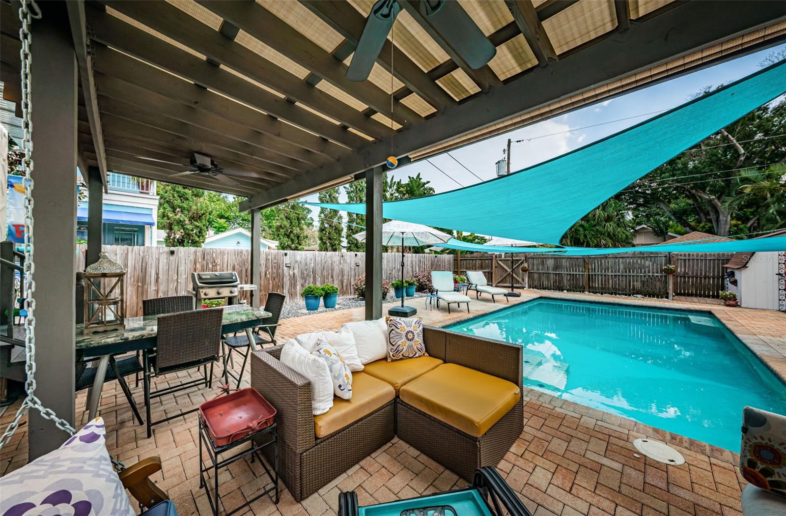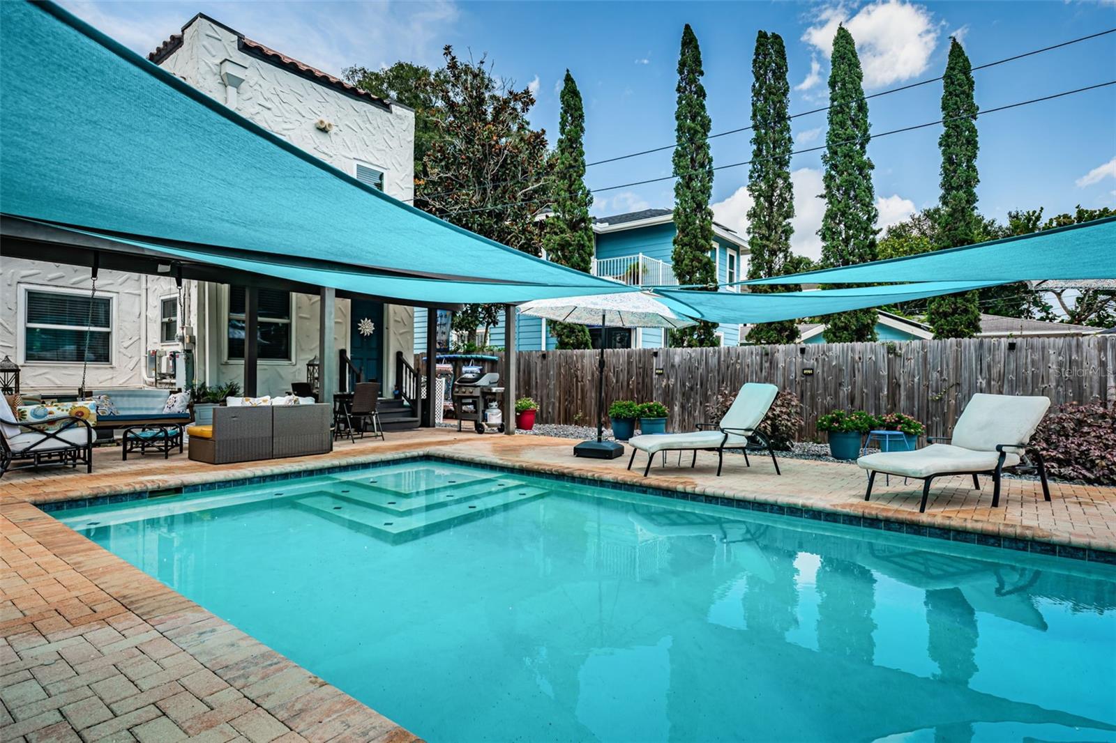 Lar de estilo Mediterrâneo impressionante em Historic Kenwood! Esta propriedade impecável mostra orgulho de propriedade. 3 quartos e 2 banheiros e meio. Você ficará encantado com o quão leve e brilhante é. A casa é atualizada, fica em um lote grande e possui uma piscina salina com pérgola no estilo resort. O espaço ao ar livre pensou bem espaços de entretenimento e com baixas áreas de manutenção com camas de jardinagem elevadas. Você apreciará as grandes áreas de estar e jantar, mantendo os detalhes arquitetônicos do período. Há também uma sala de bônus na frente da casa, perfeita para uma biblioteca, área de estar ou qualquer outra coisa que você possa sonhar. O chef da família vai adorar a grande cozinha com balcões de granito e utensílios de aço inoxidável. Uma sala de lama e uma área de lavanderia estão fora da cozinha. As escadas originais de madeira leva você até os três quartos e o grande quarto principal possui seu próprio private privado. A casa também inclui painéis solares (pagos integralmente com uma garantia transferível de 30 anos). A garantia inclui uma remoção única e colocada de volta no lugar quando um novo telhado precisa ser colocado. Água quente sem tanque em gás natural, sistema de irrigação, janelas de vidro de impacto e não está em uma zona de inundação! A casa também possui um título de cupim transferível. Dois sistemas A/C, ambos aproximadamente 10 anos. A idade do telhado é de 12 anos. Painel elétrico mais recente do 200amp Eaton. Adicionado o estacionamento do beco para até 3 carros. Localizado centralmente, esta casa fica perto de próspera no centro de São Petersburgo e apenas um salto no i275 e uma rápida viagem até o aeroporto de Tampa. O histórico Kenwood é uma comunidade espetacular que o torna uma das áreas mais desejáveis de St Pete. 15 minutos de carro até as praias. Venha ver o que torna este especial!