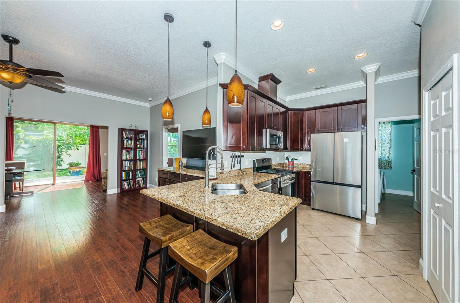 Santuário ideal da Flórida localizado perto de lojas, restaurantes, belos parques e praias no bairro Jungle Terrace. Esta espaçosa casa térrea construída em 2015 oferece tetos altos (aproximadamente 10 pés) decorados com sancas, juntamente com piso de madeira e azulejos (sem carpete). A construção com eficiência energética proporciona um ambiente confortável em todas as estações, sem sobrecarregar o seu bolso. Existem 4 quartos em planta dividida, com a suíte principal oferecendo um closet organizado e banheiro privativo dedicado para privacidade ideal. O escritório separado e o escritório em casa são perfeitos para trabalhar em casa/ensinar em casa ou ambos! A cozinha está equipada com armários altos e volumosos e despensa, bancadas em granito e eletrodomésticos em aço inoxidável, incluindo fogão de convecção a gás natural e frigorífico com porta francesa com congelador inferior. A grande sala centralizada é perfeita para confraternizações e reuniões de férias. Uma lavanderia interna dedicada é equipada com pia funda e armários. O aquecedor de água a gás natural sem tanque oferece água quente contínua. A temporada de furacões é coberta, pois esta casa é construída em blocos com telhado de quatro águas, tem um gerador Generac de 22KW para toda a casa com chave de transferência automática, venezianas de aço para todas as janelas e portas e uma porta de garagem protegida contra tempestades. NÃO é necessário seguro contra inundações ou vento para esta propriedade! Esta propriedade possui árvores alimentícias, como abacate Luna, limão, moringa e cactos floridos. Dentro do belo quintal cercado, você pode encontrar alecrim, babosa, jasmim e bambu Buddha Belly. Esta casa está pronta para morar! Você está pronto para sua nova casa?!? Agende um tour hoje mesmo!