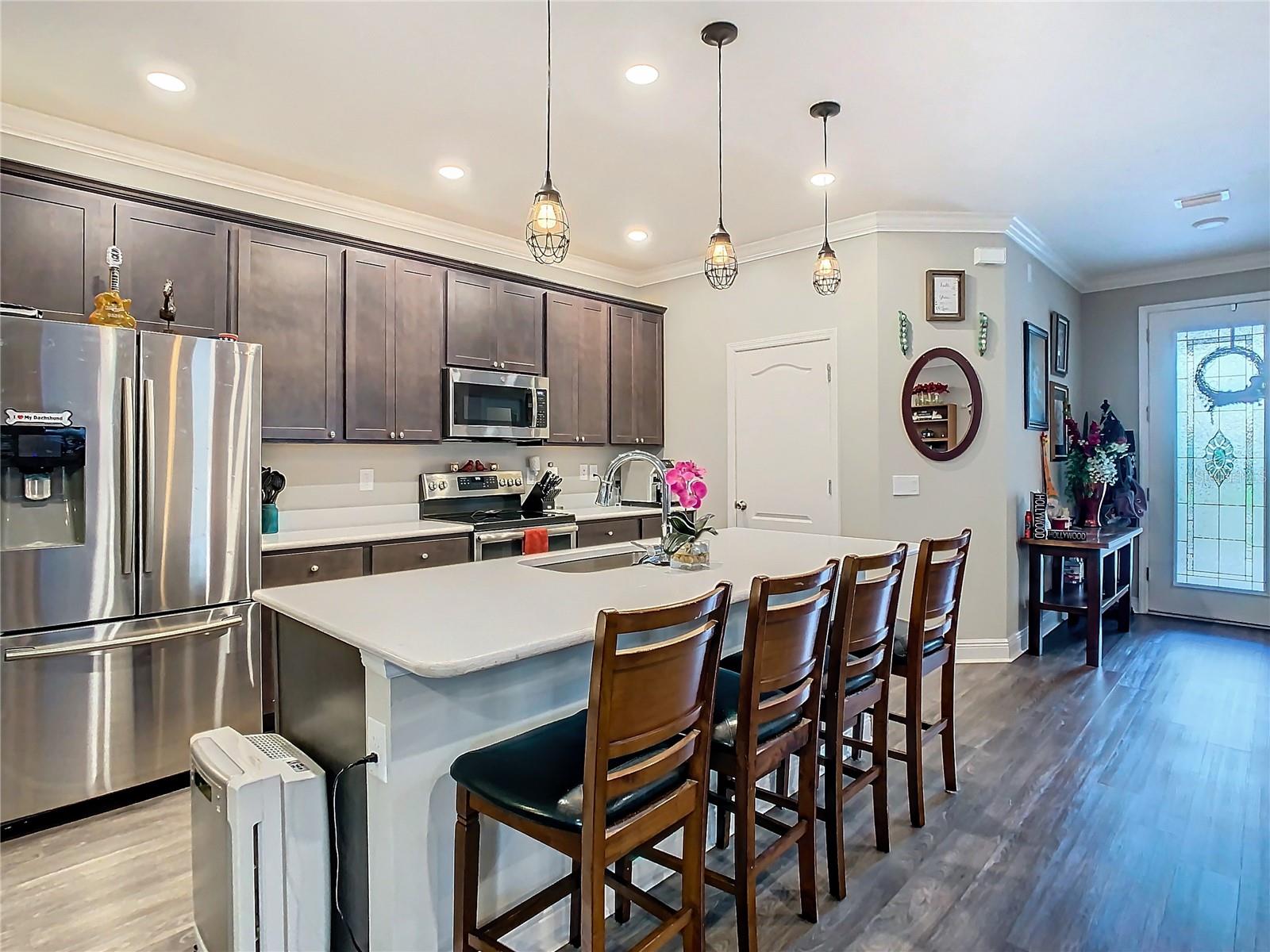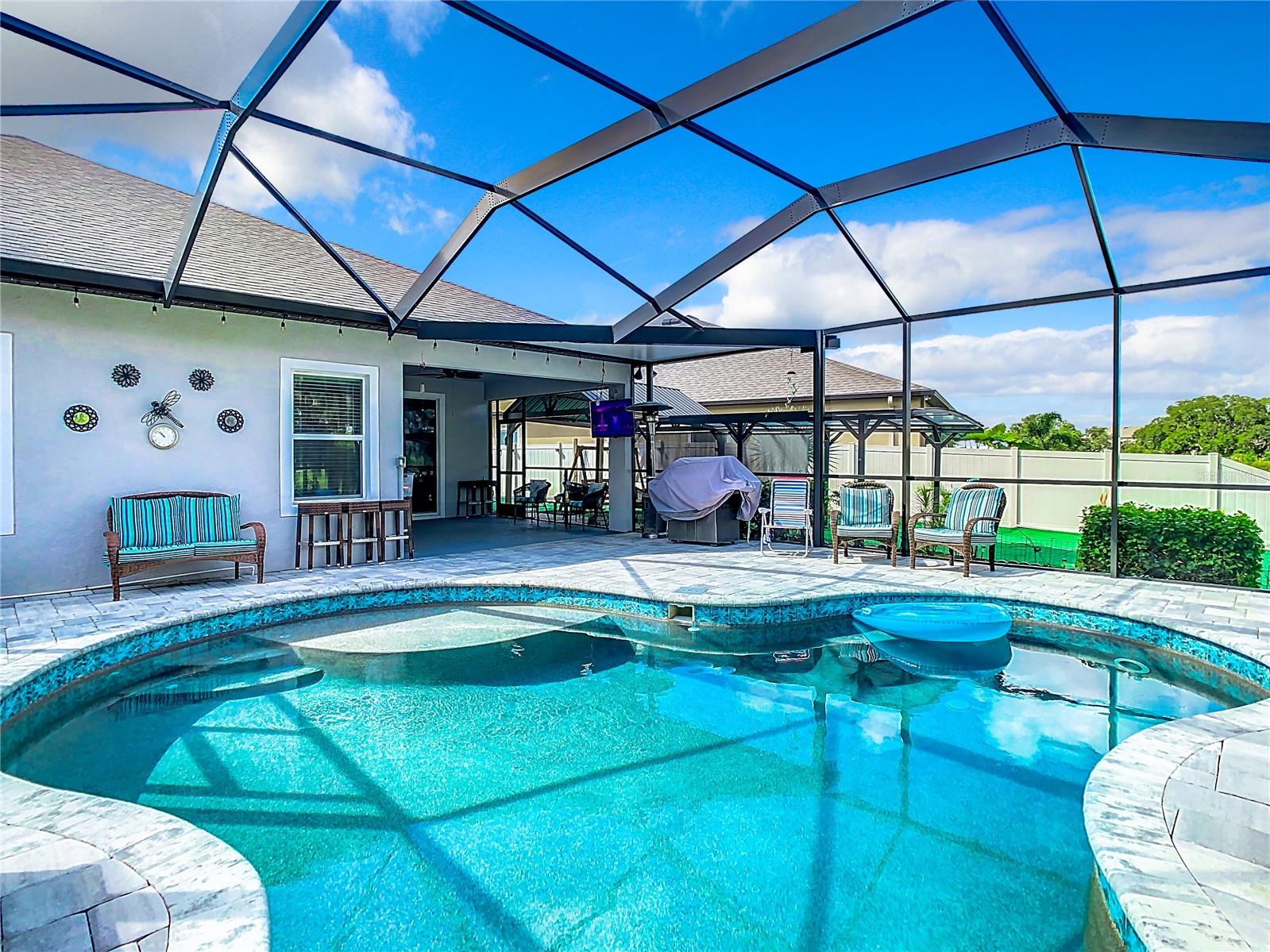 Bem-vindo à sua casa privada com piscina de água salgada na comunidade mais vendida de Mirada! Esta planta Melody de um andar da Maronda Homes pode ser sua. Entre para ser recebido pela planta aberta e pelos tetos altos. A casa tem 2.082 pés quadrados com 3 quartos, 2 banheiros e um grande escritório/sala flexível. A garagem para 3 carros possui piso revestido em epóxi e estação de carregamento eletrônico para veículos. Aproveite a comodidade dos recursos do Smart Home, podendo controlar aspectos com seu telefone ou tablet. A piscina... a vista... é imperdível! Oportunidade rara de possuir uma casa com piscina e quintal privativo. Tem animais de estimação? O pátio lateral possui uma área de corrida/recreação para cães com grama. Os painéis solares incluídos proporcionam uma grande economia na sua conta de luz! Sistema de irrigação de quintal completo. A comunidade aceita carrinhos de golfe e oferece o uso da espetacular lagoa artificial de 15 acres, trilhas com vários lagos, parque para cães e playground. A taxa HOA inclui internet ULTRAFI e cabo da Spectrum.