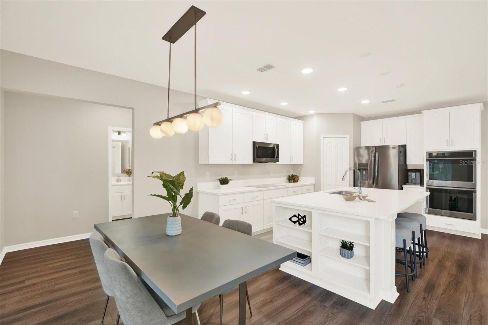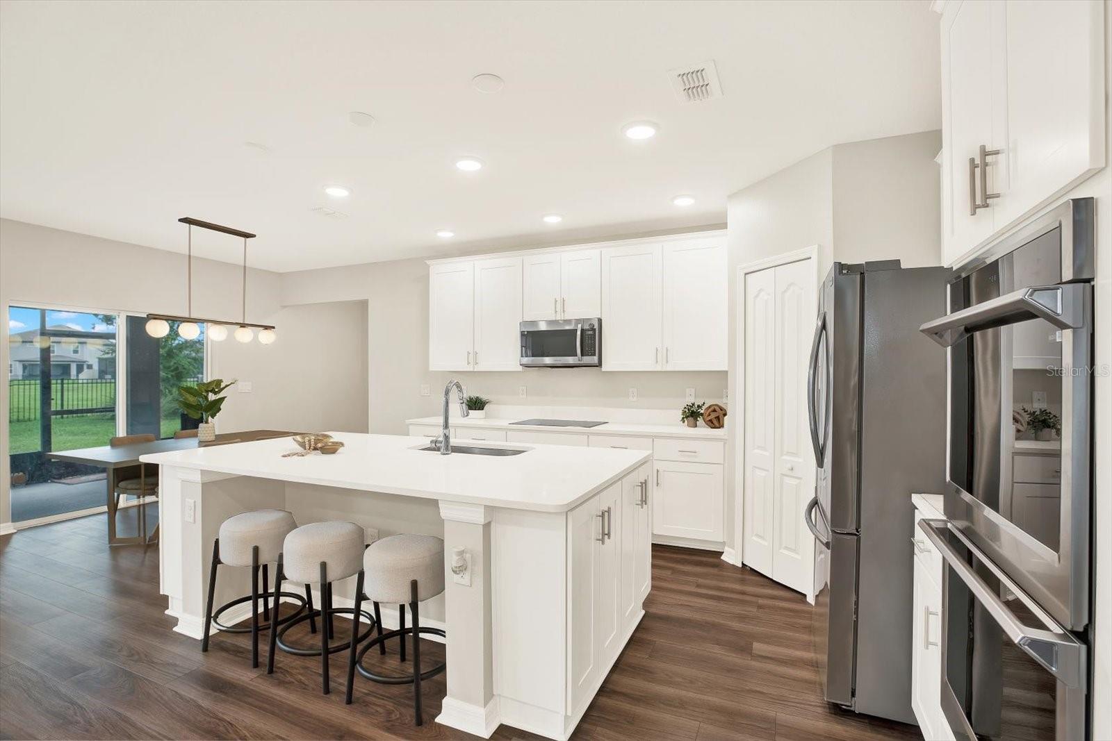 Modelo como casa com enorme melhoria de preços! Impressionante casa de 5 quartos em Mirada! Construído em 2023, esta excepcional casa de 5 quartos, 3,5 banheiros e dois andares, com uma garagem de 3 carros, oferece luxo moderno, um piso plano aberto e um local imbatível na comunidade de lagoa Mirada, procurada. Você pode viver onde todos os outros férias. Entre e seja recebido pelo aconchegante jantar formal à sua esquerda, e um layout de conceito aberto no corredor, com um fluxo contínuo entre a sala de estar, a área de jantar e a cozinha gourmet. O piso de vinil em tons neutros aumenta o espaço iluminado pelo sol, enquanto a cozinha gourmet é o sonho de um chef com bancadas elegantes de quartzo, uma ilha central gigante, fornos de convecção dupla, aparelhos de aço inoxidável, uma despensa e amplo armazenamento. O primeiro andar também possui uma suíte de convidado particular com um banho completo, perfeito para visitantes que buscam conforto e tranquilidade. Uma sala flexível versátil pode ser usada como escritório em casa, academia ou sala de jogos, aumentando a funcionalidade da casa. No andar de cima, o espaçoso loft é perfeito para um home theater, sala de jogos ou uma segunda lounge aconchegante. A suíte primária exala luxo com teto de bandeja, um grande armário e um banheiro privativo com uma vaidade dupla, banheira de imersão e chuveiro. A lavanderia está convenientemente localizada no segundo andar, junto com três quartos adicionais e mais um banheiro completo. Saia de uma varanda traseira e uma alpendre e uma totalmente cercada no quintal, oferecendo um oásis privado sem vizinhos traseiros. Localizada em uma das comunidades mais ricas em comodidades da Flórida, Mirada oferece uma lagoa cristalina de 15 acres com praias de areia, caiaques, pranchas de paddle, uma pista de obstáculos e muito mais. Localizado a poucos minutos da I-75 e do centro de San Antonio, esta casa realmente tem tudo. Não perca a chance de possuir esta casa deslumbrante em Mirada! Programe sua turnê privada hoje.