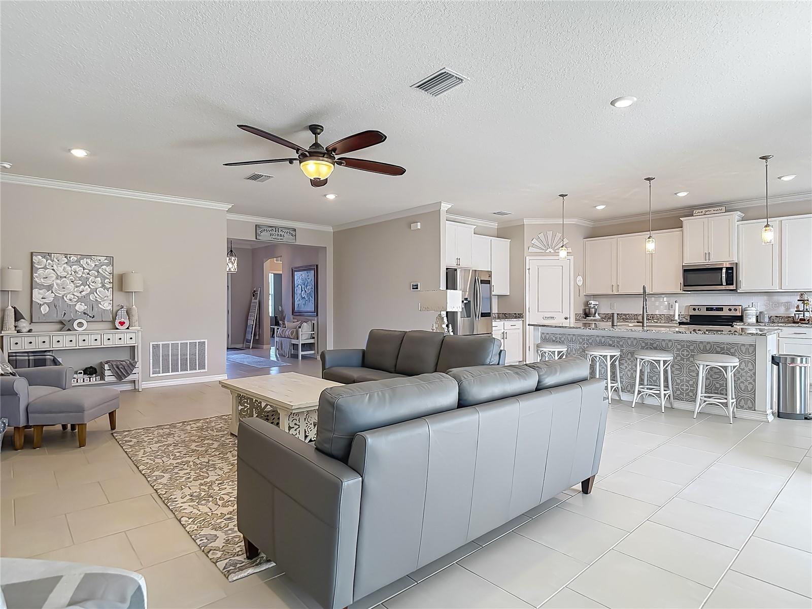 Bem-vindo a este lindamente mantido 2020 D.R. O modelo Horton Hawthorne, localizado na comunidade de Crystal Lagoon, altamente procurada-a maior lagoa artificial da Flórida e um estilo de vida no estilo resort como nenhum outro. Esta espaçosa casa de garagem de 4 quartos, 3 banheiros e 3 carros oferece mais de 2.500 pés quadrados de espaço de vida cuidadosamente projetado em um lote de 0,18 acres, situado dentro de uma zona não de inundação e cercado por paisagismo bem mantido. No interior, você é recebido por tetos de 9'4 ”, piso elegante de ladrilhos por toda parte e uma planta de conceito aberto cheio de luz natural. O coração da casa é a deslumbrante cozinha do chef, com armários de madeira maciça de 42” com molduras de coroa, bancadas de granito, um backsplash personalizado, uma ilha central maciça com uma barra de café da manhã e um passeio de passeio. Aparelhos elegantes de aço inoxidável fornecem estilo e desempenho, enquanto a cozinha flui perfeitamente para a espaçosa grande sala e área de jantar-ideal para entretenimento ou relaxamento em casa. A suíte primária é um retiro privado, com amplo espaço para um conjunto de quartos em tamanho king, armários duplos e um banheira de suíte inspirada no spa, que inclui uma vaidade de granito com pias duplas, uma banheira, um chuveiro e um armário de água privada. O quarto 2 apresenta seu próprio banheiro privativo e closet, perfeito para hóspedes ou vida multigeracional. Os quartos 3 e 4 são generosamente dimensionados com armários grandes e compartilham um banheiro completo nas proximidades. A lavanderia oferece espaço para uma lavadora e secadora em tamanho real, armários de armazenamento embutidos e um closet, ideal para armazenamento sazonal ou transbordante. Passe por portas de vidro deslizantes de grandes dimensões até um pátio coberto com vista para um quintal totalmente cercado, perfeito para apreciar o estilo de vida ao ar livre da Flórida o ano todo. A garagem de três carros de grandes dimensões inclui armazenamento e espaço embutidos para o seu carrinho de golfe, caiaque ou outro equipamento recreativo. Destaques adicionais incluem um sistema doméstico inteligente integrado e Internet de alta velocidade ultrafi, mantendo você conectado e no controle de qualquer lugar. Localizado a poucos minutos da I-75, Wesley Chapel e uma variedade de opções de compras, refeições e entretenimento, esta casa oferece a melhor mistura de conveniência, conforto e vida comunitária. E com a lagoa Mirada e suas comodidades de classe mundial a apenas uma viagem de carrinho de golfe, todos os dias aqui parecem férias. Por que esperar por um construtor? Esta é a sua oportunidade pronta para viver o estilo de vida da lagoa hoje.
