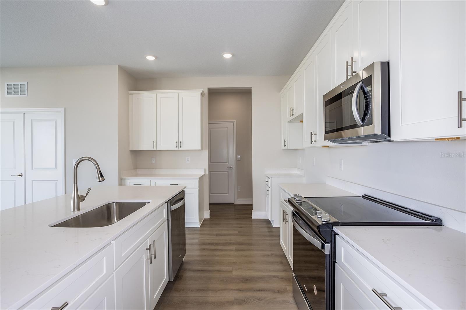 Em construção. Descubra a Anna Maria, uma casa dinâmica de dois andares, projetada para uma vida versátil e entretenimento sem esforço. Apresentando 5 quartos espaçosos, 3 banheiros completos, espaço flexível, grande sala de recreação e uma garagem de 2 carros, esta casa foi projetada para atender a todas as suas necessidades. The kitchen, complete with polished quartz countertops, stainless-steel appliances, 42” upper cabinets and luxury vinyl plank flooring overlooks the dining area and opens to the lanai through sliding glass doors—ideal for indoor-outdoor entertaining. The smart thermostat with voice control makes it easy to adjust the temperature for energy efficiency. The first floor includes a flex room, a full bedroom, and a bathroom, perfect for guests or a home office. No andar de cima, você encontrará uma sala de recreação de grandes dimensões, três quartos secundários e uma luxuosa suíte do proprietário. Adiciona charme e elegância à estética geral da casa. Encontre o equilíbrio perfeito de paisagens serenas e comodidades modernas em Mirada. Os proprietários da Mirada desfrutam do estilo de vida da praia no condado de Pasco, com uma lagoa artificial de 15 acres para natação, caiaque, embarcação e relaxamento. Caminhos de carrinho de golfe e calçadas espaçosas convidam os moradores a explorar oportunidades de recreação ao ar livre, incluindo parques, playgrounds e trilhas naturais. Fique perto do que é importante em Mirada, idealmente localizado a 30 minutos do centro de Tampa e a poucos minutos do Publix. Desde ação de alta velocidade-incluindo o super-rápido Ultrafi Wifi-a passear ou flutuar, na Mirada, você pode viver a vida ao máximo. As imagens mostradas são apenas para fins ilustrativos e podem diferir da casa real. Data de conclusão sujeita a alteração.