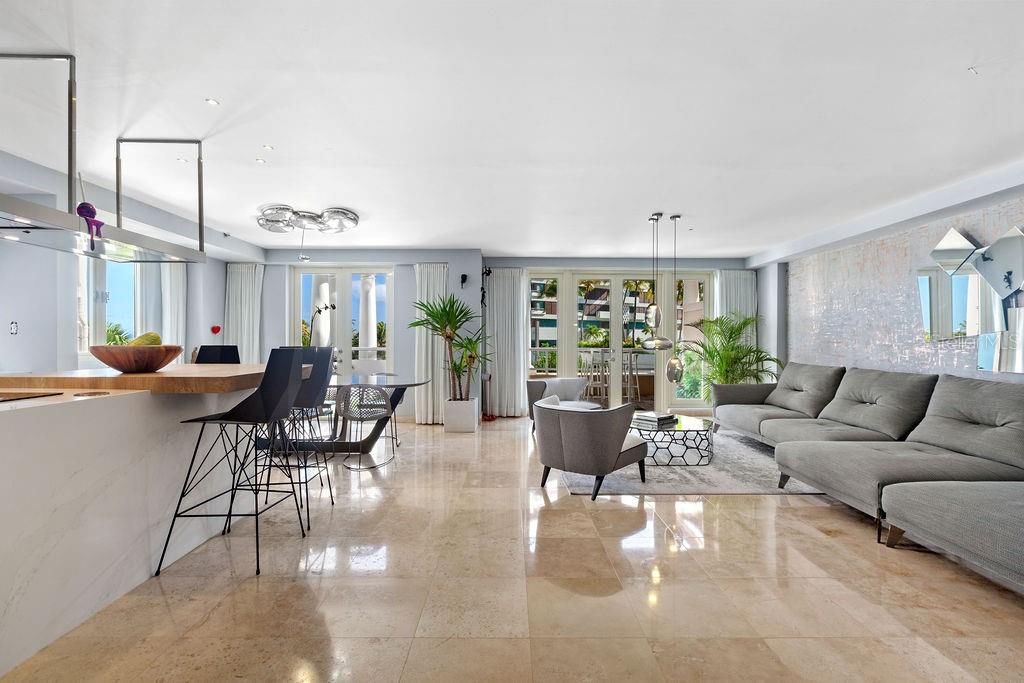 Apenas listado! Apartamento localizado na desejável Avenida Ashford, no exclusivo Condomínio Sancti Spiritus Park. Ao entrar nesta espetacular residência, você será cativado pelo amplo terraço com vista para o Parque Ventana al Mar e para o oceano. Esta propriedade única em espaço aberto oferece dois amplos quartos conversíveis em três, 3,5 banheiros com acabamento em mármore travertino com acessórios de última geração, um luxuoso closet e portas de design italiano. A elegante e espaçosa cozinha italiana tem bancada de quartzo e está equipada com eletrodomésticos de última geração e adega. A residência foi totalmente remodelada do chão ao teto com linhas limpas, espaços abertos, piso de mármore, iluminação moderna e sistema de música. Foi primorosamente projetado e decorado por um renomado designer de interiores. O terraço aberto é o cenário perfeito para relaxar e se divertir enquanto aprecia a vista para o mar. As comodidades adicionais incluem um gerador de backup completo, armazenamento, reservatório de água e segurança. Aproveite a vida em Condado, a poucos passos da praia, restaurantes finos, lojas, spa, escolas, renomados hotéis Vanderbilt e La Concha, e a 10 minutos de carro do aeroporto.