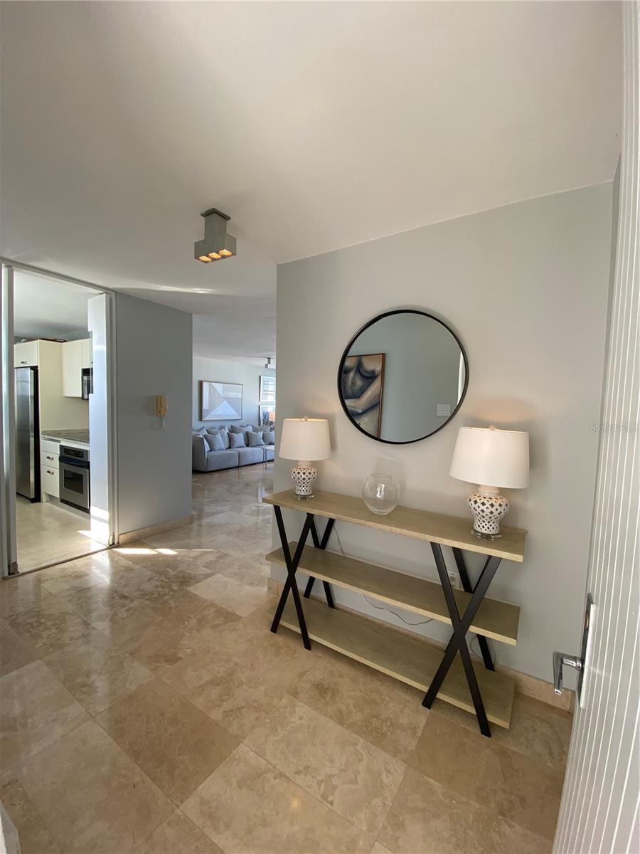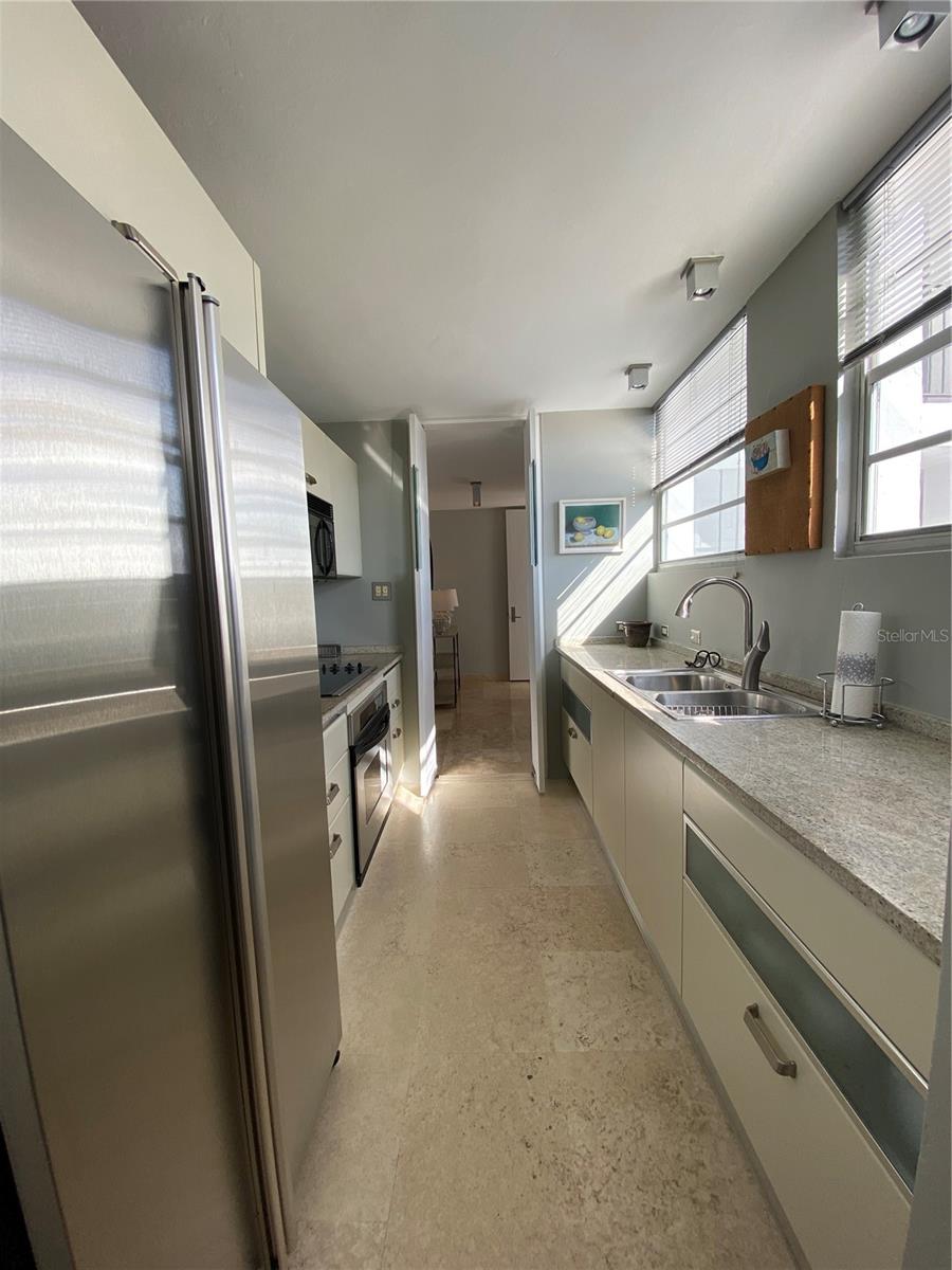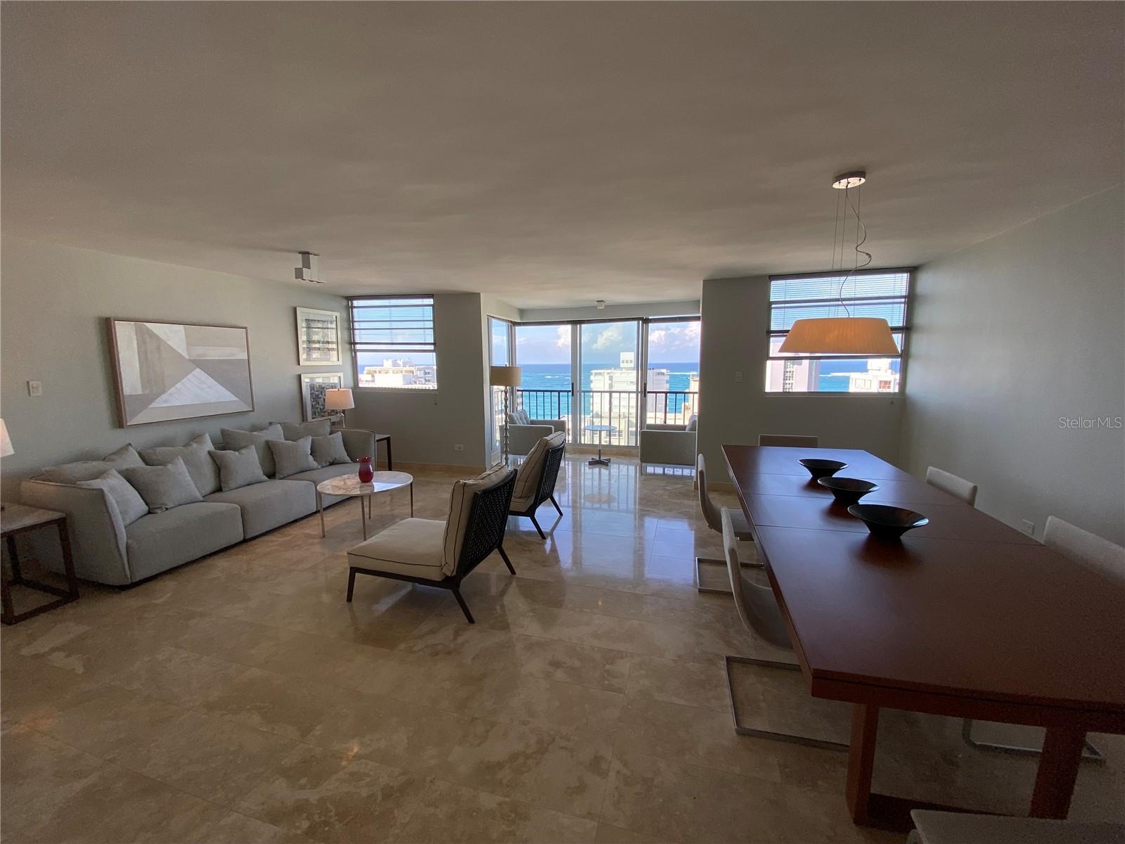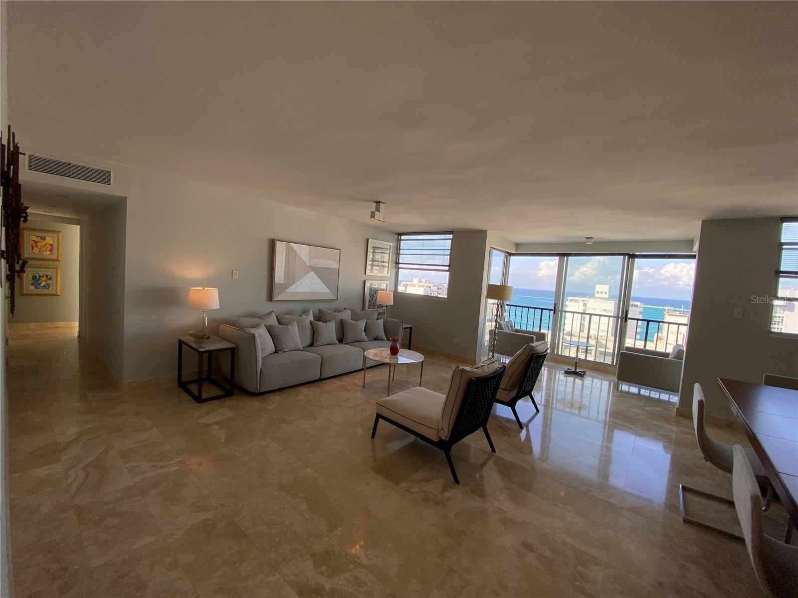 Experimente o luxo que vive neste apartamento remodelado no Condado Real 1700, localizado na McLeary Avenue, na esquina da Kings Court Street, no coração de Ocean Park, San Juan. Com 1.336 pés quadrados de design requintado, este apartamento oferece janelas do chão ao teto que banham os interiores com luz natural enquanto enquadrava a vista para o oceano panorâmico de tirar o fôlego. Apresentando dois quartos espaçosos, incluindo uma suíte master com um closet e partições embutidas, e dois banheiros elegantemente nomeados, esta propriedade proibida exala sofisticação. A cozinha de Scavolini personalizada, criada na Itália, inclui bancadas de mármore e backsplash, além de eletrodomésticos de primeira linha, como uma fogão de cerâmica, refrigerador de contra-profundidade e lavadora/secadora GE. O interior elegante do apartamento inclui pisos de mármore travertino, portas sólidas de mogno com maçanetas de cromo polido Omnia, iluminação embutida com interruptores diminuídos e ar condicionado central. Janelas de vidro do chão ao teto e portas deslizantes resistentes ao furacão na sala permitem que você saboreie a vista ininterrupta no oceano e o pôr do sol deslumbrante. As comodidades de construção incluem uma piscina, segurança 24 horas, internet de fibra óptica e um gerador de energia de capacidade total. Idealmente localizado, você pode caminhar até as melhores praias de Condado, brincar de esportes de praia e desfrutar de refeições requintadas, compras e entretenimento vibrante. Esta é a oportunidade perfeita para adotar o melhor de luxo e conveniência na localização mais procurada de San Juan.