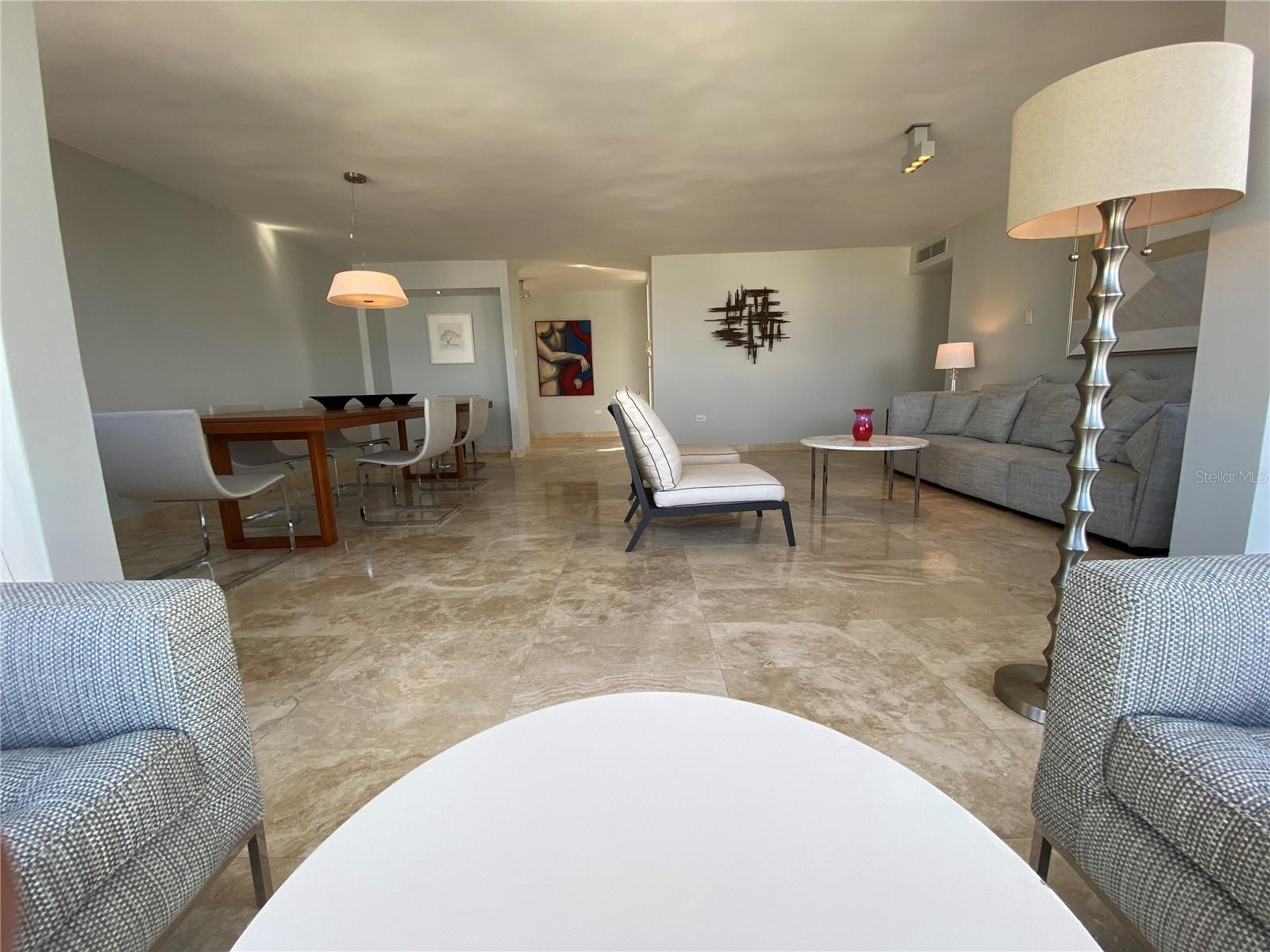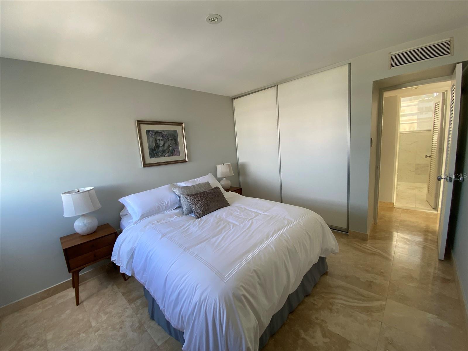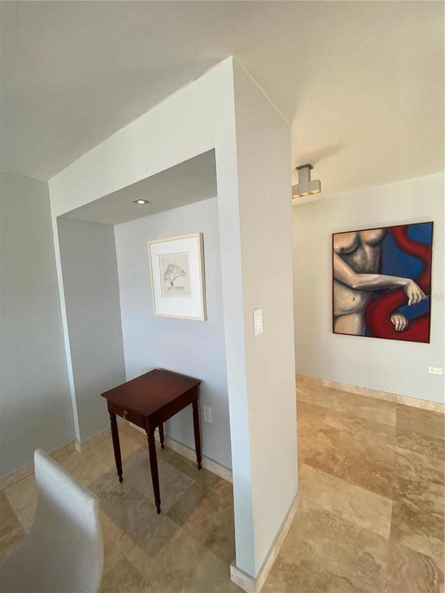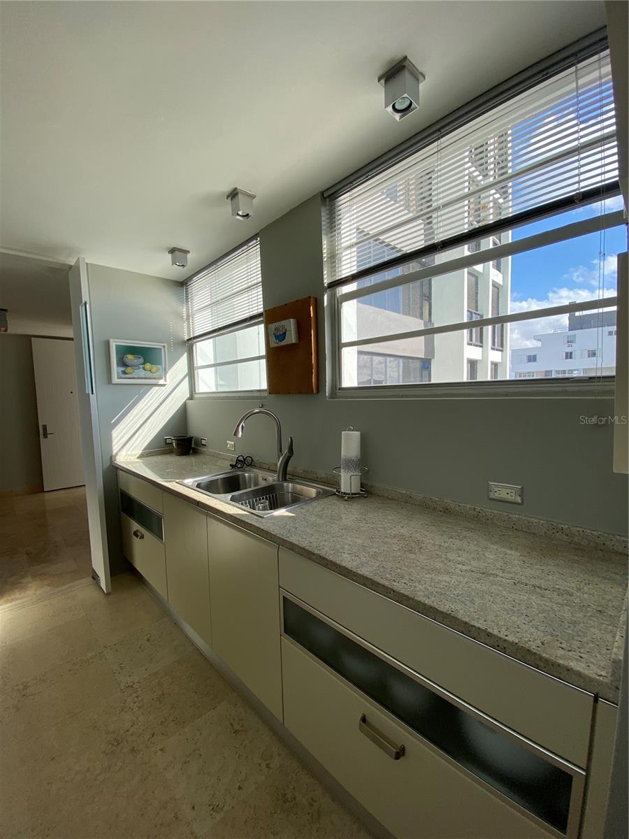 Experimente o luxo que vive neste apartamento remodelado no Condado Real 1700, localizado na McLeary Avenue, na esquina da Kings Court Street, no coração de Ocean Park, San Juan. Com 1.336 pés quadrados de design requintado, este apartamento oferece janelas do chão ao teto que banham os interiores com luz natural enquanto enquadrava a vista para o oceano panorâmico de tirar o fôlego. Apresentando dois quartos espaçosos, incluindo uma suíte master com um closet e partições embutidas, e dois banheiros elegantemente nomeados, esta propriedade proibida exala sofisticação. A cozinha de Scavolini personalizada, criada na Itália, inclui bancadas de mármore e backsplash, além de eletrodomésticos de primeira linha, como uma fogão de cerâmica, refrigerador de contra-profundidade e lavadora/secadora GE. O interior elegante do apartamento inclui pisos de mármore travertino, portas sólidas de mogno com maçanetas de cromo polido Omnia, iluminação embutida com interruptores diminuídos e ar condicionado central. Janelas de vidro do chão ao teto e portas deslizantes resistentes ao furacão na sala permitem que você saboreie a vista ininterrupta no oceano e o pôr do sol deslumbrante. As comodidades de construção incluem uma piscina, segurança 24 horas, internet de fibra óptica e um gerador de energia de capacidade total. Idealmente localizado, você pode caminhar até as melhores praias de Condado, brincar de esportes de praia e desfrutar de refeições requintadas, compras e entretenimento vibrante. Esta é a oportunidade perfeita para adotar o melhor de luxo e conveniência na localização mais procurada de San Juan.