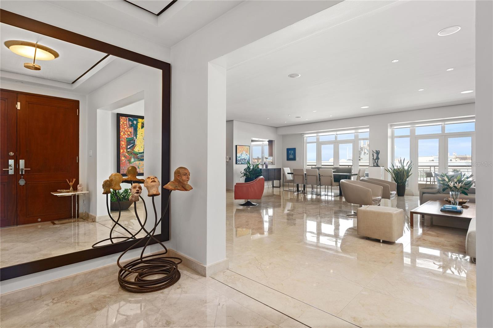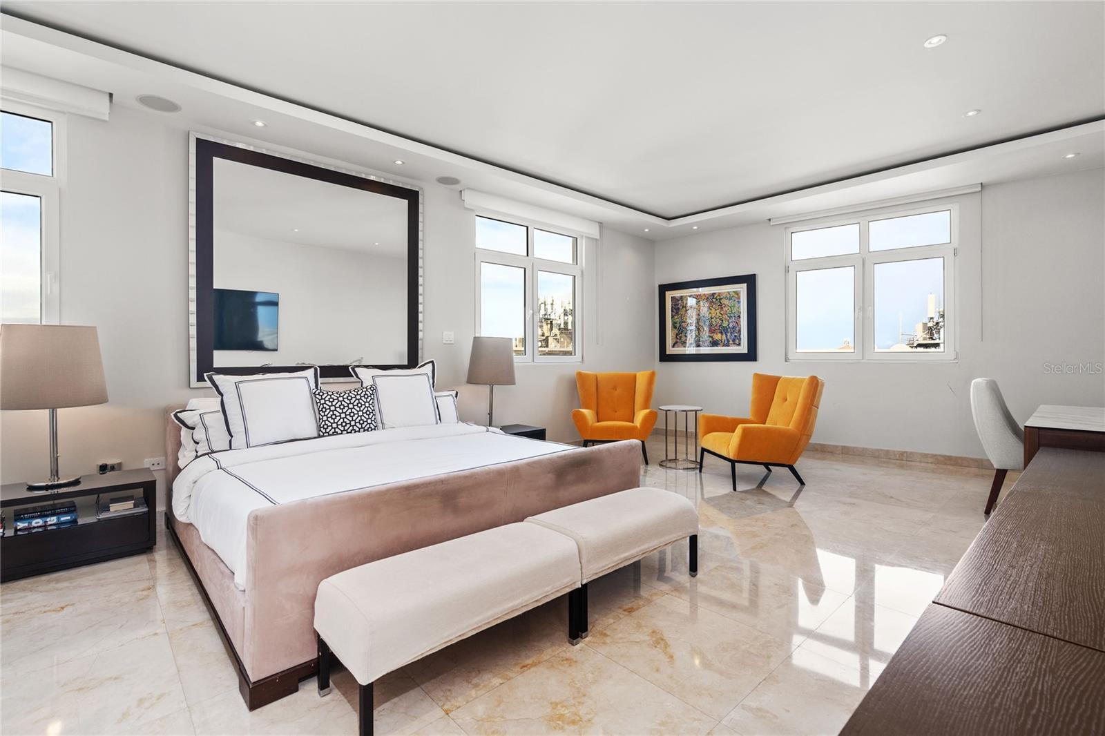 GRANDE, ELEGANTE, LUMINOSA... COBERTURA PREMIER NO HARBOR PLAZA. Elegantemente posicionada no auge do Harbour Plaza, esta resplandecente Penthouse de esquina garante uma vida de luxo incomparável, sendo uma das apenas cinco Penthouses de elite dentro do refinado enclave de apenas 35 residências. As vistas panorâmicas do porto da baía de San Juan e da histórica paisagem urbana da antiga San Juan servem como uma obra-prima viva, pintando um quadro em constante mudança que transcende a vida comum. A grandiosidade dos tetos altos envolve você em um ar de sofisticação. Pisos de mármore em tons de Siena de alta qualidade guiam você pelo hall de entrada em direção à grande sala de estar, um espaço meticulosamente curado onde cada detalhe foi selecionado com gosto exigente. Com estilo e decoração impecáveis, combina perfeitamente a estética moderna com a elegância atemporal, incorporando a essência da vida luxuosa. Esta exclusiva Penthouse de esquina possui uma magnífica exposição nordeste garantindo muita luz natural, banhando o interior com um brilho suave que complementa o luxuoso mobiliário. Quatro amplos lugares de estacionamento cobertos e uma cómoda arrecadação complementam a praticidade desta residência. Estrategicamente situado no bairro histórico de Old San Juan, cada passo fora deste paraíso leva à vibrante tapeçaria da cidade, onde a história e a modernidade dançam em perfeita harmonia. Com fácil acesso de entrada e saída, todas as comodidades e joias culturais estão à sua porta, tornando esta cobertura exclusiva uma sinfonia de exclusividade, elegância e indulgência ousada.