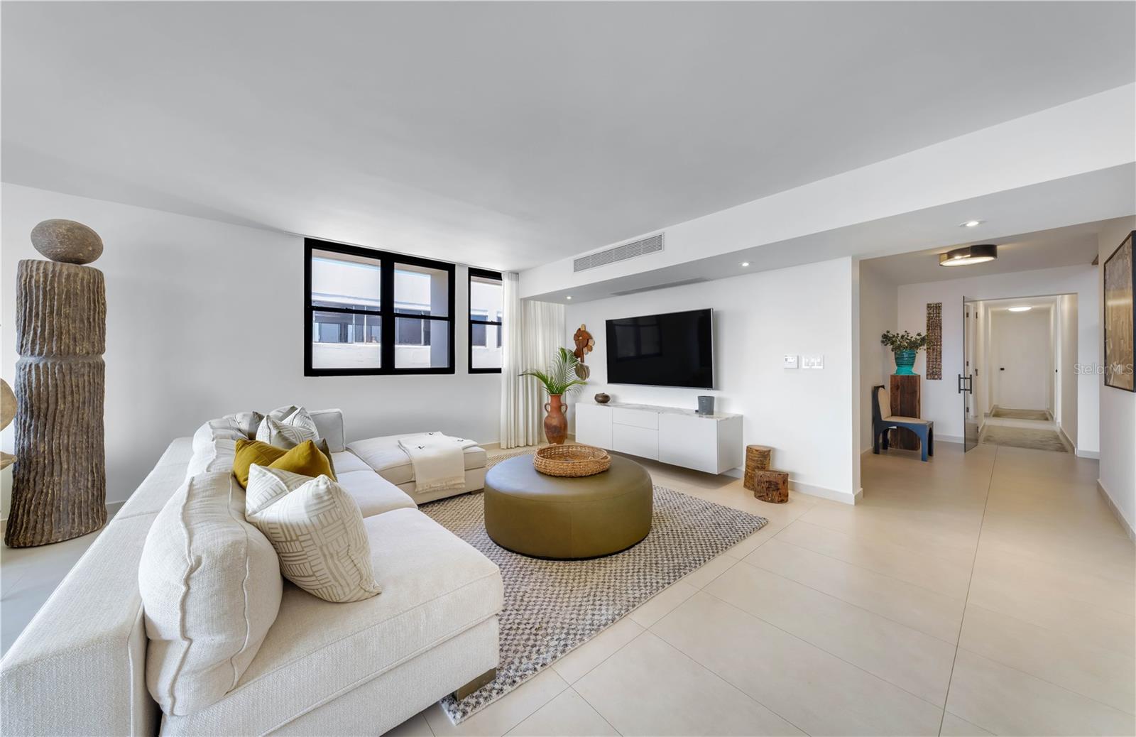 Sinopse da vida cosmopolita, esta cobertura requintada com acesso direto por elevador fica em frente ao parque, na tranquila e altamente cobiçada Avenida Magdalena. Abrangendo aprox. 2.658 pés quadrados internos com ar-condicionado e impressionantes 1.112 pés quadrados de terraço externo na cobertura com exposição ao norte do oceano, esta residência incorpora tudo o que um santuário urbano deveria ser em Condado Beach. Com 4 quartos, 3,5 banheiros e uma planta aberta, o nível principal integra perfeitamente as áreas de estar, jantar e cozinha, proporcionando um cenário ideal para reuniões íntimas, grande entretenimento e conveniência do dia a dia. Janelas amplas emolduram as vistas pitorescas da cidade e do parque, infundindo luz natural e calor nos espaços de convivência. Ao entrar na suíte principal, o mobiliário elegante e a iluminação ambiente criam uma atmosfera de sofisticação e tranquilidade. O banheiro privativo possui detalhes em pedra de veludo e acessórios em latão dourado, completando um refúgio íntimo para relaxar e descontrair em sua própria casa. Subindo ao segundo nível, você é recebido por um terraço deslumbrante que acena com vistas panorâmicas do oceano e do horizonte. Aprimorado por uma cozinha ao ar livre e belas áreas de sol e de jantar, este terraço simboliza a vida ao ar livre. 3 lugares de garagem, 2 dos quais cobertos, completam esta moradia duplex. O estilo de vida vibrante de CoBe aguarda a poucos minutos da sua porta, com uma variedade de restaurantes, praias de areia dourada e inúmeras atividades recreativas. Esta residência também beneficia da proximidade de conceituadas escolas, mercearias, farmácias e do Aeroporto Internacional. Delicie-se com a vida cosmopolita, onde a pulsação da cidade encontra a serenidade do lar. É necessário aviso prévio de 48 horas para mostrar o agendamento.