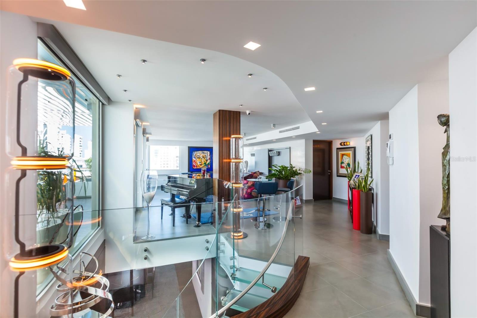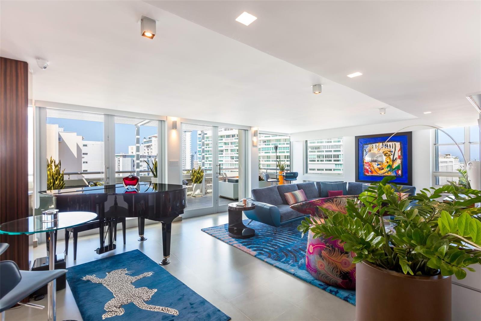 Bem-vindo a uma das coberturas mais extraordinárias do distrito de Condado-San Juan! This impressive two-level penthouse located on the 9th and 10th floors of the boutique condominium Luchetti 1403 in Condado, offering splendid dimensions and splendid footprint of approximately 3,803 square feet of gross area including an expansive 3,383 square feet of interior space a spectacular 420 square feet terrace on the second floor, offering stunning ocean views and sparkling city lights. Esta residência foi meticulosamente criada com acabamentos de primeira linha e detalhes personalizados do renomado designer de interiores Jorge Rosello. Sua experiência começa quando você chega a um hall de entrada moderno. No primeiro andar da residência, você tem a área de Dinagem e Cozinha com madeira Wenge. Seja você um mestre culinário ou tem seu chef pessoal, a cozinha de última geração de Snaidero com bancada e backsplash em "Porcelanico", incluindo aparelhos de ponta Sub Zero, Wolf, Gaggenau, Asko e Scotsman. Esta é uma residência em que você pode ter a experiência gastronômica mais íntima e memorável com entes queridos ou convidados especiais. Há também dois quartos privados com piso de mármore tazo polido. Uma réplica da surpreendente escada de vidro em espiral da Apple Store de Nova York o levará ao segundo andar, onde você tem a suíte principal com banheiro completo e armário de caminhada. Esta casa oferece uma experiência única para entreter os hóspedes mais exigentes com um bar, sala de entretenimento e terraço aberto.