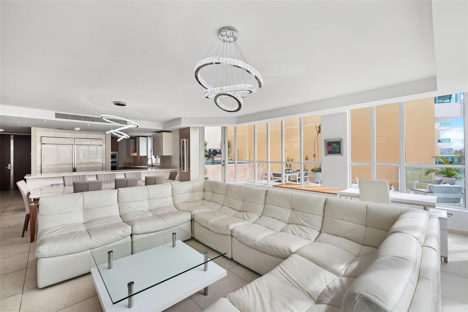 Entre em um mundo de luxo refinado neste paraíso do entretenimento situado no venerado condomínio Bahia Plaza. Esta casa única e totalmente mobiliada possui 2.896 SF de ABL com 2 quartos e 2,5 banheiros, bem como um pátio privativo de grandes dimensões com piscina aquecida com vista parcial para a lagoa. Ao entrar na casa, você é recebido por uma área de estar e jantar aberta, inundada de luz natural, desde janelas de vidro do chão ao teto, completas com persianas eletrônicas e recursos de blackout. A cozinha aberta e sofisticada do chef conta com eletrodomésticos GE Monogram, bancadas de quartzo branco, armários em dois tons e uma extensa ilha, tornando-a um local ideal para entretenimento. A ampla e luminosa suíte principal com dois closets e amplo banheiro também tem acesso a uma pitoresca varanda com vista para o Paseo Caribe e a Lagoa Condado. O segundo quarto foi habilmente projetado com banheiro privativo completo. Delicie-se com a brisa do mar enquanto saboreia a experiência exclusiva da única unidade com piscina privativa e uma vasta área externa. Relaxe em seu pátio pessoal do 908 SF, adornado com áreas de estar confortáveis projetadas para relaxar e receber hóspedes. O condomínio inclui um grande armário de arrumação e uma confortável lavandaria, bem como 3 lugares de estacionamento e um carrinho de golfe Lion Rover 2021. Localizado no prestigiado complexo Caribe Plaza, este apartamento oferece não apenas uma casa, mas um estilo de vida. O Bahia Plaza é uma torre residencial de serviço completo que oferece serviço de excelência com segurança 24 horas por dia, 7 dias por semana, concierge, gerador de energia total, academia de ginástica de última geração, lounge com mesas de bilhar e bar, além de um piscina com deck de bronzeamento com vista para a cidade. A uma curta distância da Velha San Juan, Centro de Convenções e Distrito T-Mobile, Hotéis, Restaurantes e Vida Noturna. Convenientemente localizado em frente ao El Nautico de San Juan, com uma marina para os amantes de barcos. A apenas 10 minutos do Aeroporto Internacional, a 2 minutos do Aeroporto de Isla Grande e de vários supermercados e hospitais a apenas 3 minutos de carro.
