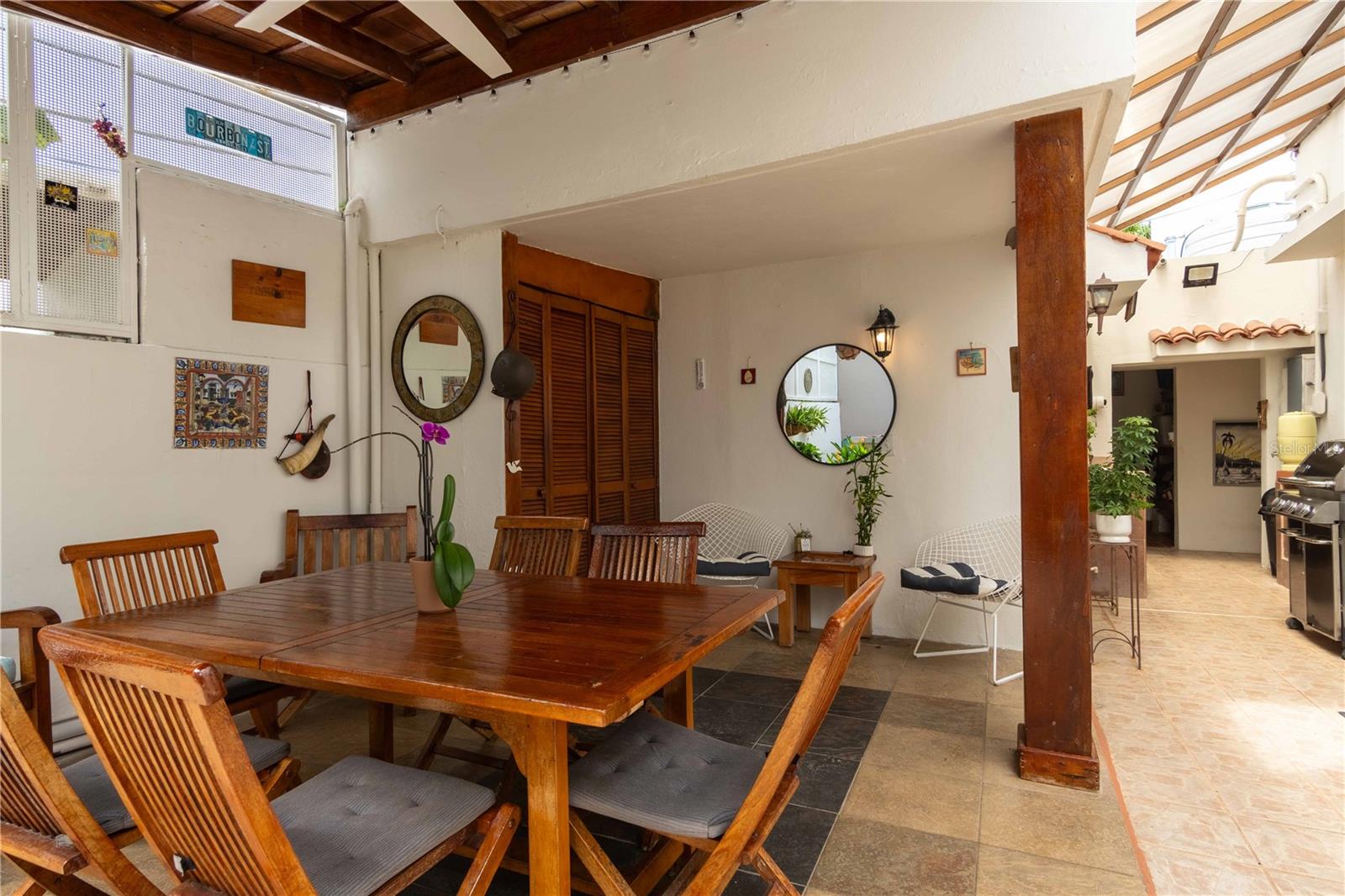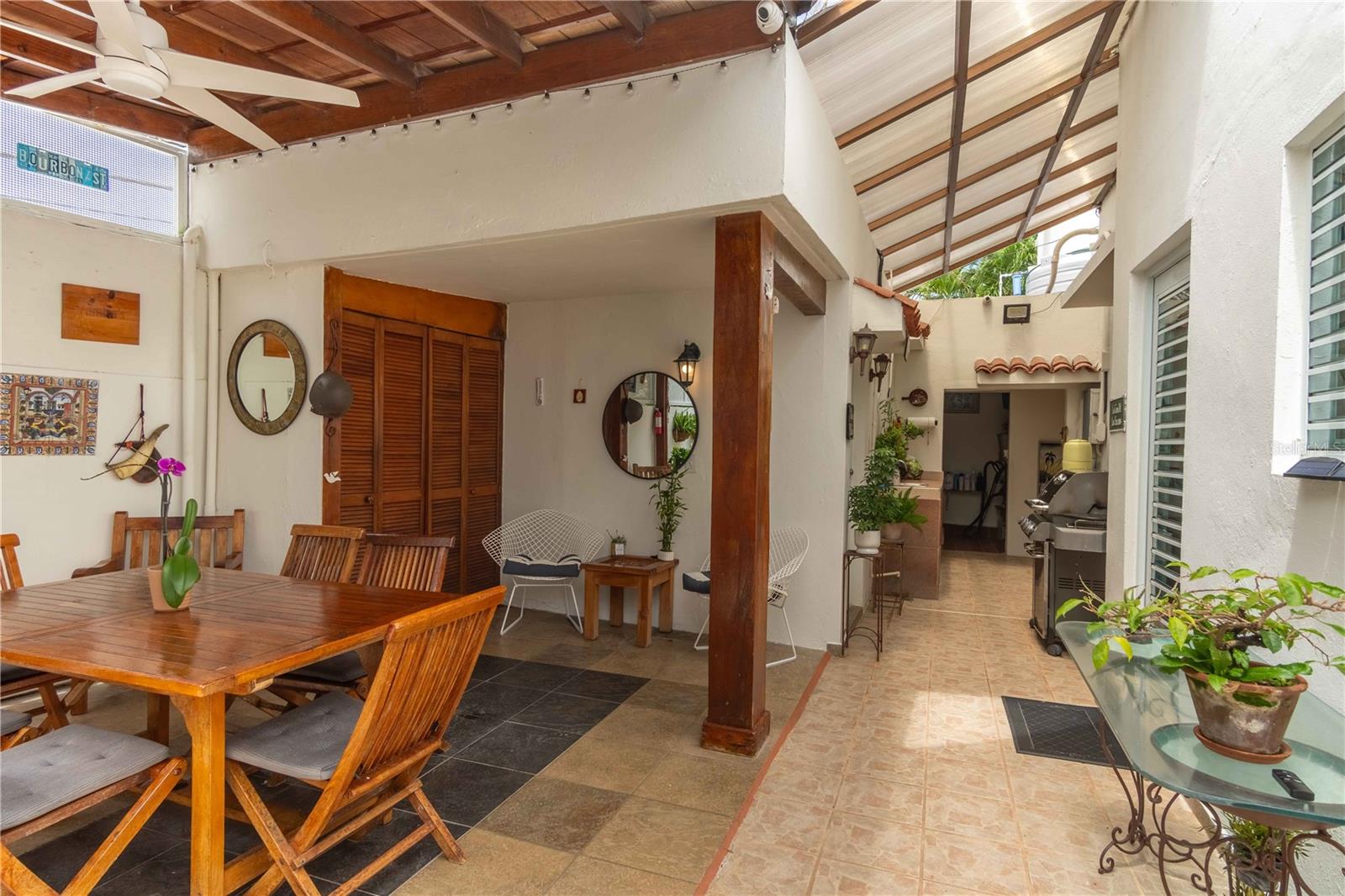 Preço reduzido! Jóia mediterrânea de 4 quartos e 3 banheiros com potencial de renda no condomínio fechado de San Juan Esta casa de estilo mediterrâneo lindamente preservada, localizada em um condomínio fechado no Park Boulevard, em San Juan, oferece uma oportunidade única com 4 quartos e 3 banheiros. A casa principal inclui 3 quartos espaçosos e 2 banheiros, enquanto um quarto individual com banheiro privativo oferece maior privacidade - perfeito para hóspedes ou para aluguel para renda adicional. Construída em 1947, esta residência térrea ocupa 1.904 pés quadrados, combinando charme histórico com confortos modernos. Azulejos originais em estilo mosaico e tetos altos com arcos elegantes contribuem para o seu apelo atemporal. As principais áreas de estar dispõem de uma cozinha bem equipada, uma acolhedora sala de estar e uma elegante sala de jantar. Desfrute do seu café da manhã na acolhedora copa ou relaxe na varanda, acessível pelas portas francesas da sala, que banham o espaço de luz natural. A área externa é um oásis privado, completo com um terraço com belos trabalhos em madeira, uma piscina infantil e uma área de estar serena - ideal para entreter ou relaxar. O bairro dos sogros na parte de trás da casa oferece privacidade e comodidade adicionais com seu próprio quarto e banheiro completo. As características adicionais incluem uma lavandaria e uma garagem com espaço para dois a três carros. Situada a apenas uma rua ao sul de Ocean Park Beach, esta casa oferece fácil acesso ao vibrante estilo de vida praiano. Com a recente redução de preço, esta é uma rara oportunidade de possuir um pedaço da rica história de San Juan enquanto desfruta de comodidades modernas e potencial de renda.