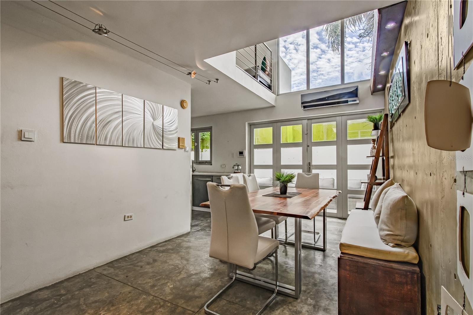 Bem -vindo aos ventos de Doncella! Venha desfrutar de uma comunidade de 4 moradias fechadas no coração de Punta Las Marias. Sua localização apresenta uma vida na cidade, enquanto fica a uma curta caminhada da praia. Uma vez lá dentro, você é recebido por uma grande sala de jantar com tetos de altura dupla, a cozinha e um pátio do pátio. O segundo andar possui uma sala familiar (conversível para um terceiro quarto), um Den/Office adjacente para vários usos e um banheiro completo. O terceiro andar tem dois quartos com outro banheiro e, finalmente, o último andar tem um terraço na cobertura com bar molhado, meio banheiro e vista parcial do oceano; Perfeito para aproveitar o seu café da manhã ou refrescos ao pôr do sol! Esta casa apresenta um design moderno com pisos concertos polidos e paredes de concreto expostas. Há uma garagem para carros e um estacionamento designado, ambos dentro dos portões. Totalmente com ar condicionado, equipado (incluindo 13 painéis solares e uma cisterna de água) e mobiliada, está realmente pronto para se mudar. Em um local ideal, perto do aeroporto, as melhores escolas, lojas, supermercados, mercados gourmet, restaurantes e todos os recursos de entretenimento de San Juan. Venha em turnê pela sua próxima morada na praia/cidade, apenas por compromissos!