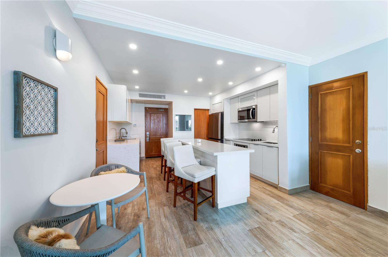 Residência à beira -mar nas vilas da Lagoa Condado com vistas fascinantes da água. Essas três unidades foram convertidas com bom gosto para criar o lar final, com a rara opção de ser usado como uma propriedade geradora de renda para aluguel de longo ou curto prazo. O layout exclusivo de 2 camas e 3 banheiros com 2 cozinhas e uma área de lavanderia dedicada oferece aprox. 1.623 SQ Interior. Ft. e aprox. 509 sq. Ft. do espaço do pátio. A sala de estar encharcada de sol serve como um espaço flexível que pode se tornar um terceiro quarto, acrescentando ainda mais versatilidade para você adicionar seu toque pessoal. Oferecendo as principais comodidades, os moradores do prédio desfrutam de acesso a um atendente de 24 horas de lobby, estacionamento com manobrista, piscina e um gerador de potência completa. Delicie-se com as opções de restaurantes e entretenimento de classe mundial no Paseo Caribe e no Hotel Caribe Hilton, a alguns minutos de Old San Juan e Isla Verde. Aninhado em uma comunidade vibrante que combina perfeitamente locais de compras de luxo, restaurantes, praias e um passeio cênico à beira -mar com vista para o histórico Fort San Geronimo, a Lagoa Condado e o Oceano Atlântico.