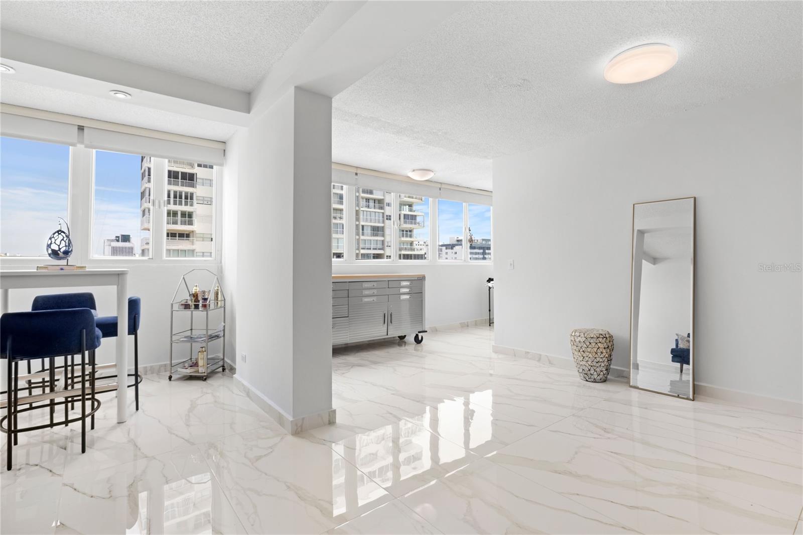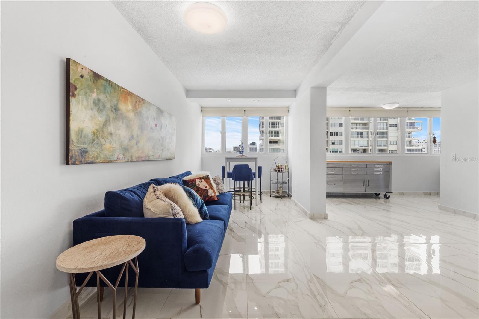 Apartamento da moda City View em um prédio à beira -mar à venda. Condado del Mar, 1477 Ave. Ashford, San Juan. Destaques: Construção à beira -mar com vistas deslumbrantes da cidade, 2 quartos, 2 banheiros, áreas de estar e jantar espaçosas, sala de estar acolhedora, cozinha totalmente equipada: fogão, geladeira, lavadora, secadora e microondas e uma vaga de estacionamento coberto. Comodidades: piscina de tamanho olímpico, quadra de tênis e meia quadra de basquete, área de churrasco, lobby e biblioteca, mesa de bilhar, sala de jogos e academia equipada com A/C. Loja de conveniência no local. Recursos: Novo piso por toda parte, janelas de segurança e porta. Cada quarto possui um pequeno armário e banheiro, gerador de energia para áreas comuns e acesso à cisterna e do elevador. Não perca esta chance de viver com estilo e conforto em Condado del Mar!