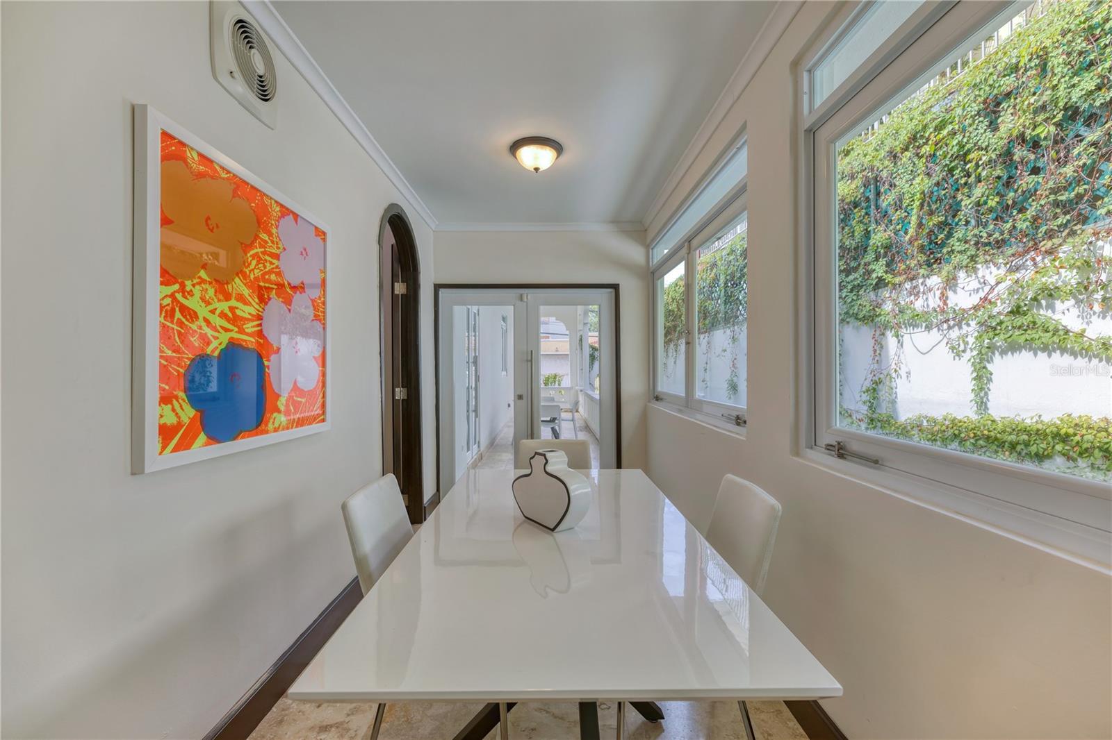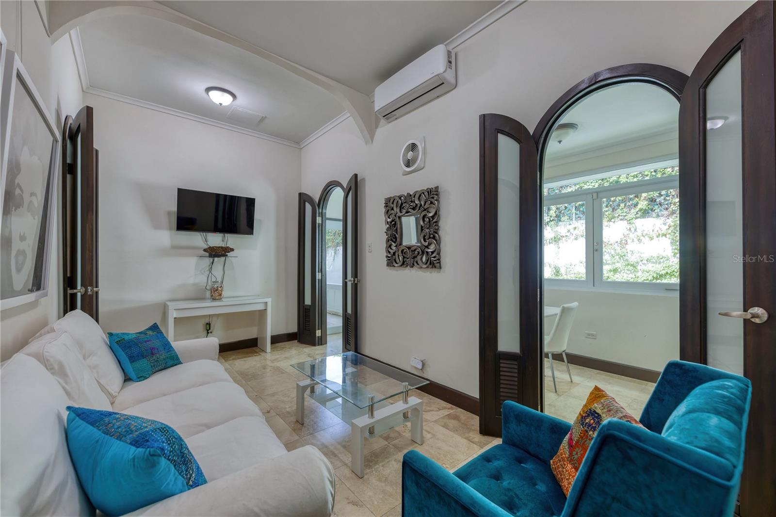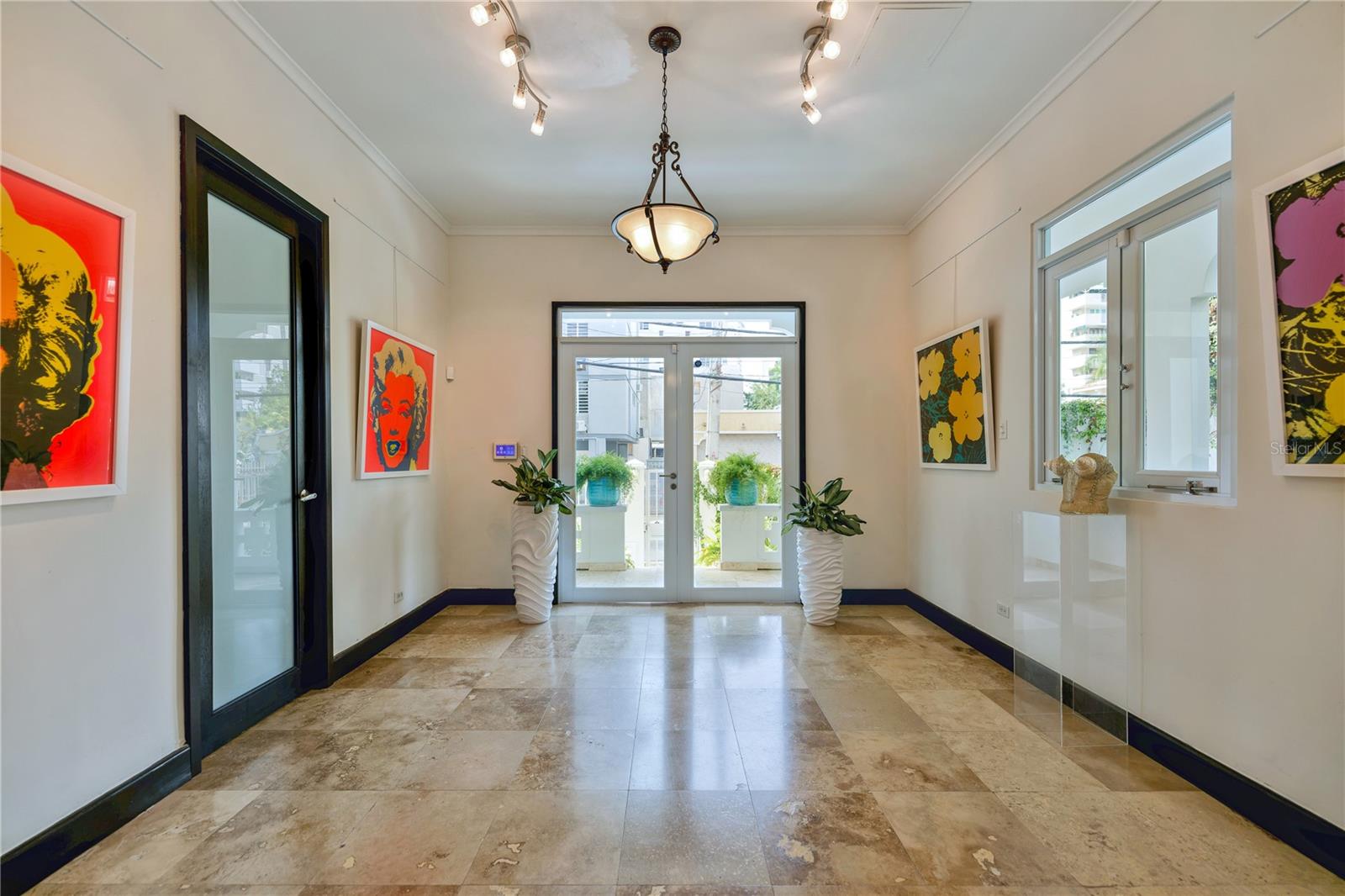 Esta casa meticulosamente renovada é o sonho de um artista. Sentado em um aprox. 450 sq. M. LOT, um achado raro e cobiçado na cidade. Uma vez o lar de uma poetisa e pioneira altamente influente dos direitos das mulheres em Porto Rico, a residência é considerada uma jóia histórica com valor cultural único. A REVACIONAL COLONIAL ESPANHAIONAL DO REVACIONAL DE 1940 ASSIGN ACTRESA DE ANTES DE 3.000 SQ. Ft. Isso pode servir como um espaço residencial ou comercial. Quatro quartos e dois banheiros são exibidos ao longo da primeira história, além de pisos de mármore requintados, portas arqueadas, fonte ao ar livre, Lanai e uma abundância de luz natural. No segundo andar, uma suíte de convidado particular com cama, banho e cozinha adicional está disponível através de uma entrada separada, bem como um terraço considerável na cobertura com um mirante e jacuzzi com vista para o cobiçado horizonte da cidade de Condado Beach. Uma lavanderia e uma garagem de 1 carro, mais uma garagem de três veículos, são fornecidos para maior conforto e conveniência, além de novos aparelhos, sistema de segurança, gerador parcial, janelas e portas com classificação de tempestades. Desejavelmente, localizado no coração de Condado Beach. Nas proximidades de restaurantes gourmet, opções de entretenimento, locais de compras e duas escolas particulares. Cobe é uma comunidade altamente estimada na próspera capital da ilha. Nas proximidades de Isla Verde, Old San Juan e o distrito de Miramar Arts. A residência também está disponível para arrendamento a US $ 11.000 por mês.
