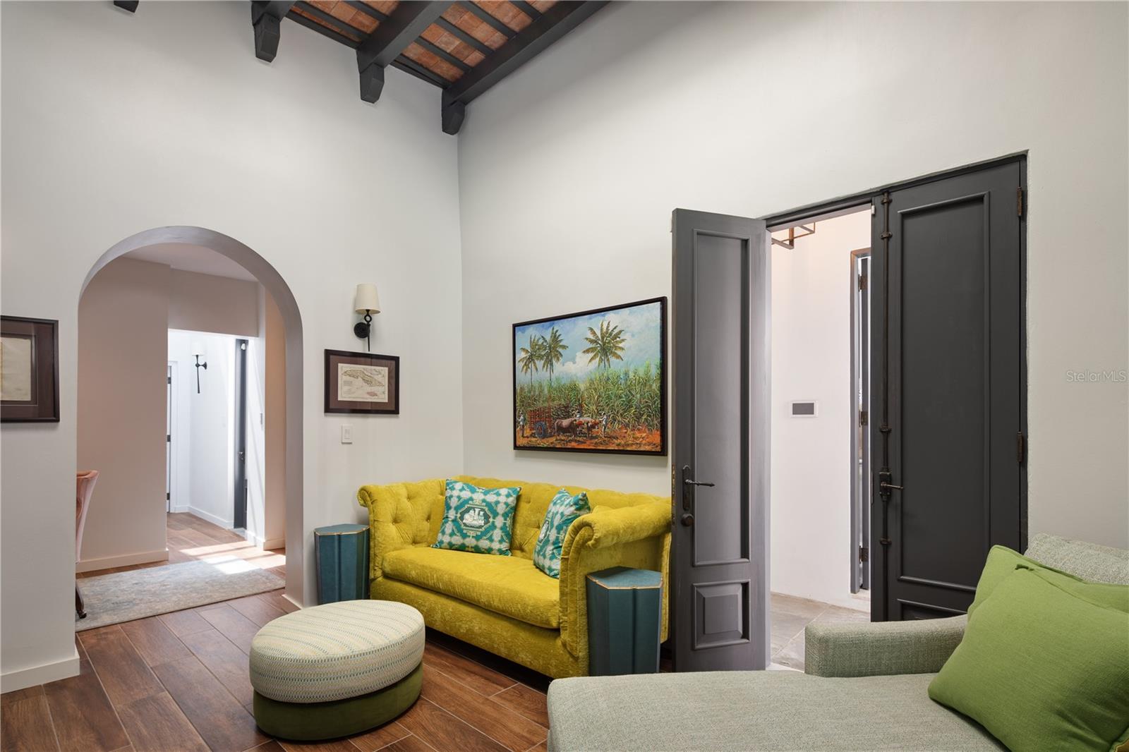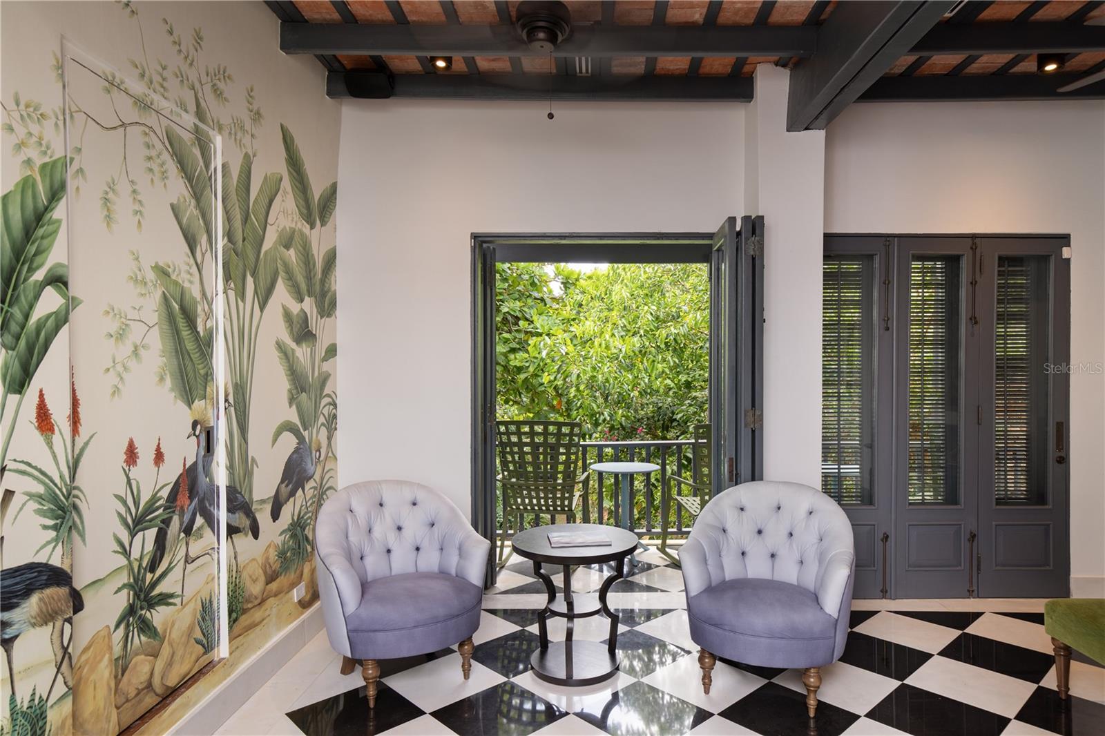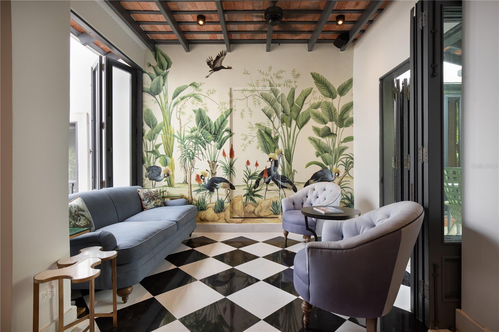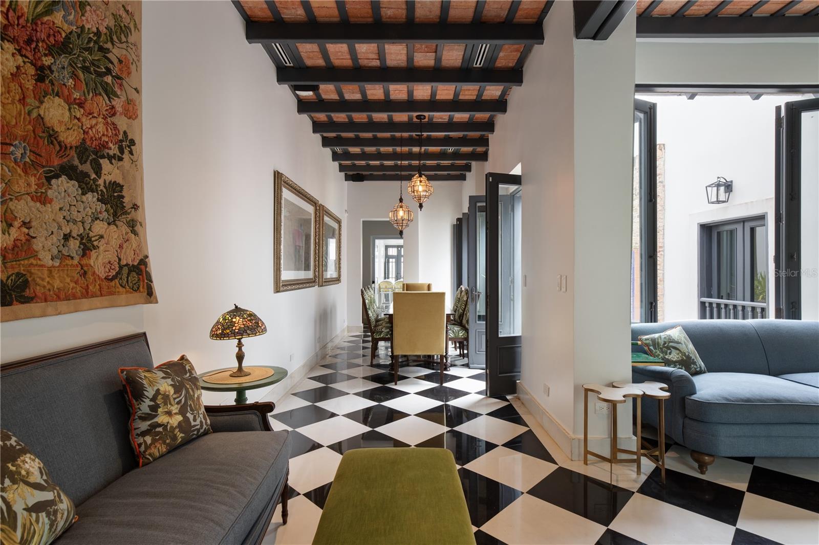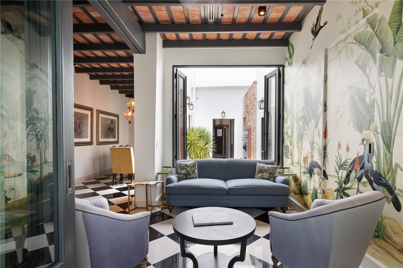 Entre em um mundo de sofisticação incomparável e elegância histórica no 56 Callejón del Hospital, uma residência magistralmente redesenhada pelo estimado designer de interiores Fernando Rodriguez. Esta casa extraordinária, situada no coração da antiga San Juan e construída em meados do século XIX, combina perfeitamente a arquitetura colonial com o luxo contemporâneo. Abrangendo 4.517 pés quadrados em dois níveis, a residência possui três suítes, com dois quartos localizados no nível inferior para maior privacidade. Um lado da casa é dedicado à vida formal, ao jantar e a uma cozinha moderna de inspiração espanhola, perfeita para entretenimento. Do outro lado, você encontrará uma aconchegante sala de família, um recanto de escritório e a deslumbrante suíte principal, que possui um corredor de armários e um luxuoso banheiro adornado com lindo mármore e ducha a vapor. O interior apresenta requintados pisos de mármore xadrez preto e branco importados da Itália, mais de 50 portas e janelas de madeira e centenas de vigas de madeira recuperadas de ausub locais - todos elementos icônicos da arquitetura da Velha San Juan. A propriedade inclui dois pátios internos convidativos – um deles com vista para os icônicos jardins e fonte de água da Casa Blanca, um palácio construído em 1521 e lar de três gerações de descendentes de Juan Ponce de León. Este ambiente sereno é perfeito para um relaxamento tranquilo rodeado pela rica história de Porto Rico. Localizada em uma das ruas mais históricas da parte antiga de San Juan, a Callejón del Hospital é uma charmosa via exclusiva para pedestres que já foi usada por enfermeiras para transportar soldados feridos da vizinha Fortaleza de San Felipe del Morro até o hospital. A área mantém seu charme com ruas estreitas e sinuosas de paralelepípedos, edifícios em tons pastéis, varandas ornamentadas e pesadas portas de madeira. Convenientemente a poucos passos de vários locais históricos, o 56 Callejón del Hospital oferece fácil acesso ao Forte de San Felipe del Morro, uma fortaleza do século XVI; o Cuartel de Ballajá, um quartel militar espanhol de 1854 que hoje abriga um centro cultural e a Escola de Artes Visuais; e o vizinho estacionamento subterrâneo Ballajá. Explore a Catedral de San Juan, a primeira catedral católica do Hemisfério Ocidental, e o Hotel El Convento, originalmente inaugurado em 1651 como um convento carmelita e transformado em hotel em 1962. Desfrute de passeios tranquilos até restaurantes e boutiques finos, que lembram o charme encontrado em qualquer cidade histórica europeia. 56 Callejón del Hospital é mais do que apenas uma residência; representa uma oportunidade exclusiva de possuir um pedaço da ilustre história da Velha San Juan, onde cada detalhe reflete os mais altos padrões de elegância e sofisticação.