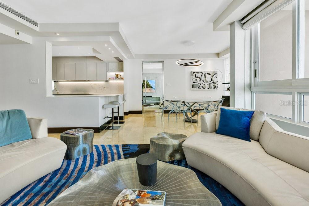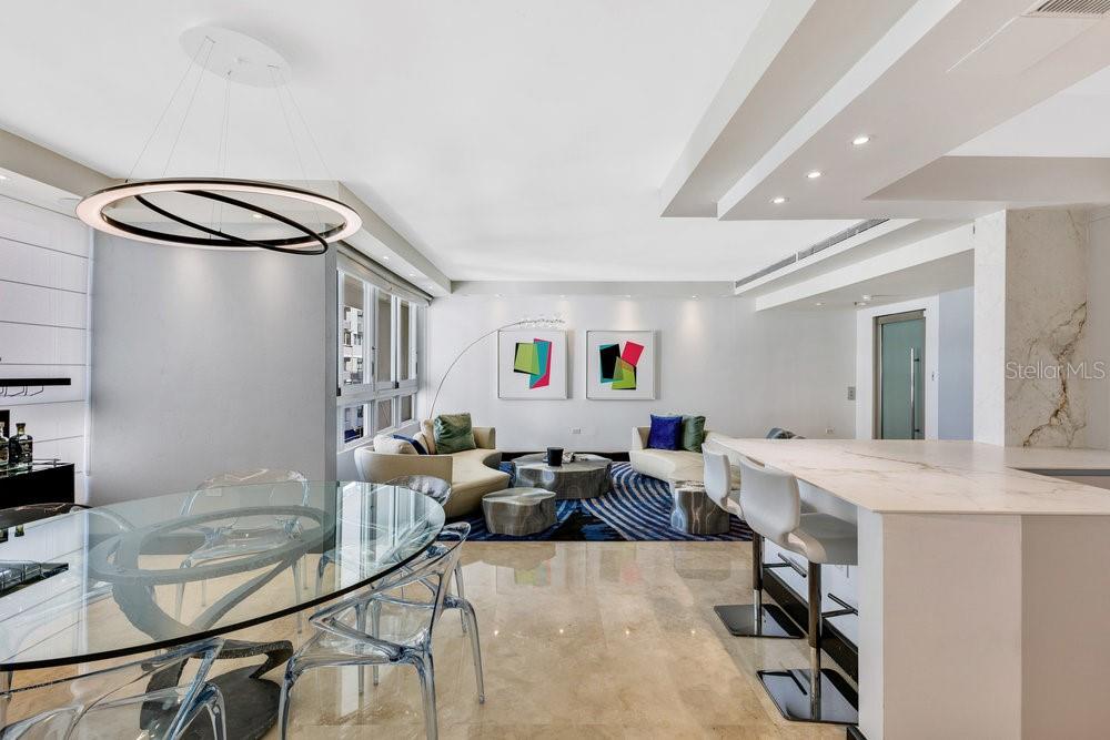 Este apartamento de luxo recentemente remodelado oferece uma espaçosa área interior com 3.048 pés quadrados, com 3 quartos (facilmente convertíveis em 4), 2 casas de banho completas e 1 lavabo para hóspedes, além de 6 vagas de estacionamento. Os gadgets e funcionalidades inteligentes parecem quase saídos de um filme de James Bond, totalmente equipados com tecnologia que permite controlar a iluminação, a temperatura, a segurança, as persianas e o sistema de som Sonos, tudo com o toque de um botão. Privacidade e localização Esta residência oferece o que há de melhor na cidade, a apenas um quarteirão do parque, La Hacienda, Freshmart, restaurantes diversificados e vida noturna na avenida Ashford, praia, farmácias e tudo que você precisa. Privacidade incomparável – o prédio possui apenas 18 residências com dois apartamentos por andar e segurança 24 horas por dia, 7 dias por semana. Os elevadores abrem diretamente para a sua sala, com entrada separada para funcionários de serviço. O apartamento inclui sistema de segurança com câmeras, código de entrada e campainha. Design moderno e luxuoso Todo o apartamento foi meticulosamente decorado pela designer francesa Roche Bobois. E divirta-se em sua cozinha de última geração projetada por Santos, com elegantes bancadas Neolith, eletrodomésticos SubZero e Wolf e uma máquina de fazer gelo da Hoshizaki. Além disso, uma impressionante adega com capacidade para até 250 garrafas com controle de temperatura. A suíte principal foi atualizada com um closet da California Closets e complementada por uma impressionante unidade de parede da Roche Bobois. Segurança e comodidades -As janelas à prova de furacões e persianas do apartamento garantem tranquilidade -O edifício possui gerador de energia total e cisterna de água -Os residentes também podem desfrutar de uma academia, lobby remodelado, garagem, equipe de serviço completo Recursos adicionais -Estacionamento Privado: um benefício único são as raras 6 vagas de estacionamento que a unidade inclui (3 cobertas e 3 descobertas), além de um carregador EV privado -Armazenamento: Uma unidade de armazenamento dedicada para sua conveniência -Vistas: Desfrute de vistas parciais do oceano e da cidade de Condado Visite o imóvel hoje mesmo!