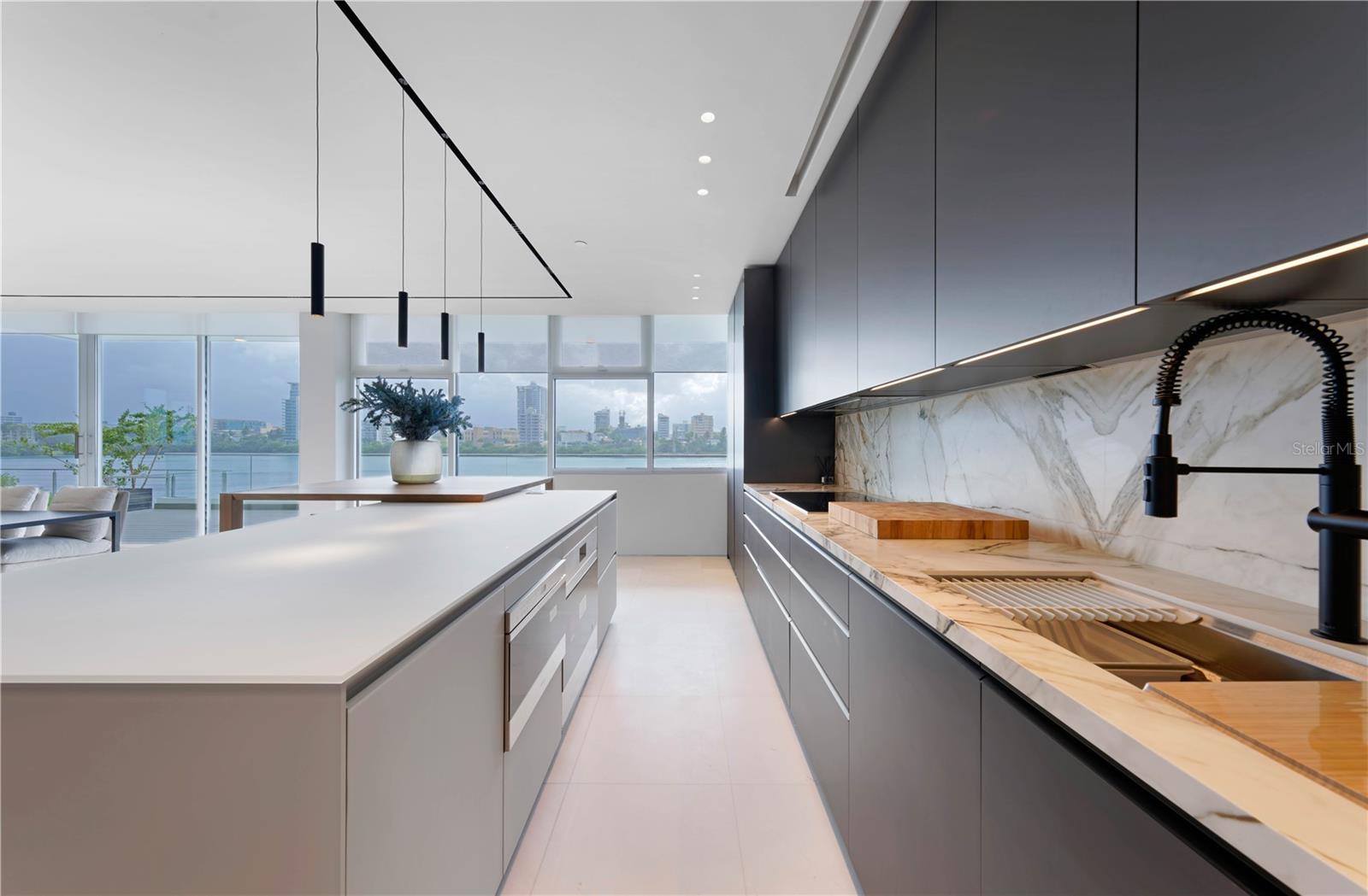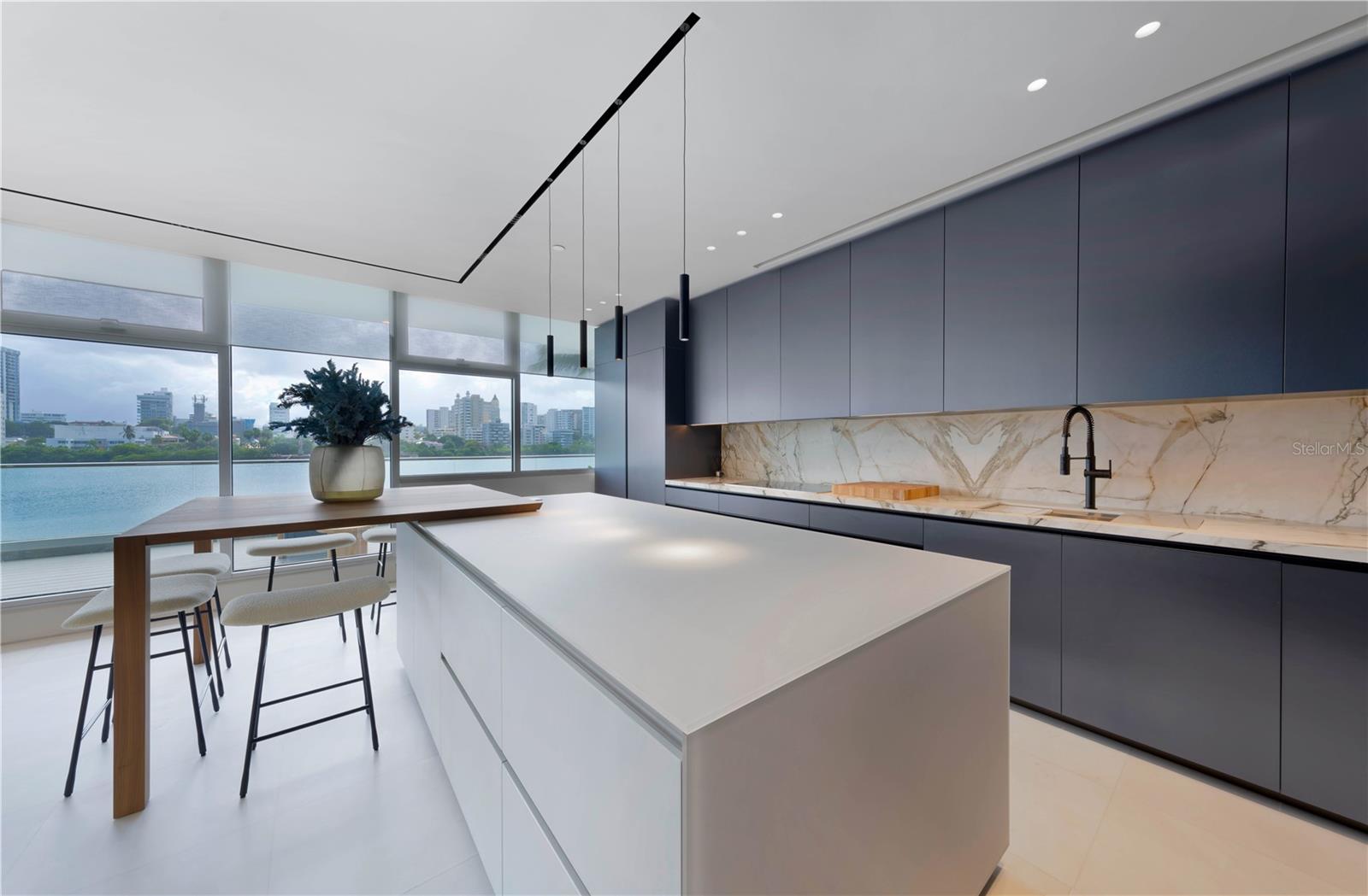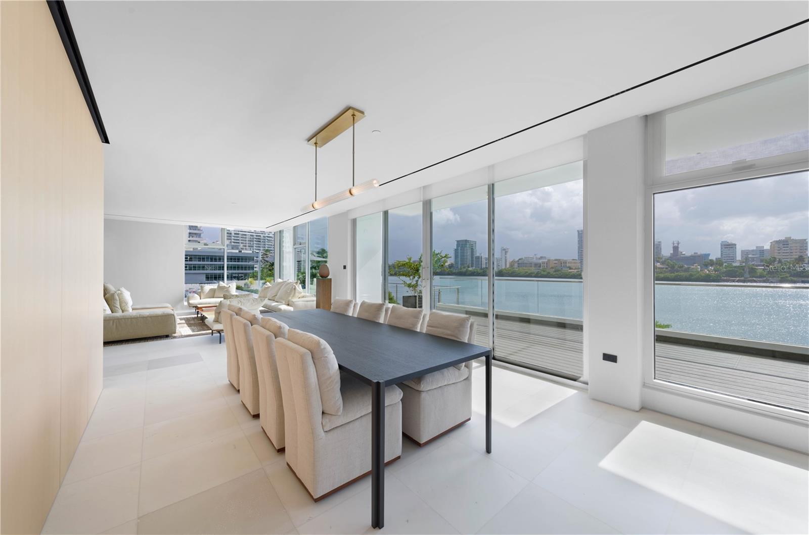 Bem-vindo à sua nova casa requintada em um dos mais novos empreendimentos de CoBe, também conhecido como Praia Condado. Construída em 2020 e reinventada em 2024, nenhuma despesa foi poupada nesta impressionante residência com vista para a lagoa e o mar. Abrangendo todo o andar, a casa serve como um retiro moderno, apresentando móveis cuidadosamente selecionados e detalhes personalizados por toda parte. Totalmente equipado com recursos de automação e tecnologia de última geração, como iluminação e persianas Lutron, além de dutos de ar condicionado ocultos no teto para um conforto estético e silencioso. A ampla área de estar se conecta perfeitamente à cozinha Poliform impecavelmente trabalhada, que oferece eletrodomésticos de última geração e uma espaçosa despensa dedicada com depósito de vinho. Portas perfeitas e personalizadas com painéis louros fornecem acesso discreto a todos os três quartos de banho, incluindo uma suíte primária requintada com um banheiro lindamente decorado e armários duplos personalizados que oferecem muito espaço de armazenamento. Um espaço versátil e flexível que pode ser convertido em uma quarta suíte aumenta o apelo cativante desta propriedade notável. Saia para desfrutar dos amplos terraços ao ar livre localizados em ambos os lados da residência, um dos quais com vista para a serena Lagoa Condado, proporcionando o cenário perfeito para relaxamento e entretenimento. Evocando a sensação de estar a bordo de um luxuoso iate, observe os peixes-boi brincando na lagoa com o deslumbrante horizonte de Miramar como pano de fundo. As janelas do chão ao teto inundam o apartamento com luz natural. A casa combina facilmente estilo, conforto e vistas deslumbrantes. O Peninsula oferece comodidades excepcionais, oferecendo piscina, academia, lounge para residentes, gerador de backup completo e atendimento 24 horas. Posicionada no coração de um bairro vibrante repleto de restaurantes requintados, hotéis de classe mundial e entretenimento animado, esta propriedade oferece um estilo de vida metropolitano incomparável no Caribe.