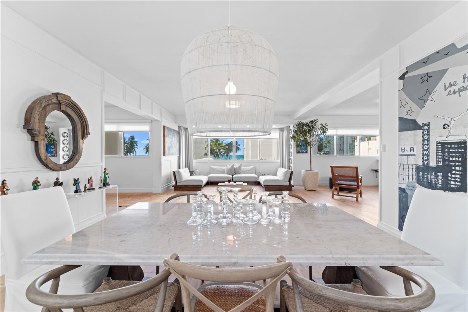Aninhado a apenas dois minutos a pé de uma praia intocada, esta residência no piso inteiro incorpora luxo silencioso, oferecendo uma mistura incomparável de espaço, refinamento e exclusividade. Abrangendo impressionantes 4.500 pés quadrados de vida inspirada no bem-estar, a casa se integra perfeitamente ao seu ambiente natural. Como um dos maiores apartamentos do Condado - onde residências espaçosas são uma raridade -, também se destaca com quatro vagas de estacionamento dedicadas, incluindo duas protegidas em uma garagem particular, tornando -o uma descoberta excepcional para os aficionados de carros que priorizam a conveniência e a exclusividade. Entre no seu elevador privado em um espaço cuidadosamente com curadoria, onde os interiores inspirados em Nova York encontram a graça sem esforço do Caribe. Os tetos de quase três metros aumentam o sentido da grandeza, enquanto os móveis de hardware de restauração de ponta e selecionam peças importadas das propriedades de Nova York elevam a estética. Uma harmonia da elegância européia contemporânea e dos elementos focados no oceano cria uma fusão cativante do design moderno e do charme da nova era. Projetado para conforto e função, a ampla área de estar flui perfeitamente para uma varanda personalizada de visão lateral do oceano, onde o ritmo das ondas serve como cenário perfeito. Uma cozinha gourmet italiana de classe chef, equipada com aparelhos de primeira linha, foi projetada para arte culinária e entretenimento sem esforço. Adjacente à cozinha, um bar elegante e áreas de estar íntimas promovem conversas, preparando o cenário para reuniões inesquecíveis. A suíte master evoca o conforto de um hotel de cinco estrelas, com um banho de banho em forma de spa. Dois quartos adicionais, cada um com seu próprio banheiro privativo, garantem privacidade e conforto. Um lavabo e banho de hóspedes completos aumentam ainda mais a conveniência. Esta residência de 3 quartos também é conversível a um layout de 5 quartos, oferecendo flexibilidade para vários estilos de vida. As comodidades adicionais incluem uma academia pessoal, um bar completo e uma sala de entretenimento com uma mesa de bilhar de Brunswick - oferecendo espaços refinados para relaxar e socializar. Uma parede de despensa dedicada, uma lavanderia de grandes dimensões com sua própria pia e armário, e dois vestíbulos interiores aumentam a função e o fluxo. Situado no nexo de Condado e Ocean Park, a residência é cercada por refeições, compras, entretenimento, escolas de primeira linha e estúdios de bem-estar. Condado Beach (Cobe) é um distrito vibrante e acessível, conhecido por seu estilo de vida de luxo, enquanto o Ocean Park oferece uma atmosfera de praia mais relaxada. Oferecendo 4.500 pés quadrados de vida refinada, quatro vagas de estacionamento particulares e comodidades exclusivas, como uma academia pessoal e elevador privado, esta casa é um achado raro em um dos bairros mais desejáveis de San Juan. Experimente privacidade, conveniência e luxo sem esforço - todos a poucos passos da praia.