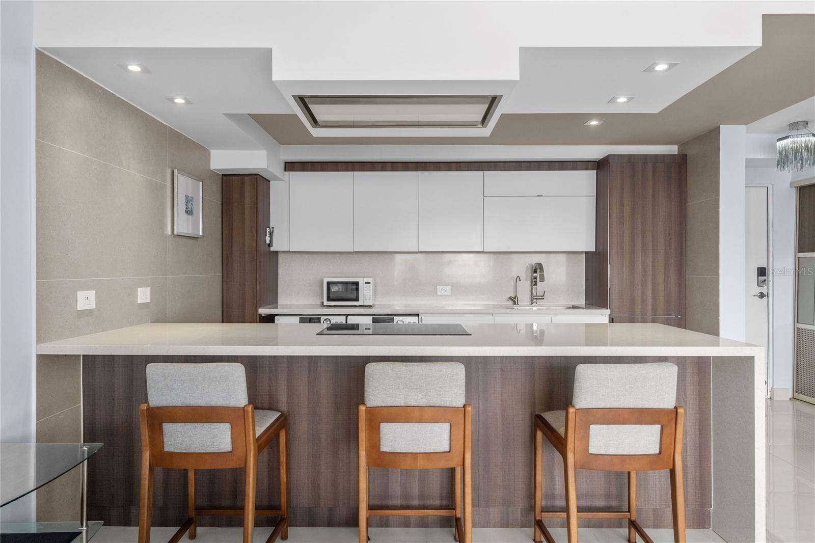Empoleirado no 7º andar de um edifício boutique íntimo, Sonsid, em Prime Condado, esta unidade meticulosamente renovada de 1.300 pés quadrados possui 2 quartos, 2 banheiros completos e vistas panorâmicas de sua varanda encantadora. A residência apresenta acabamentos premium por toda parte, luz natural abundante com ventilação cruzada refrescante e uma cozinha gourmet mostrando aparelhos italianos e alemães. Os confortos modernos adicionais incluem um sistema de filtração de água de osmose reversa, proteção elétrica integrada e ar condicionado central de ponta. Idealmente localizado no centro de Condado, este condomínio permite aluguel de curto prazo, possui um gerador de energia completo e uma cisterna de água, tornando -a uma casa maravilhosa e/ou uma ótima propriedade de investimento. O condomínio fica em um quarteirão de praia e perto de restaurantes aclamados, do outro lado da rua, de principais supermercados (La Hacienda e Freshmart), e cercados por hotéis de classe mundial como La Concha, Marriott, Hilton e Vanderbilt-oferecendo um estilo de vida confortável e fácil. Sonsid está situado em Calle Cervantes, uma rua de mão dupla tranquila que termina em um beco sem saída com acesso direto à praia. Além disso, a unidade vem com um espaço de estacionamento coberto.