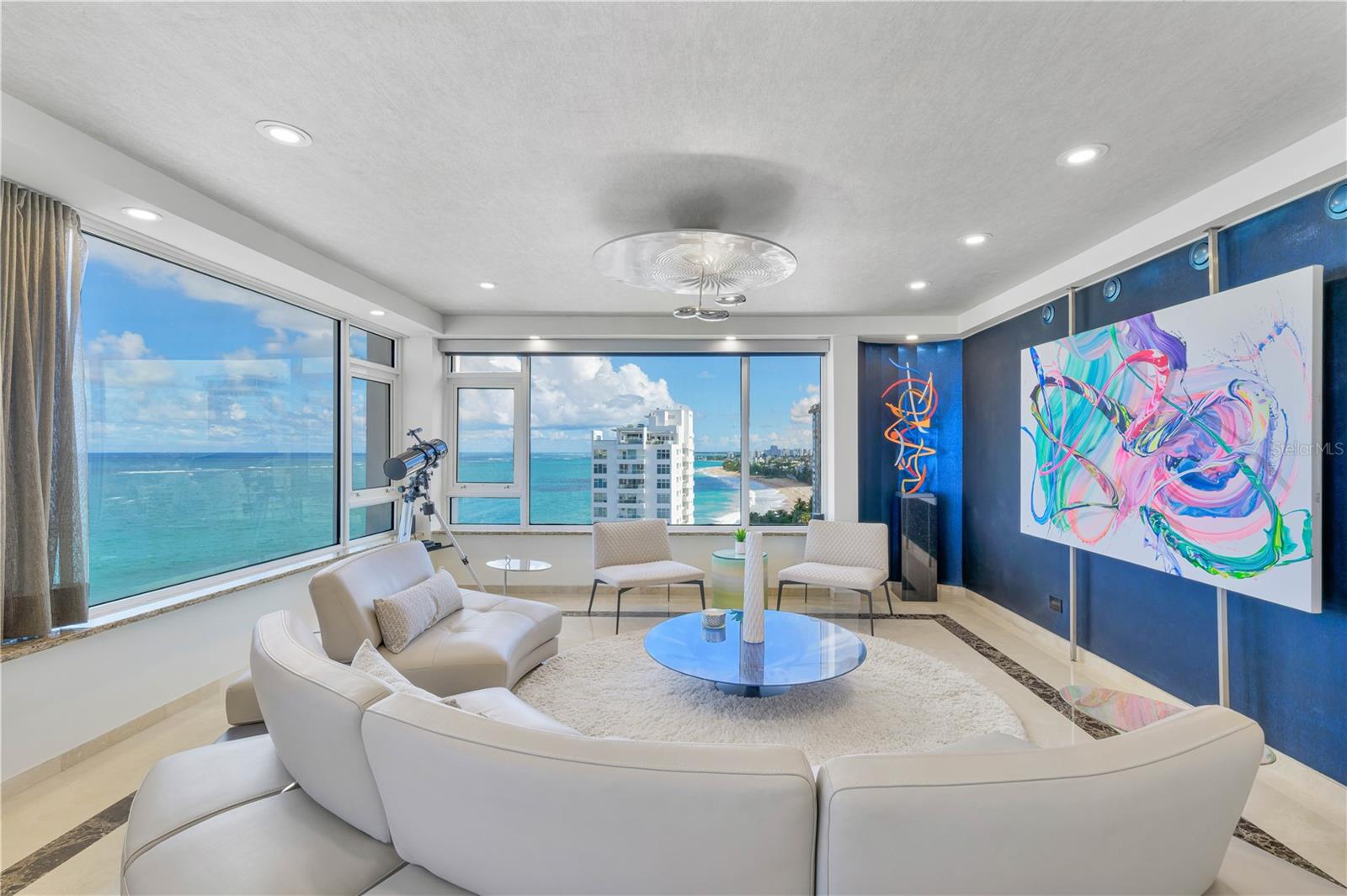 Esta cobertura impecável, pronta para uso, localizada no coração da Praia Condado, oferece o auge da vida luxuosa à beira-mar em San Juan. Aproximadamente 2.700 m². Em Ft., a residência possui piso de mármore, bem como uma área de estar/jantar bem proporcionada e integrada com uma cozinha preparada para chef. A cozinha possui eletrodomésticos de luxo de última geração, incluindo geladeira/refrigerador de vinho SubZero, lava-louças Cove, fogão a gás Wolf e forno duplo Wolf, realçados por uma bancada exclusiva em lápis-lazúli do Chile. O layout apresenta um quarto principal com um enorme banheiro principal, um quarto de hóspedes, um escritório separado e um banheiro adicional, todos com acessórios WaterWorks premium. Meticulosamente decorada com móveis de alta qualidade, a casa inclui um sistema de som Sonos completo, iluminação LED Lutron Bluetooth, uma TV de 75 polegadas, duas unidades centrais de AC, um inversor AC e uma fechadura de entrada digital. A residência dispõe ainda de garagem escriturada para 2 carros com estantes e é atendida por dois elevadores. A propriedade está localizada no Condomínio Caribe, que fica próximo a restaurantes sofisticados, hotéis de classe mundial, entretenimento animado e escolas, como Saint John's e Robinson. A Praia Condado, também conhecida como CoBe, é o epicentro metropolitano da ilha. Perto de Isla Verde, Old San Juan e do Distrito das Artes de Miramar.