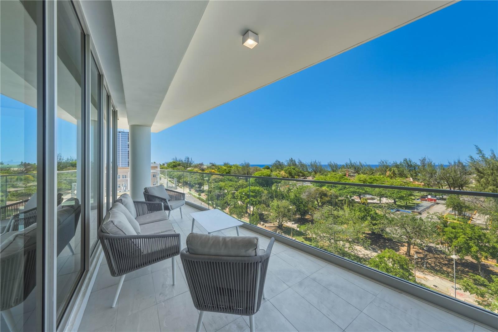 Experimente o luxo urbano refinado no corredor mais dinâmico de San Juan, no Le Parc Condado. Concluída em 2025, esta rara residência no oitavo andar se estende por 2.740 pés quadrados e apresenta um design de conceito aberto e cheio de luz, com vidro do chão ao teto e acabamentos suaves e modernos por toda parte. Um elegante hall de entrada leva perfeitamente às áreas de estar e jantar, ideal tanto para a vida cotidiana quanto para entretenimento. A cozinha inspirada no chef apresenta acabamentos premium e uma despensa, enquanto um amplo terraço coberto estende o espaço ao ar livre, capturando a brisa refrescante do mar. As exposições voltadas para o noroeste enquadram vistas deslumbrantes do Oceano Atlântico e do horizonte histórico da Velha San Juan. O diferencial desta residência são seus acabamentos elevados e atualizações cuidadosas, incluindo iluminação embutida, persianas elétricas, um exaustor atualizado e uma estação de carregamento de veículos elétricos dedicada. Oferecidos totalmente mobiliados em estilo moderno e refinado, os interiores refletem um design coeso e atemporal. A casa possui três quartos espaçosos, cada um com banheiro privativo, incluindo uma generosa suíte principal com closet. Uma sala versátil, área de serviço dedicada, lavabo elegante, três vagas de estacionamento designadas e um depósito privativo completam a casa. Como residente do Le Parc, você desfrutará de comodidades de classe mundial em um ambiente boutique exclusivo. O edifício oferece serviços de segurança e concierge 24 horas, várias piscinas e jacuzzis e uma academia de ginástica de última geração completa com sauna seca e a vapor, mergulho frio e sala de massagem. Os entusiastas do ar livre irão apreciar a quadra de pickleball e o parque para cães. Recursos adicionais de estilo de vida incluem um centro de negócios profissional, sala de recreação infantil e um amplo terraço na cobertura com salões panorâmicos e adegas privativas. Perfeitamente situado entre o charme histórico da antiga San Juan e as conveniências modernas de Condado, Le Parc oferece um estilo de vida de elegância caribenha incomparável.