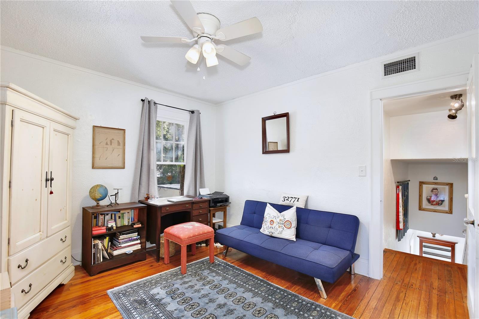 Bem-vindo à Park Avenue 2019! Esta casa histórica de inspiração espanhola/mediterrânea foi projetada e construída em 1923 pelo icônico arquiteto de Sanford, Elton J. Moughton. Localizada em um grande terreno (quase 0,25 acres) em uma das ruas clássicas do centro de Sanford e no Sanford Golf Cart District, esta casa única e especial é aquela que você estava esperando. Além da privacidade das paredes de alvenaria voltadas para a rua, há um lindo pátio. As portas francesas levam para a casa, onde você ficará encantado com as características originais lindamente restauradas - pisos de madeira, janelas originais, lareira decorativa de tijolos e a imponente escadaria. Na sala de jantar, a luz natural entra pelas grandes janelas. A grande cozinha aberta possui armários brancos elegantes, ladrilhos de cimento modernos, bancadas em granito e muito espaço de armazenamento! Uma lavanderia/varanda de barro e um banho de pó completam o andar de baixo. No andar de cima há 2 quartos, com um ENORME closet no quarto principal! O banheiro principal no andar de cima ainda tem os azulejos azuis e brancos originais da década de 1920 e uma janela para o jardim. O amplo e exuberante quintal está repleto de potencial, com muito espaço para adicionar garagem, piscina ou apenas jardim e paisagem aos seus desejos! Aproveite as noites no encantador pátio, acessado através de portas francesas fora da cozinha. As atualizações recentes do quintal incluem a instalação de uma maravilhosa sala com tela na Flórida, um enorme pátio pavimentado, uma longa entrada de cascalho acessada a partir do beco de trabalho, um novo galpão e uma adorável área de vasos para todas as suas necessidades de jardinagem! O caminho pavimentado do jardim leva à pousada, que inclui cozinha compacta e banheiro completo com box amplo. Este espaço cheio de potencial pode ser uma suíte para sogra, casa de hóspedes, cabana ou unidade de aluguel de longo/curto prazo. Caminhe, ande de bicicleta ou dirija seu carrinho de golfe até o vibrante centro de Sanford e o Lake Monroe Riverwalk. Não perca a chance de ser o próximo administrador desta casa histórica única e encantadora e possuir um pedaço da história de Sanford!