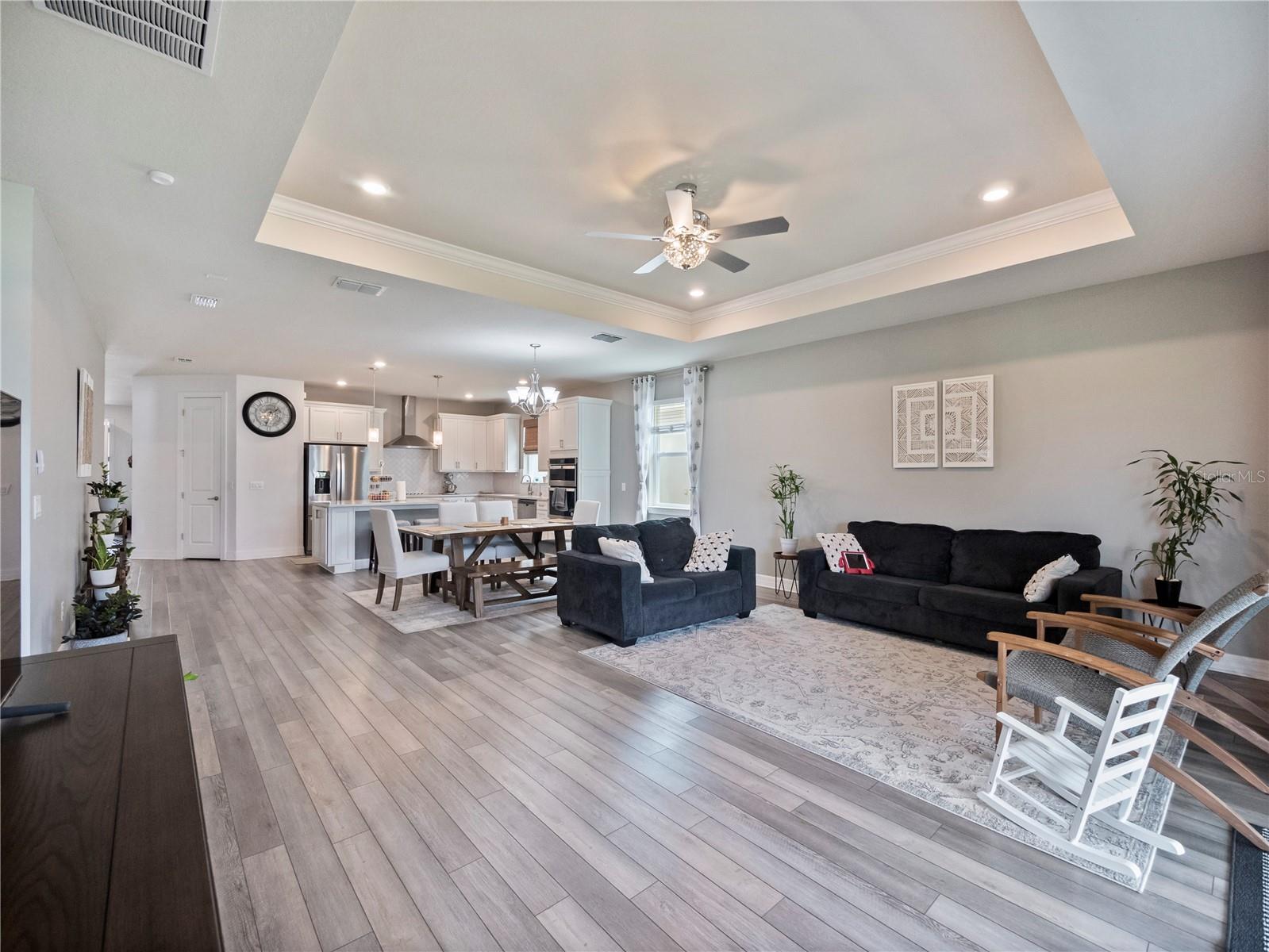 Este imaculado 3 quartos, 2 banheiros, com sala de covil/escritório/flexão com quase 2.164 pés quadrados de casa, possui elegância moderna. Lots of natural light, tons of upgrades few to list: Luxury vinyl flooring and plush carpet flooring, 2" faux wood blinds, tray ceilings, crown molding and much more! The beautiful gourmet kitchen features tall, soft close cabinets, quartz countertops, a large island with incredible storage, backsplash, all stainless steel Whirlpool and Ktichen-Aid appliances that include a stacked microwave and Forno e um cozinheiro separado. Downtown Orlando.