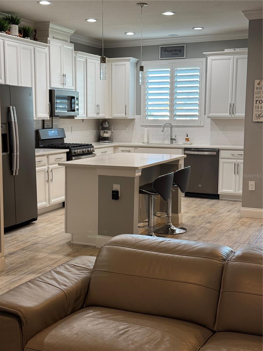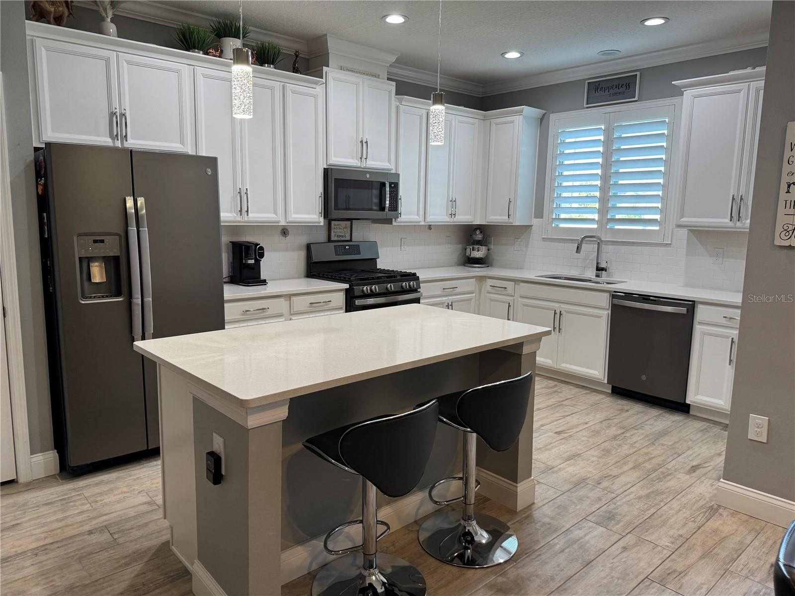 Melhoria de preços !!! Esta é uma oportunidade fantástica de possuir uma casa quase nova em um local privilegiado. Com atualizações excepcionais e comodidades de primeira linha, esta residência oferece uma planta baixa e brilhante que é elegante e funcional. A cozinha gourmet possui armários de 42 polegadas com iluminação sub-cabinete, moldagem por coroa, maçanetas de porta escovadas polidas, bancadas de quartzo e uma grande ilha perfeita para assentos. Todos os utensílios de cozinha são elegantes aço inoxidável escuro, incluindo uma geladeira lado a lado com dispensador de gelo e água. A cozinha é aprimorada ainda mais por uma despensa espaçosa, um microondas ventilado e um backsplash de ladrilhos. A casa é pintada com bom gosto com um esquema de cores cinza claro e detalhes brilhantes. Todo o andar de baixo está equipado com piso de cerâmica leve que imita a aparência da madeira. A expansiva suíte do proprietário é atualizada com pisos de vinil de luxo e um banheiro privativo do tipo spa, que inclui um chuveiro personalizado com azulejo de mármore, várias cabeças de chuveiro e vidro personalizado. Dois armários de tamanho generoso e pias duplas completam a suíte. No andar de cima, a lavanderia com ar-condicionado, com lavadora e secadora incluída, adiciona à funcionalidade da casa. Os recursos adicionais incluem iluminação moderna, aspersores de prevenção de incêndio embutidos e tetos de knockdown de volume. A garagem possui uma cobertura de piso epóxi e inclui um abridor de porta de garagem com dois controles remotos. As persianas de plantações são apresentadas em toda a casa, inclusive nas portas de vidro deslizantes. A casa também oferece uma varanda selecionada e uma entrada de automóveis e entrada de tijolos. Localizados dentro de uma comunidade fechada e segura, os moradores desfrutam de acesso a um parque de cães, piscina, playground e uma fonte cênica no lago comunitário. Com uma baixa taxa de HOA, recursos com eficiência energética, incluindo aparelhos de gás e um sistema de prevenção de cupins, esta casa oferece conforto e economia. A propriedade está situada perto de escolas de primeira classificação, o centro da cidade de Seminole, restaurantes, o aeroporto de Orlando/Sanford, a Interstate 4, o zoológico, a Sunrail, a Estação Amtrak e o centro de Sanford. Não perca esta oportunidade para garantir sua casa de sonho antes que o mercado mude. Agende sua exibição hoje!