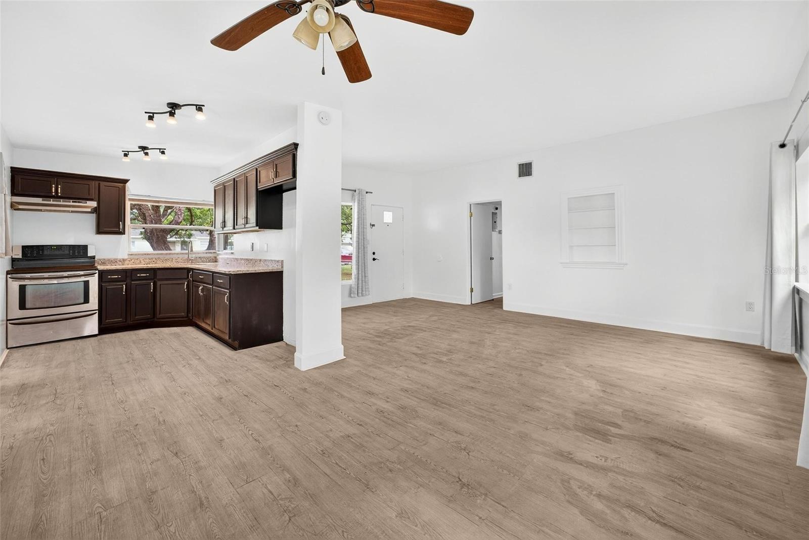Uma ou mais fotos foram virtualmente encenadas. A perfeição moderna de meados do século o aguarda em 613 Briarcliffe. Esta residência de 3 quartos e 1 banheiro impecavelmente atualizada e pronta para morar combina perfeitamente o charme clássico com o luxo contemporâneo. A cozinha gourmet é uma delícia para o chef, apresentando armários totalmente novos, elegantes bancadas de granito e novos eletrodomésticos de aço inoxidável. O banheiro reformado pelo designer oferece comodidades modernas e sofisticadas. Em toda a casa, um lindo piso de vinil luxuoso garante estilo e durabilidade. A planta baixa é iluminada e aberta, apresentando um fluxo contínuo da espaçosa sala de estar para a área de jantar e a deslumbrante cozinha de conceito aberto - perfeita para entretenimento. A tranquilidade é garantida com atualizações recentes significativas, incluindo janelas mais recentes, eletricidade atualizada em 2020, um novo telhado em 2021 e uma unidade AC mais recente, tornando esta casa um pacote verdadeiramente completo. Situada num lote generoso, a propriedade possui um quintal totalmente vedado, ideal para privacidade e diversão ao ar livre. O amplo pátio coberto proporciona um espaço maravilhoso para relaxar e jantar ao ar livre, com fácil acesso à sala de jantar interior e uma vista soberba para o quintal traseiro. Localização imbatível: 613 Briarcliffe está localizado a poucos minutos das lojas vibrantes e restaurantes aclamados do centro histórico de Sanford, oferecendo fácil acesso à I-4 e à 417 para um deslocamento conveniente e acesso rápido a todas as comodidades da área.